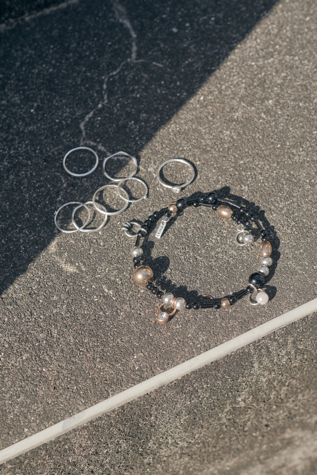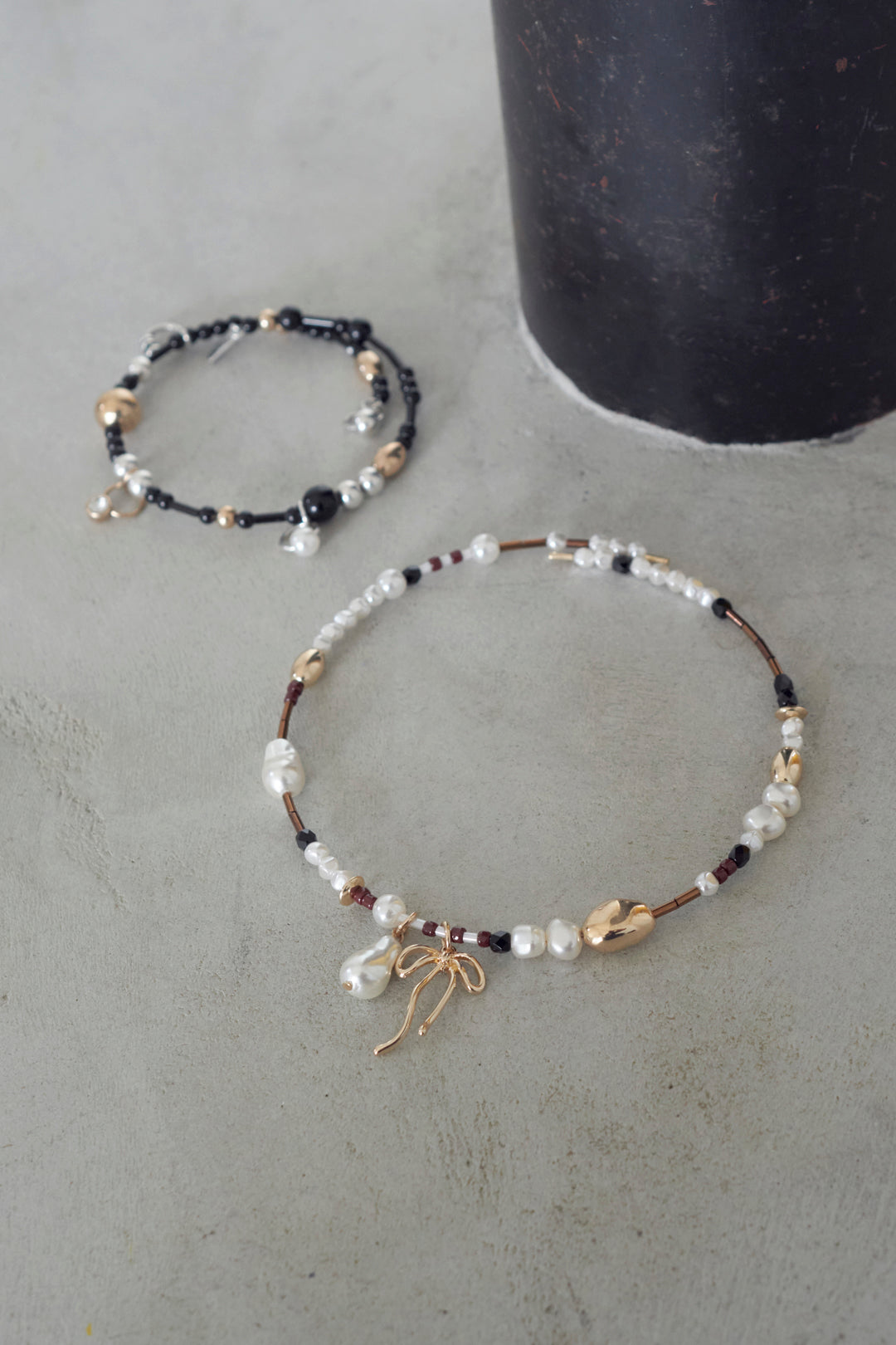 ブラウン×パールデザインとブラックビーズデザインの、モチーフが異なる2タイプをご用意いたしました。