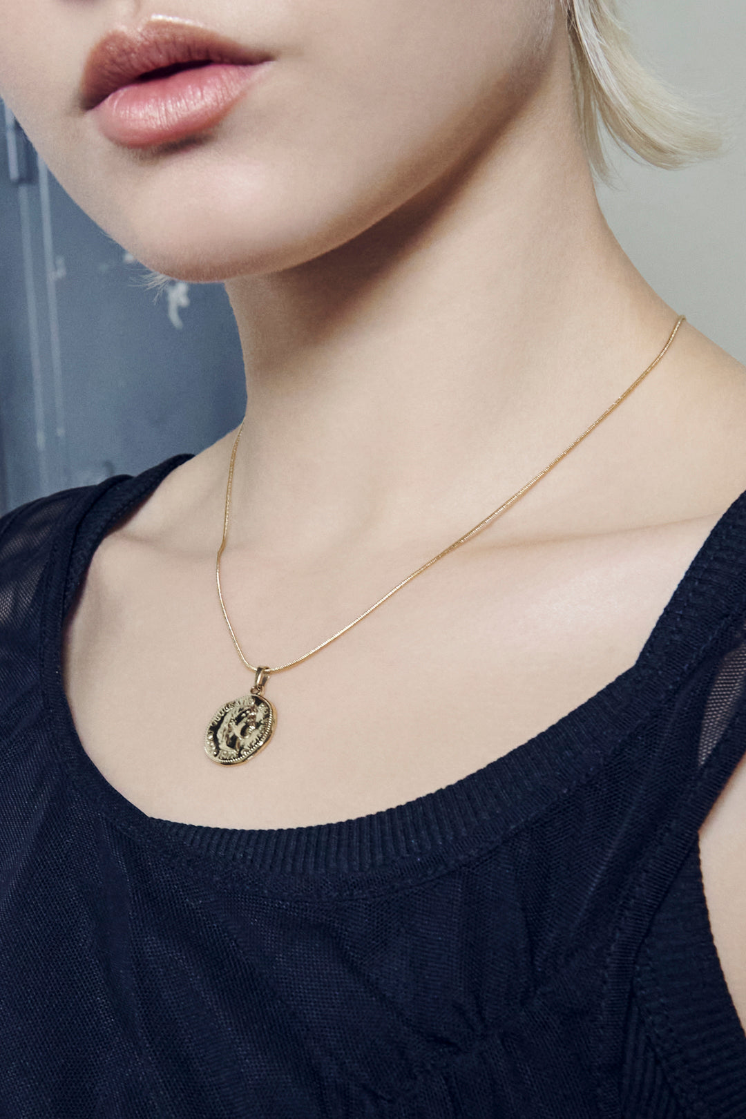 コイン × スネーク チェーン ステンレス ネックレス