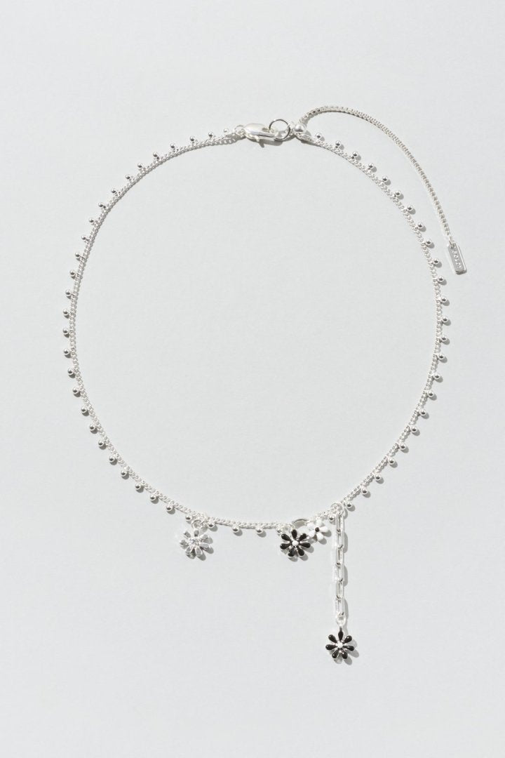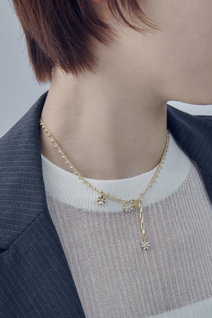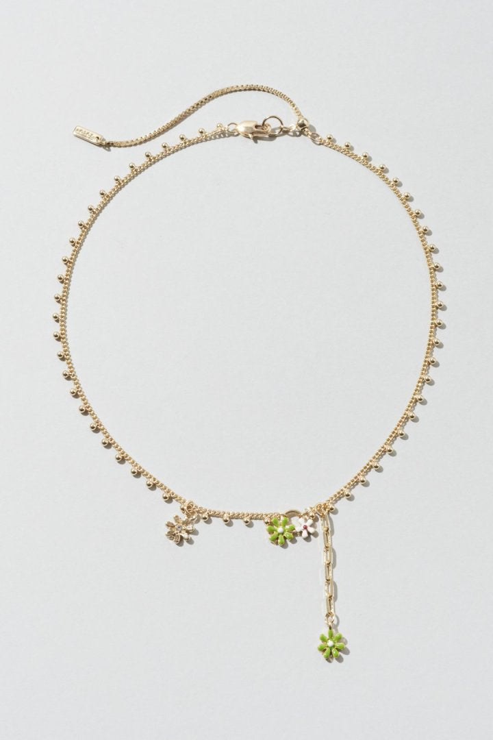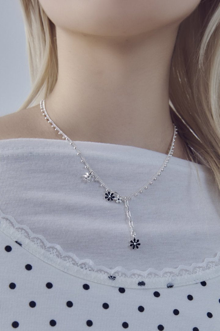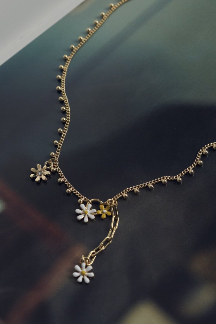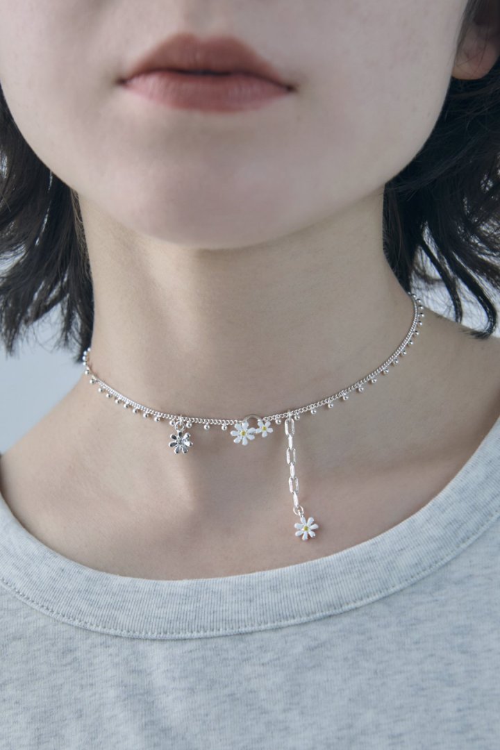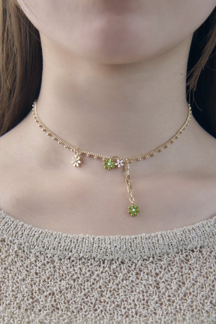 愛らしいカラーリングのフラワーモチーフがあしらわれたネックレス。