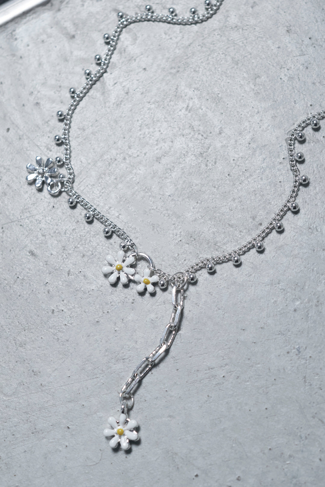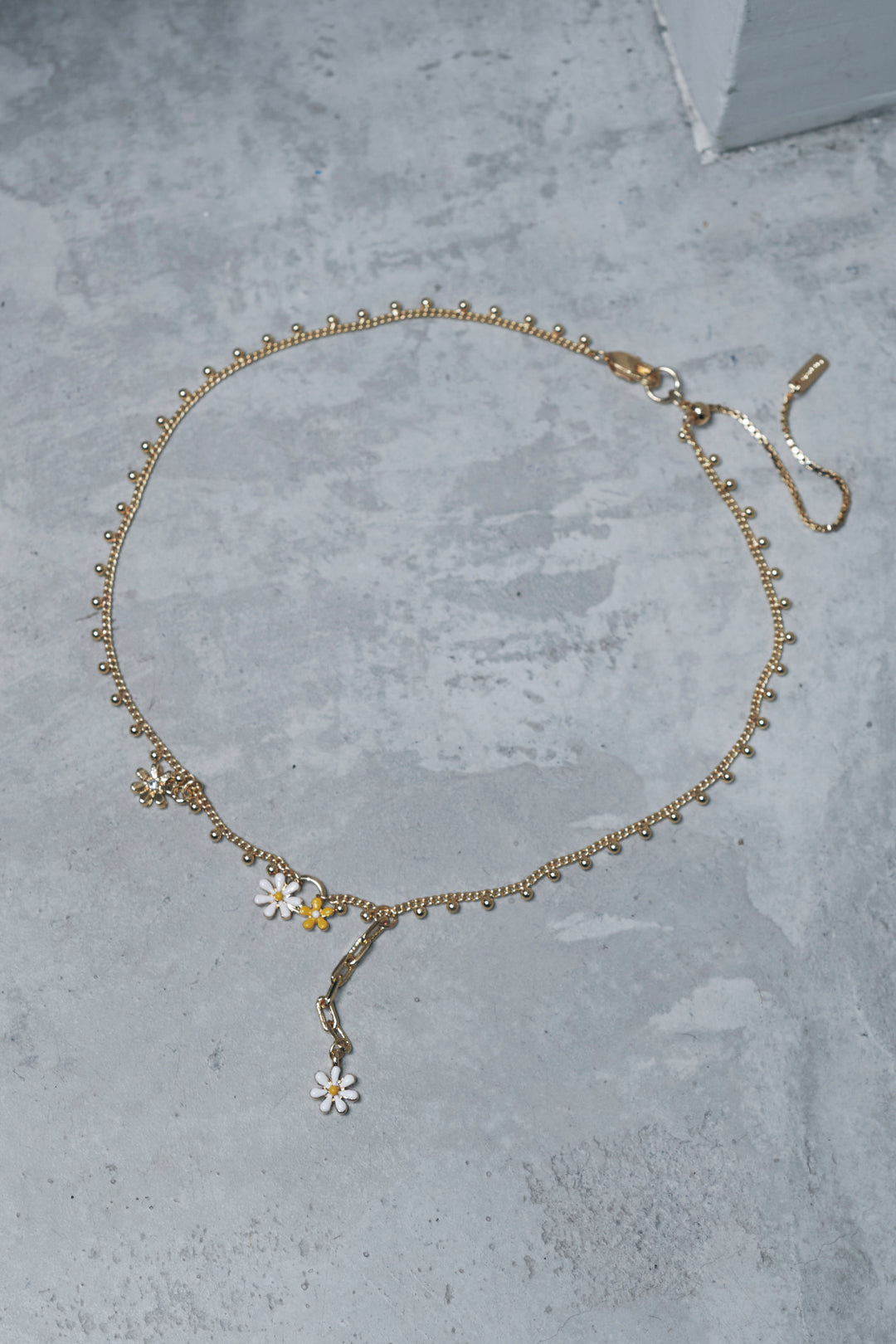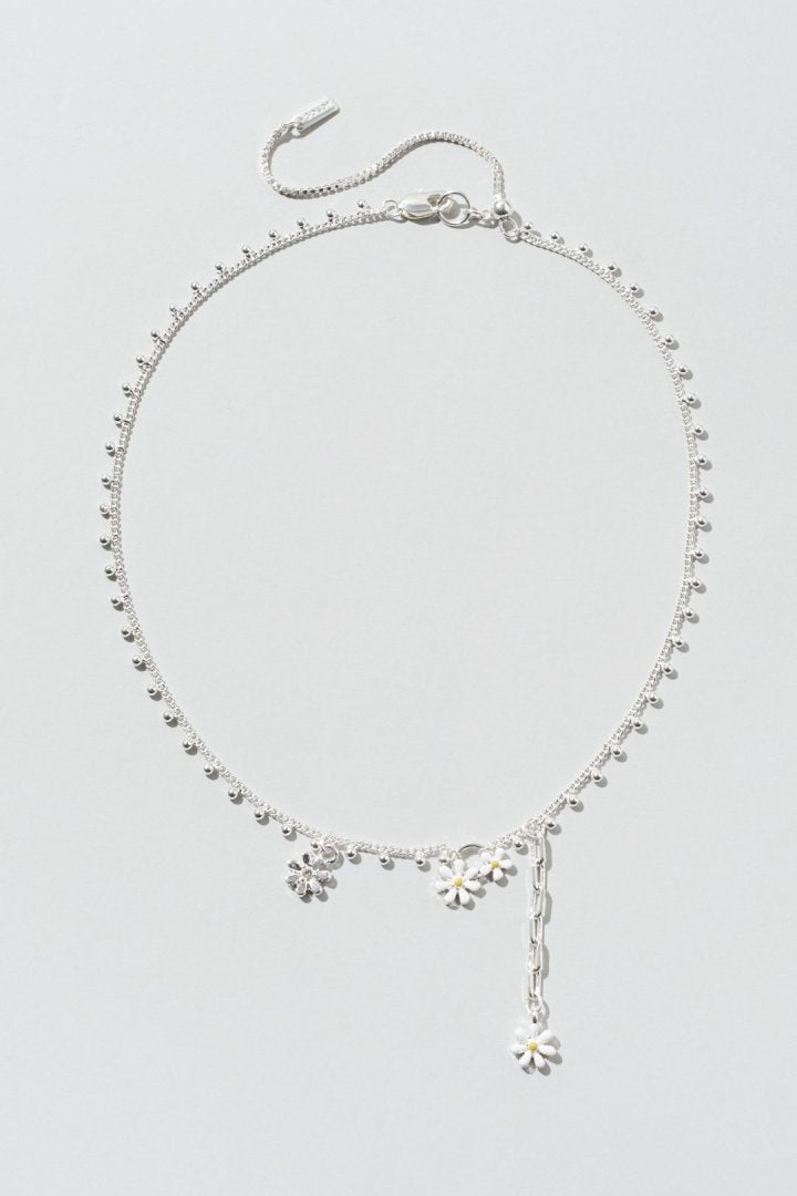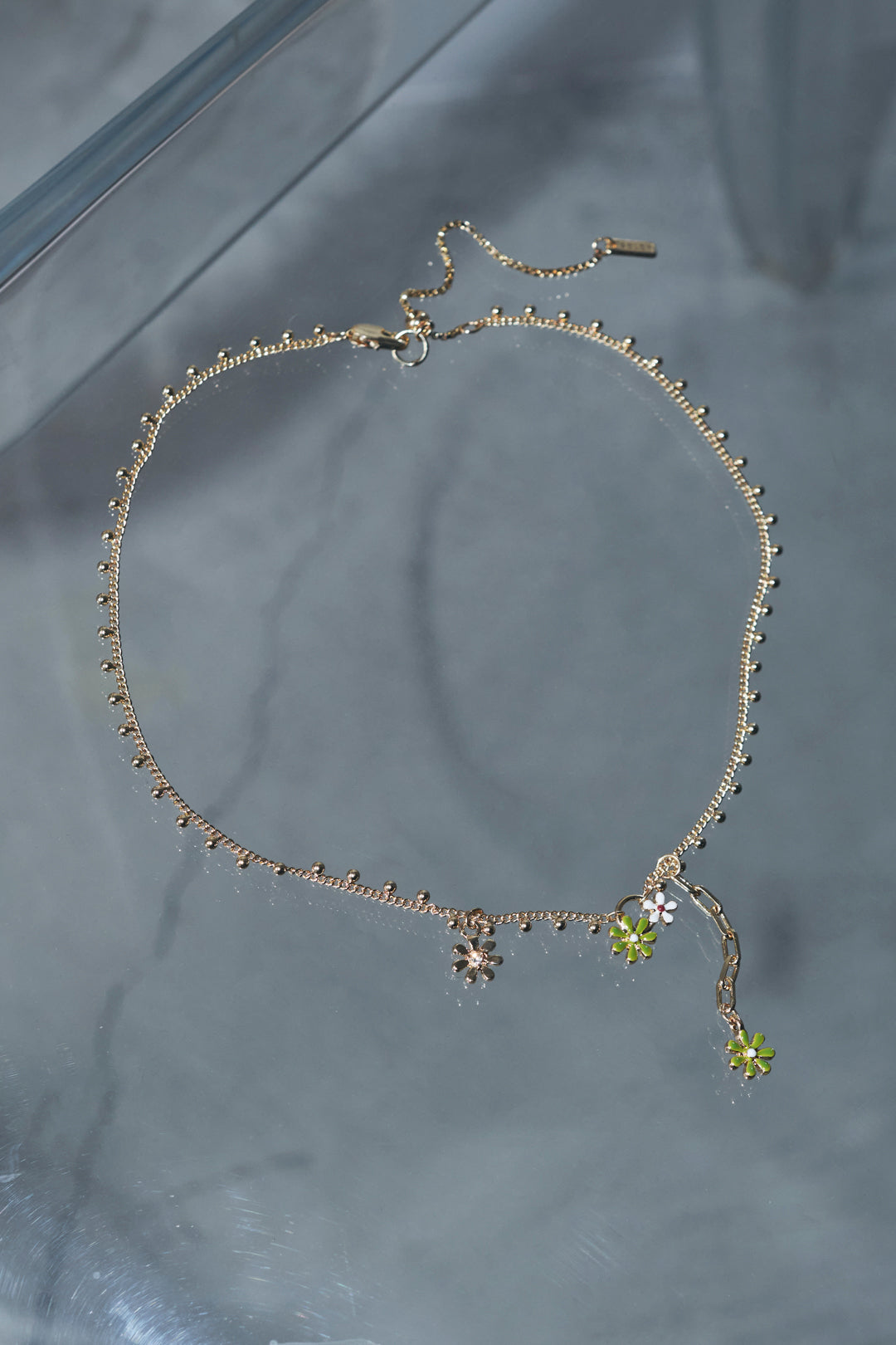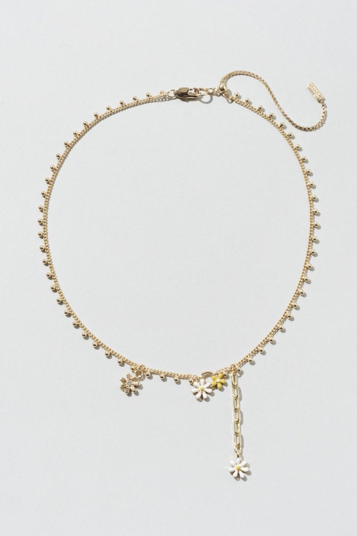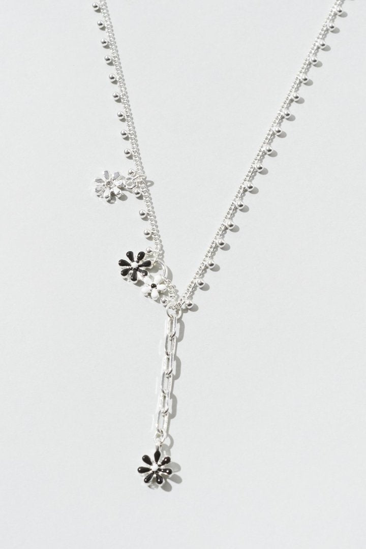 愛らしいカラーリングのフラワーモチーフがあしらわれたネックレス。