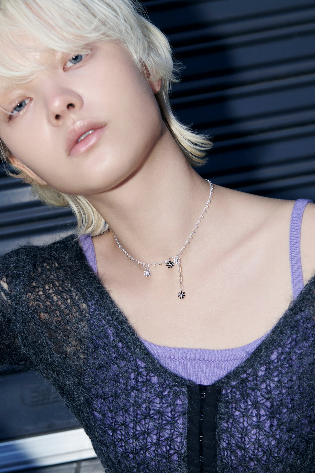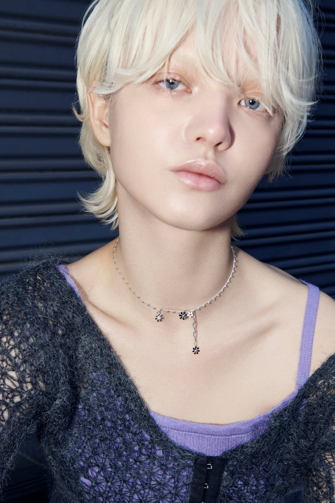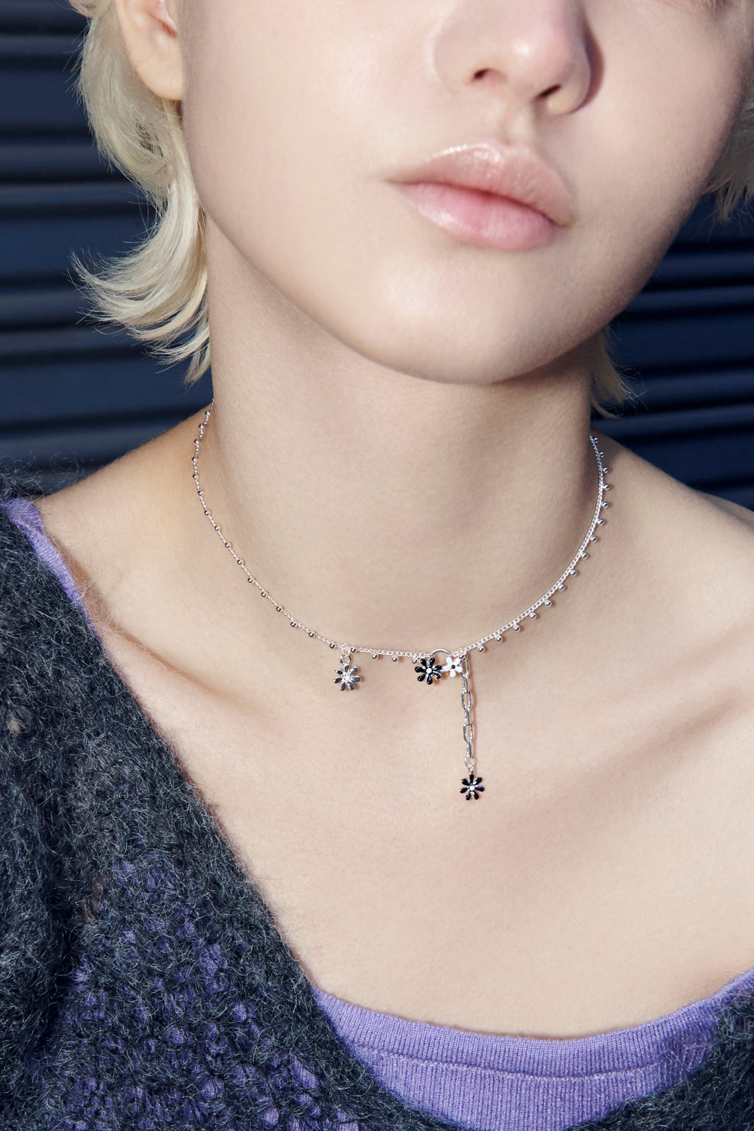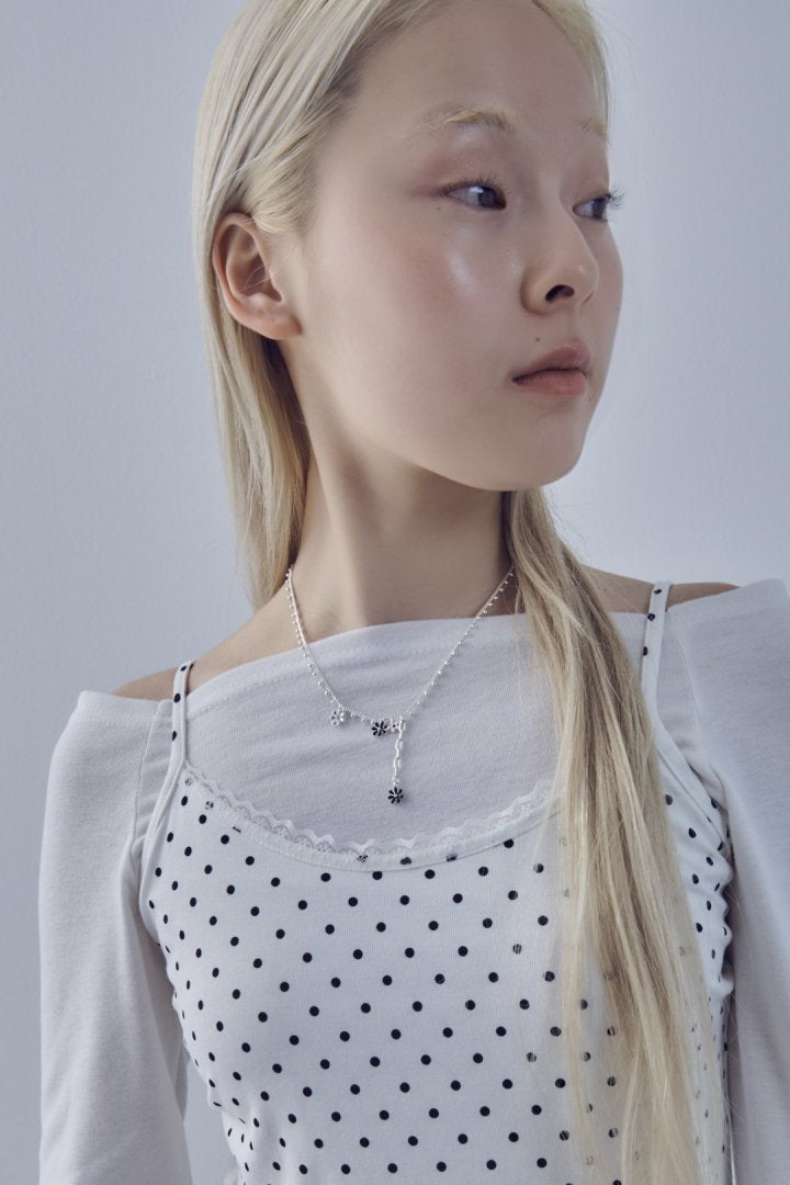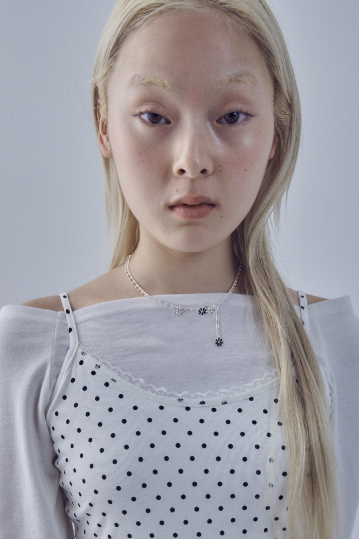 愛らしいカラーリングのフラワーモチーフがあしらわれたネックレス。