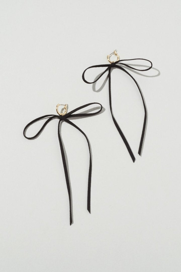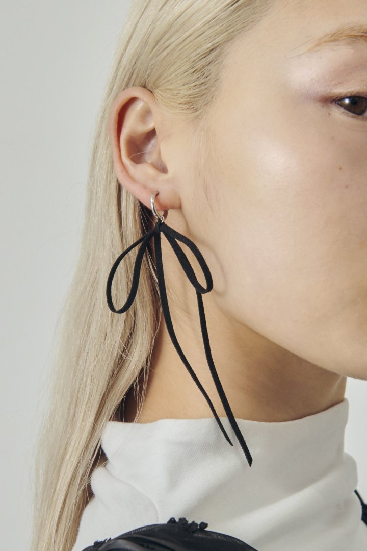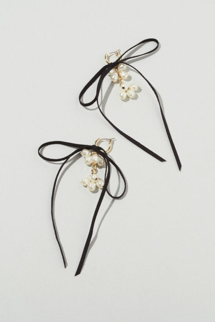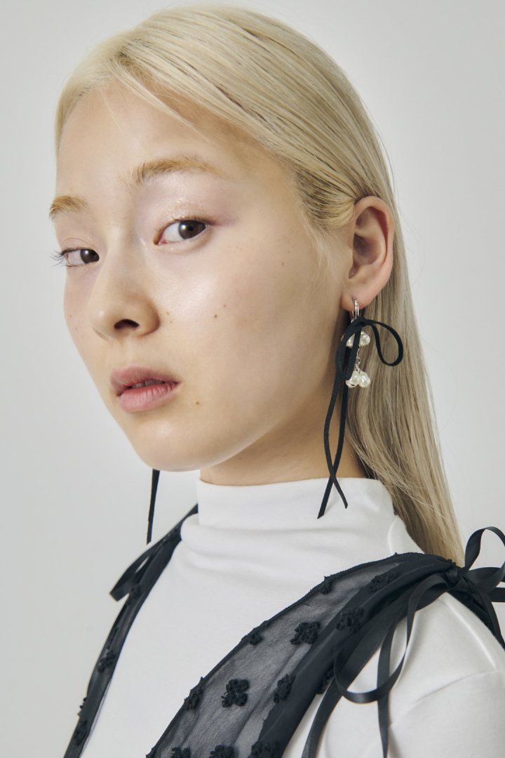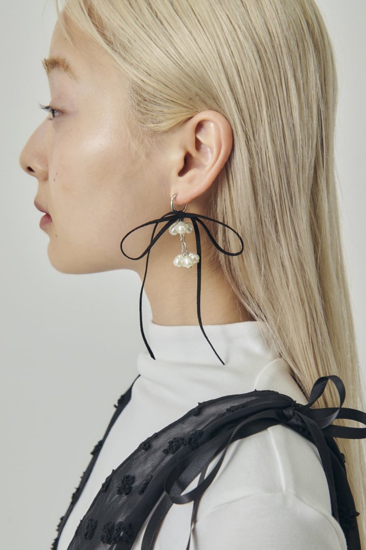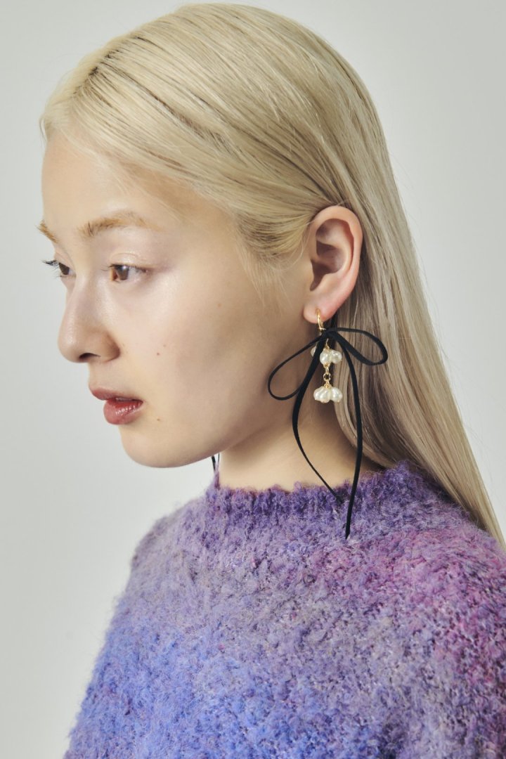 それぞれ取り外してシンプルなフープピアスにしたり、パール、リボンのみにデザインを変えることもできる2WAY仕様です。