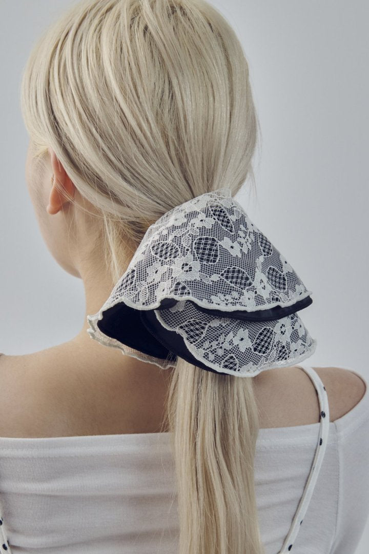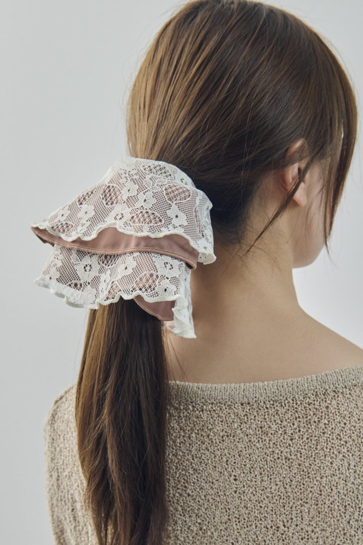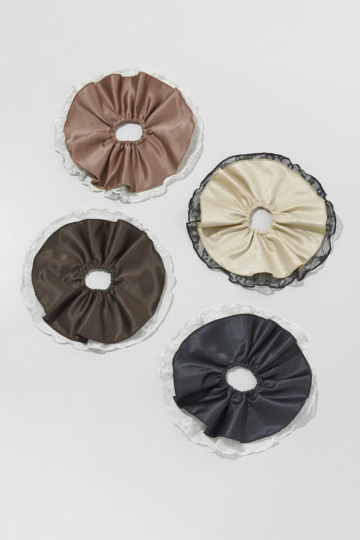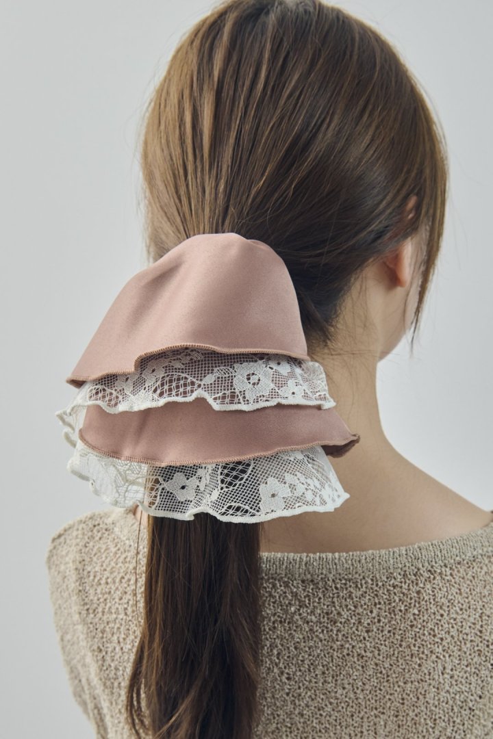 【GOLDYオリジナル】 GOLDYオリジナルデザインのシュシュ ・レース×サテンのレイヤードデザイン ・フリルのようなシルエットが華やか ・リバーシブルで使える◎ レースとサテンを重ねてワイドなフォルムに仕上げたシュシュ。 いつものまとめ髪にさっと取り入れるだけで、大人可愛く今らしいヘアアレンジをお楽しみいただけます。 ※お使いのモニター環境により、実際の色味と異なって見える場合がございます。 ※生産時期により色味が多少異なる場合がございます。この商品の特徴として、予めご了承くださいませ。