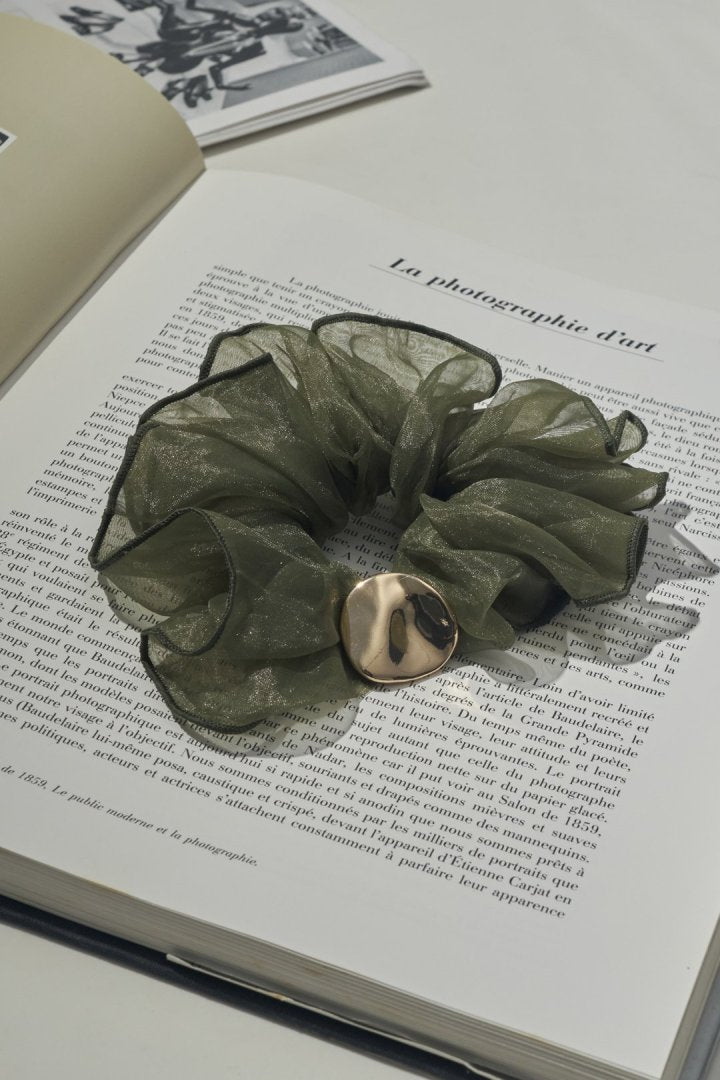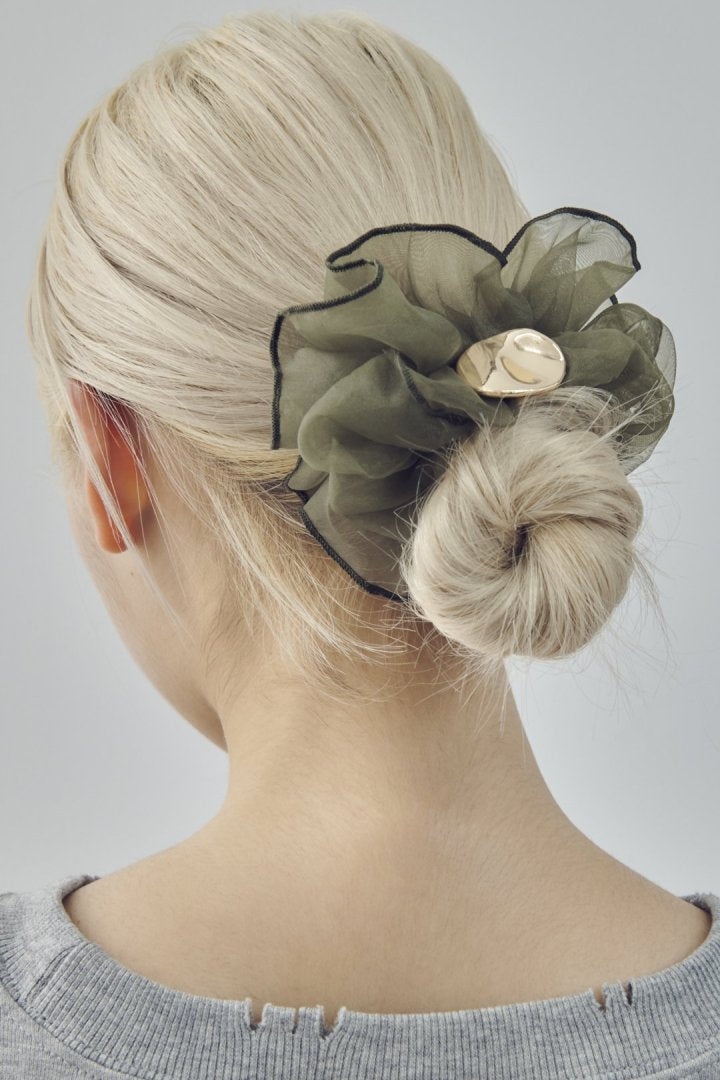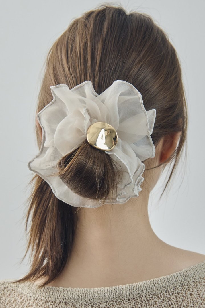 【GOLDYオリジナル】 GOLDYオリジナルデザインのシュシュ ・シアー×メタルが印象的なシュシュ ・華やかなボリュームシルエット ・甘さを抑えたカラーで取り入れやすい◎ ニュアンス感のあるメタルプレートが目を惹く、 ボリューミーなシアー生地のシュシュ。 カジュアルな普段使いはもちろん、 結婚式や卒業式・入学式などのオケージョンシーンやパーティーシーンなど、 ファッションやスタイルを選ばずお使いいただけます。 ※お使いのモニター環境により、実際の色味と異なって見える場合がございます。 ※生地の色味には若干の個体差がございます。 この商品の特徴として、予めご了承くださいませ。