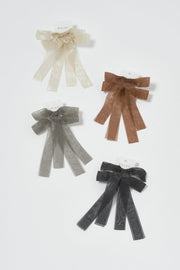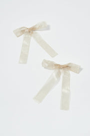 【GOLDYオリジナル】GOLDYオリジナルデザインのバレッタ・シアー生地のシンプルなリボン・2個セットでアレンジの幅が広がる・普段使いはもちろん、結婚式などオケージョンシーンやパーティーシーンのヘアアレンジにも◎程よいサイズと落ち着いたカラーリングで、大人の女性でも取り入れやすいリボンバレッタ。つけるだけでトレンド感があり、大人可愛く今らしいヘアアレンジをお楽しみいただけます。※お使いのモニター環境により、実際の色味と異なって見える場合がございます。※生地の色味には若干の個体差がございます。この商品の特徴として、予めご了承くださいませ。