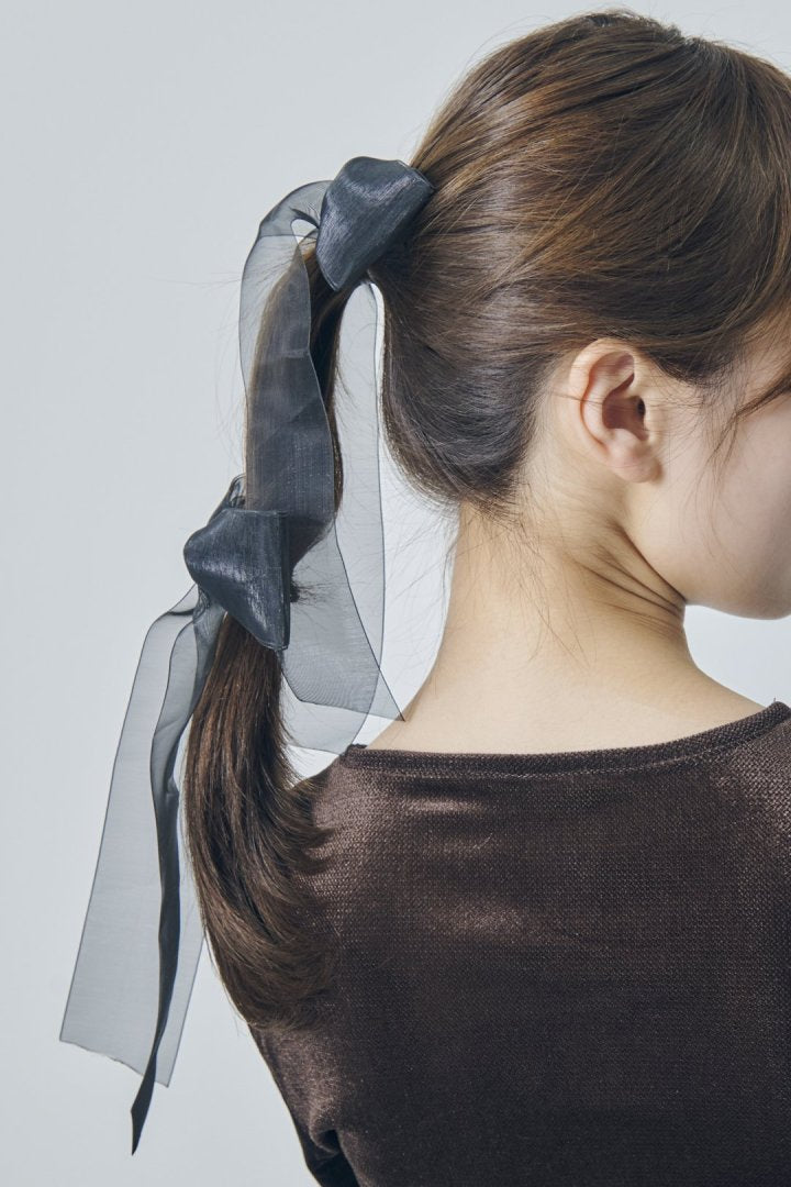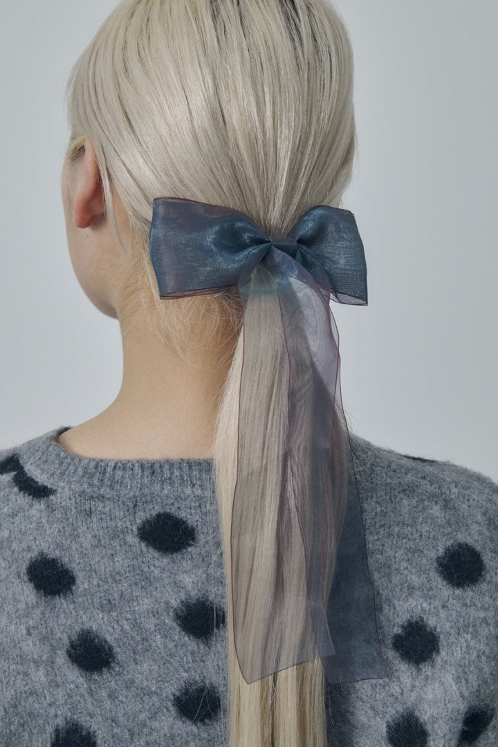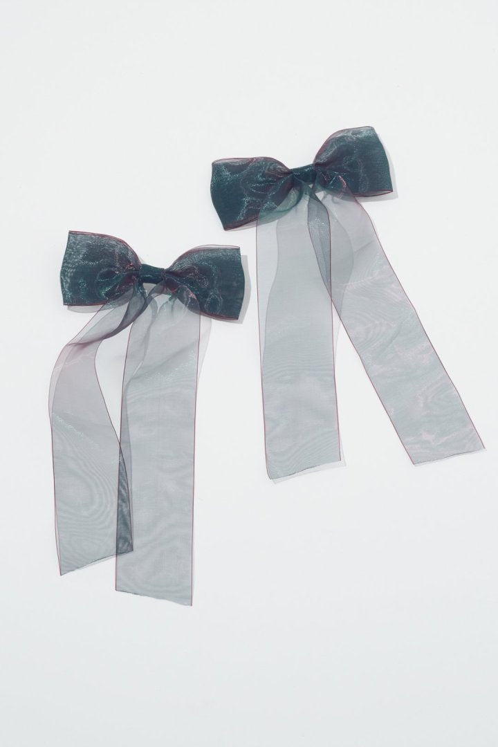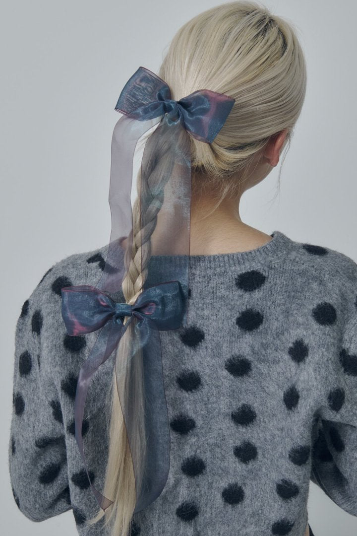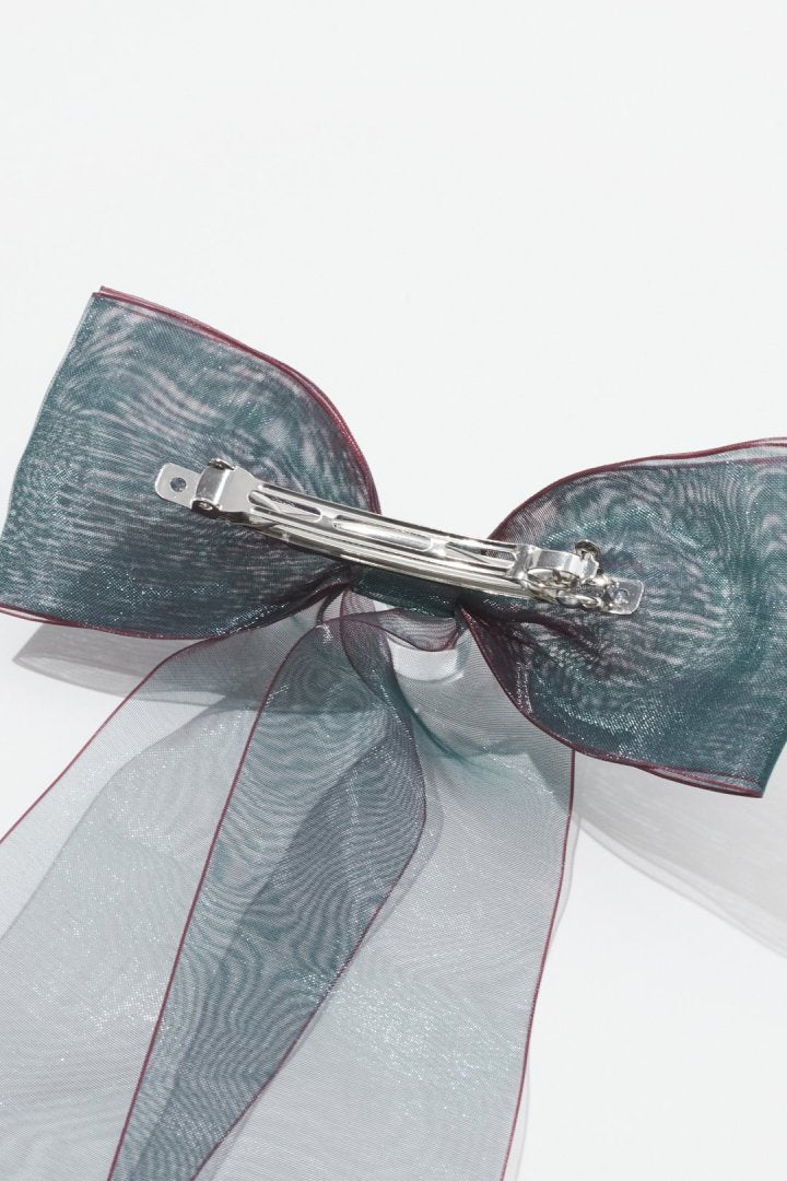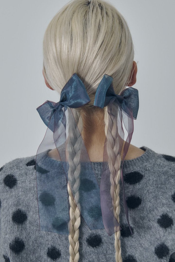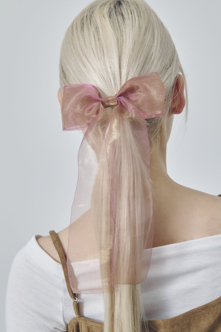 オーロラカラーのシアー生地が目を惹くリボンバレッタ。