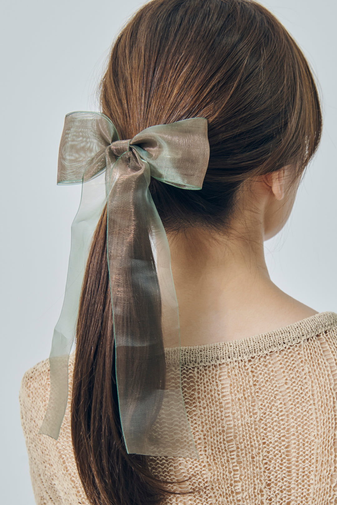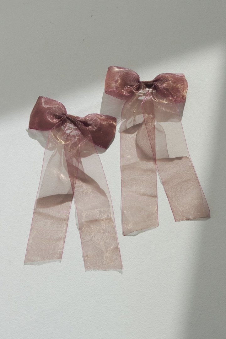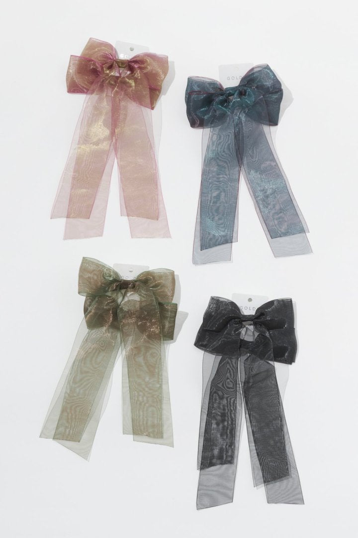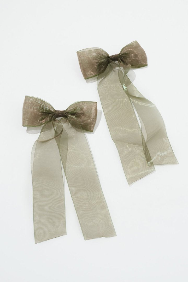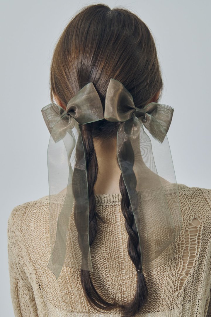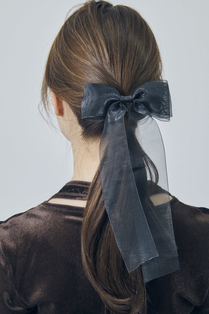 オーロラカラーのシアー生地が目を惹くリボンバレッタ。
