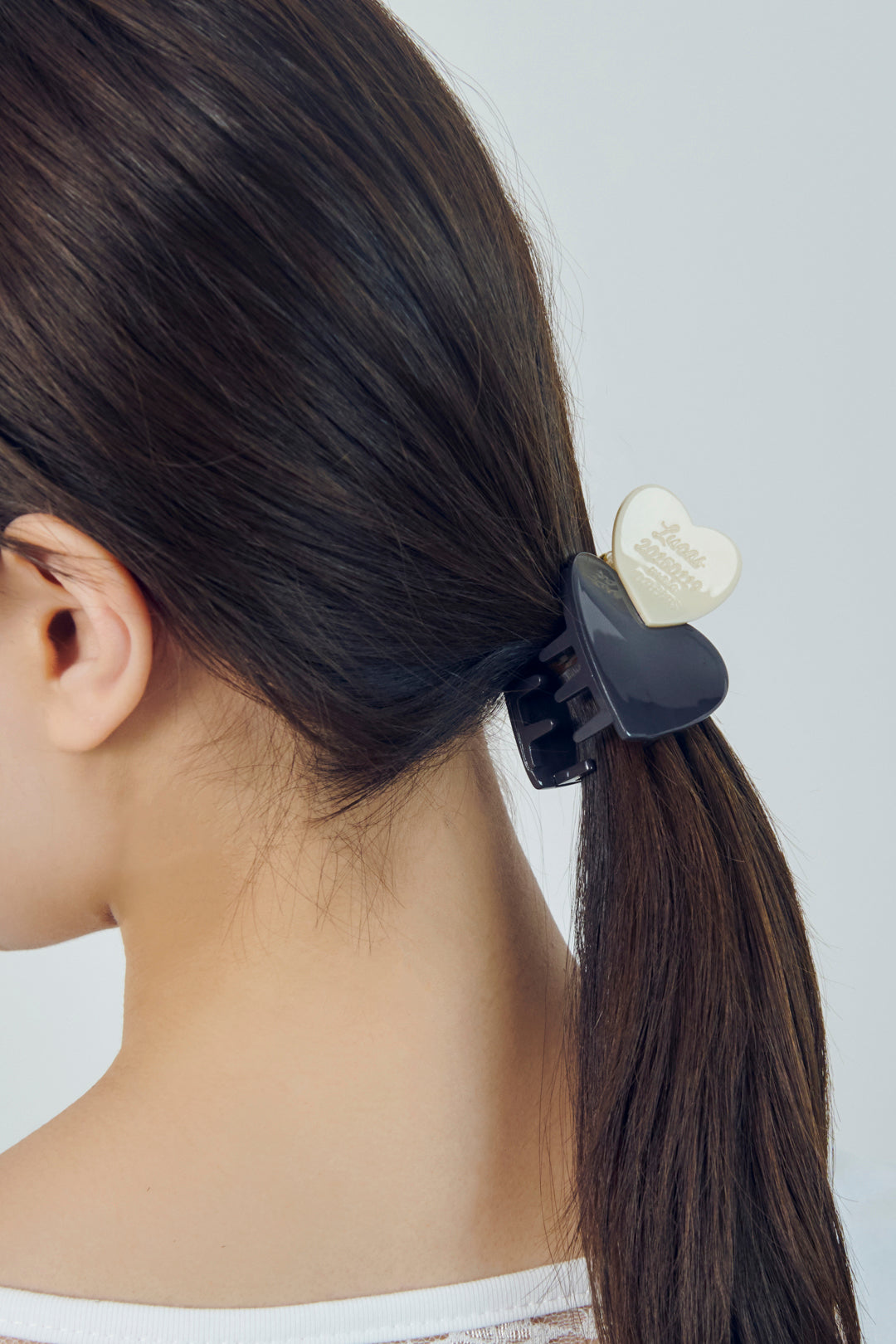 【GOLDYオリジナル】GOLDYオリジナルデザインのバンスクリップ・こなれた雰囲気のバイカラーデザイン・刻印入りのハートモチーフがポイント・気軽に使える小さめサイズハートが2つ並んだフォルムと、シックなカラーリングが魅力のバンスクリップ。