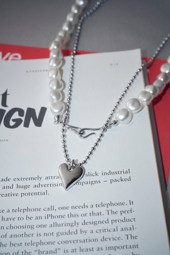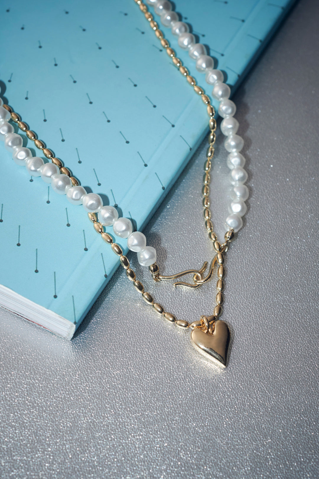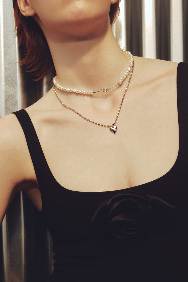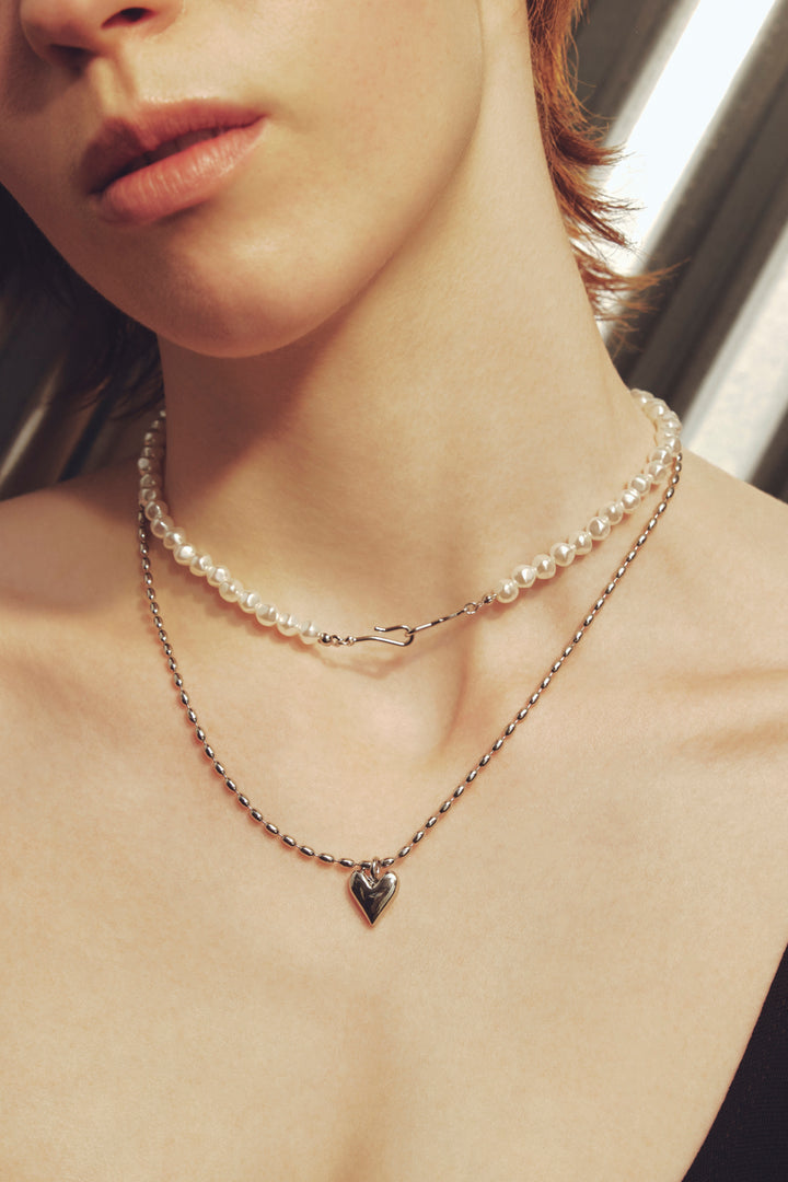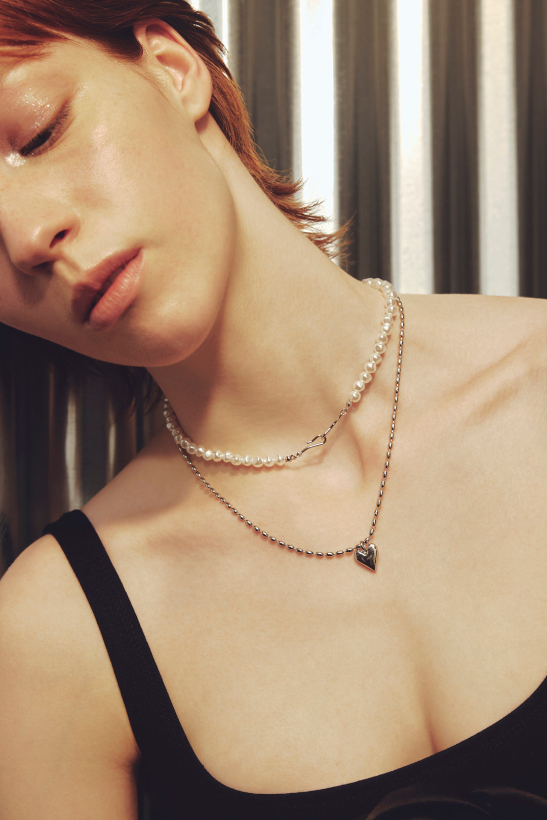 【GOLDYオリジナル】GOLDYオリジナルデザインのネックレスです。人気のハートモチーフネックレスと、フックモチーフの留め具がアクセントになったパールネックレスの2本セットデザイン。単品使いや重ね付けのレイヤードスタイルはもちろん、パールネックレスのフックモチーフを後ろにして着けたり、チェーンネックレスをスライドビーズでお好きな長さに調節したりと、気分やコーディネートに合わせて、マルチなスタイリングを楽しめるアイテムです。カラーは、艶のあるシルバーとゴールドで、それぞれパールのサイズやチェーンの太さが異なる計4タイプをご用意いたしました。清楚なイメージのパールアイテムは、結婚式や卒業式・入学式などのオケージョンシーンやパーティーシーンはもちろん、大人のオフィスシーンからカジュアルな普段使いまで、ファッションやコーディネートを選ばずお使いいただけます。〇同シリーズのピアスタイプ(1241207)、イヤーカフタイプ(2241207)もご用意がございます。