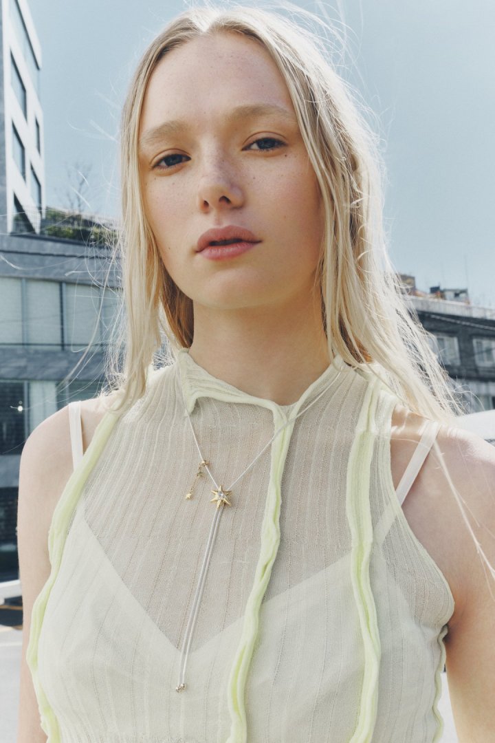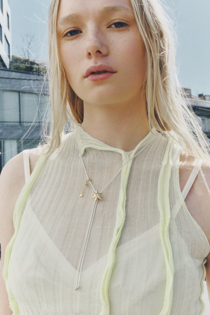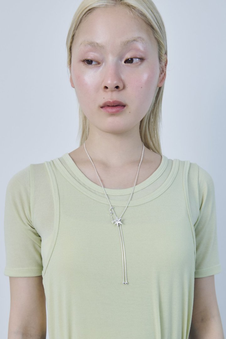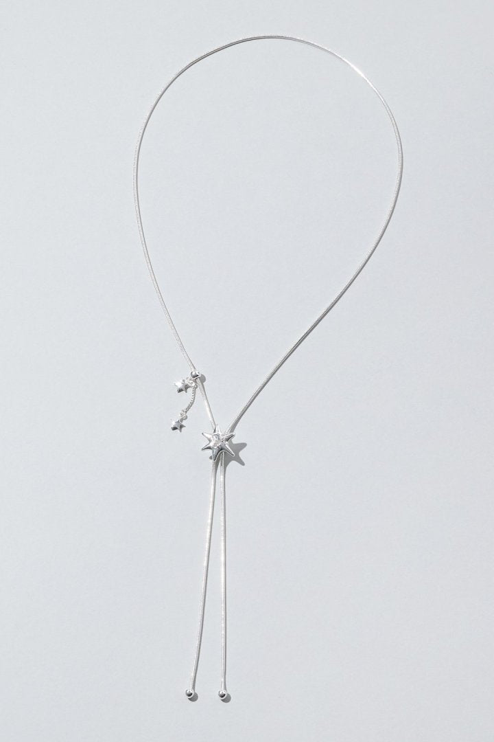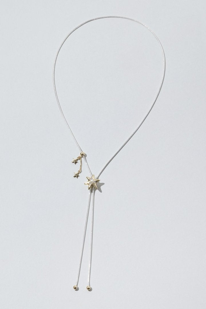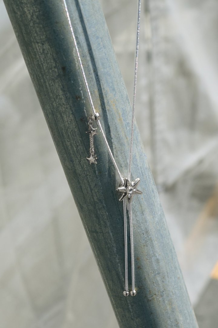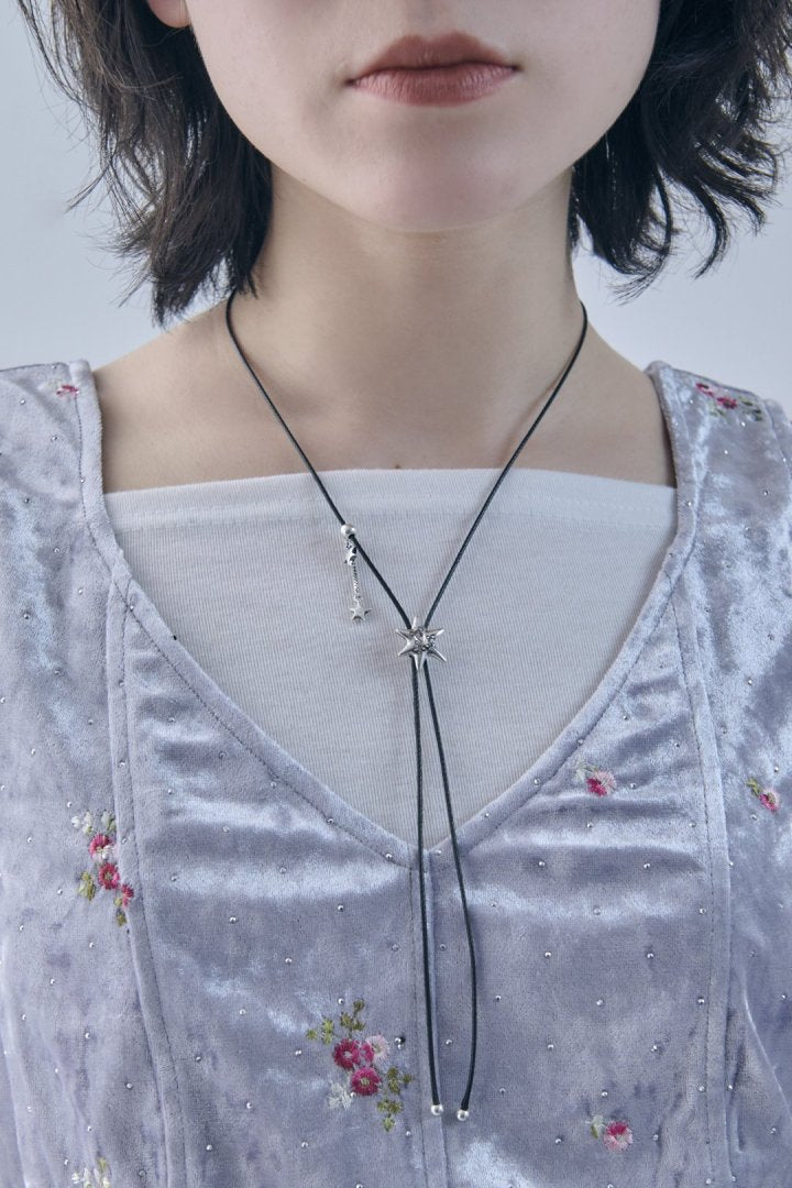 【GOLDYオリジナル】GOLDYオリジナルデザインのネックレス・ループタイ調のY字シルエット・エッジの効いたモチーフがポイント・モチーフの位置はスライドして調節できます◎ビジューがアクセントになったキラキラモチーフや、星のチャームを組み合わせたループタイ調のネックレス。モチーフはスライドビーズ仕様なので、その日のトップスに合わせて位置を調節したり、ロングネックレスにシルエットを変えたり…と、マルチなスタイリングを楽しめるアイテムです。〇 同シリーズ リング:5260402※お使いのモニター環境により、実際の色味と異なって見える場合がございます。※こちらの商品は、色味に多少の個体差がございます。メッキ製品の特性として、予めご了承くださいませ。