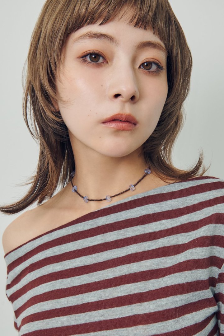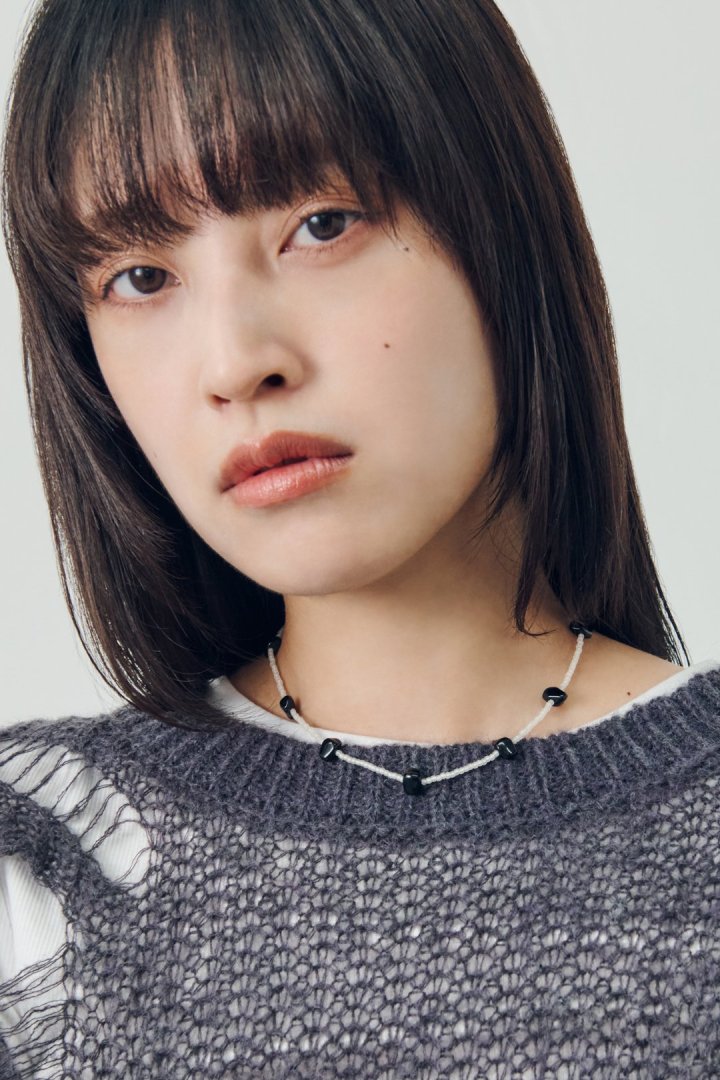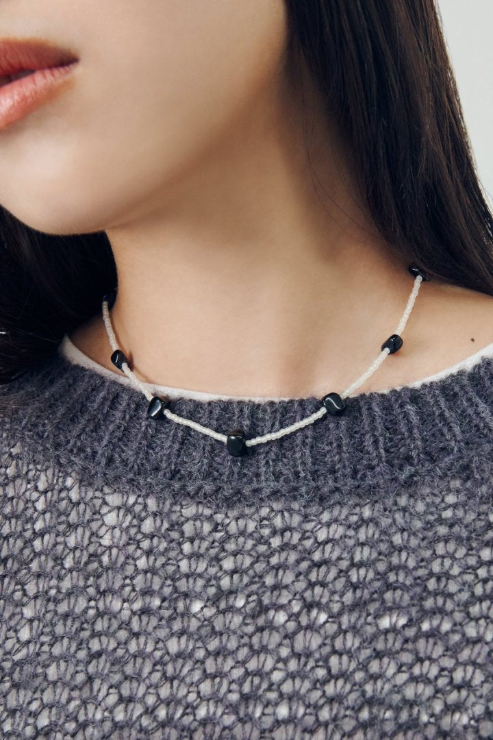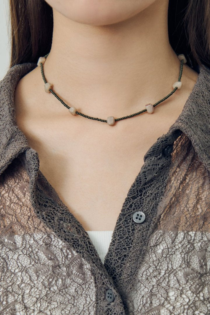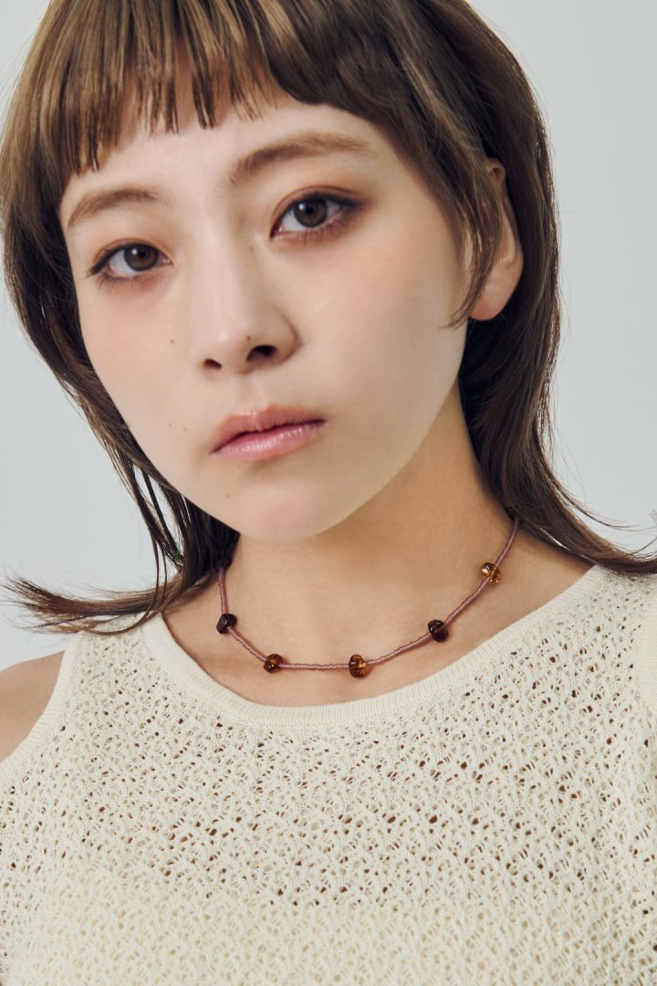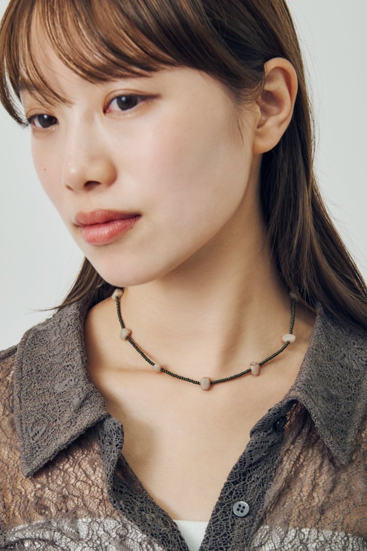 ・さりげなく首元を彩るビーズネックレス