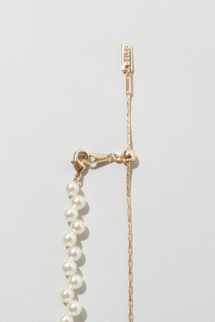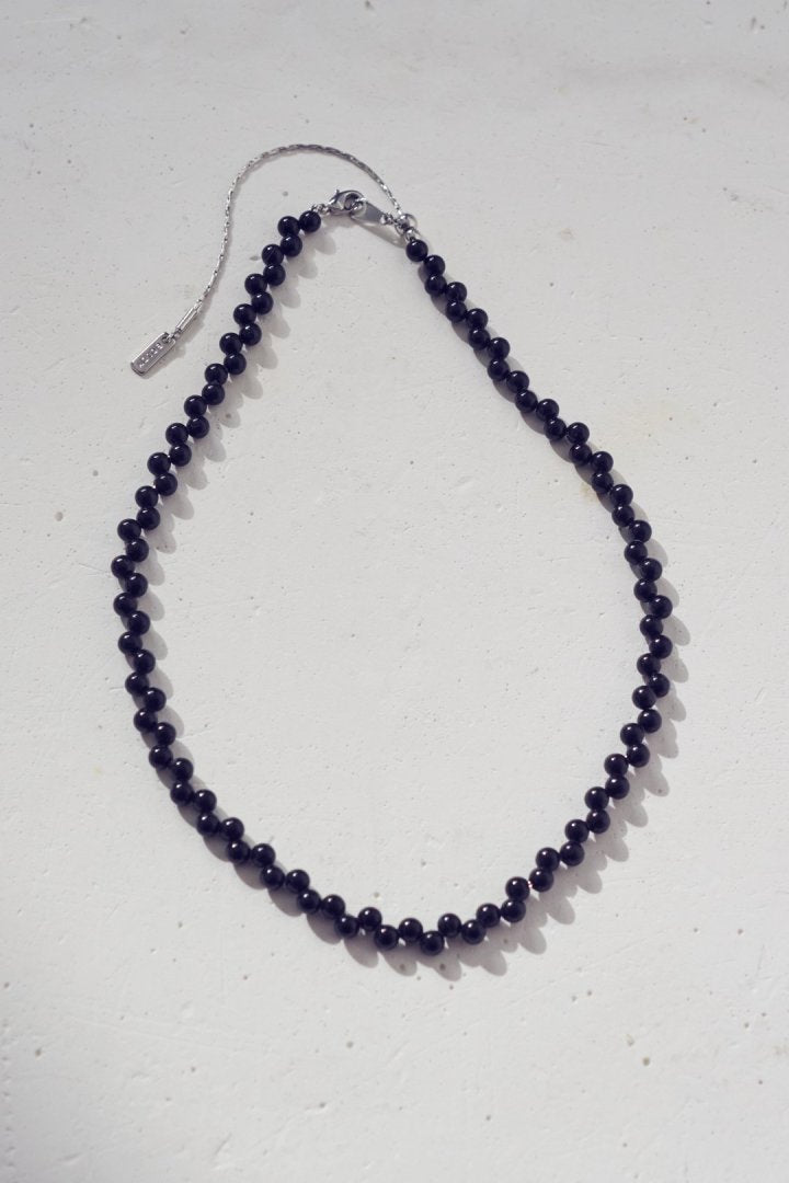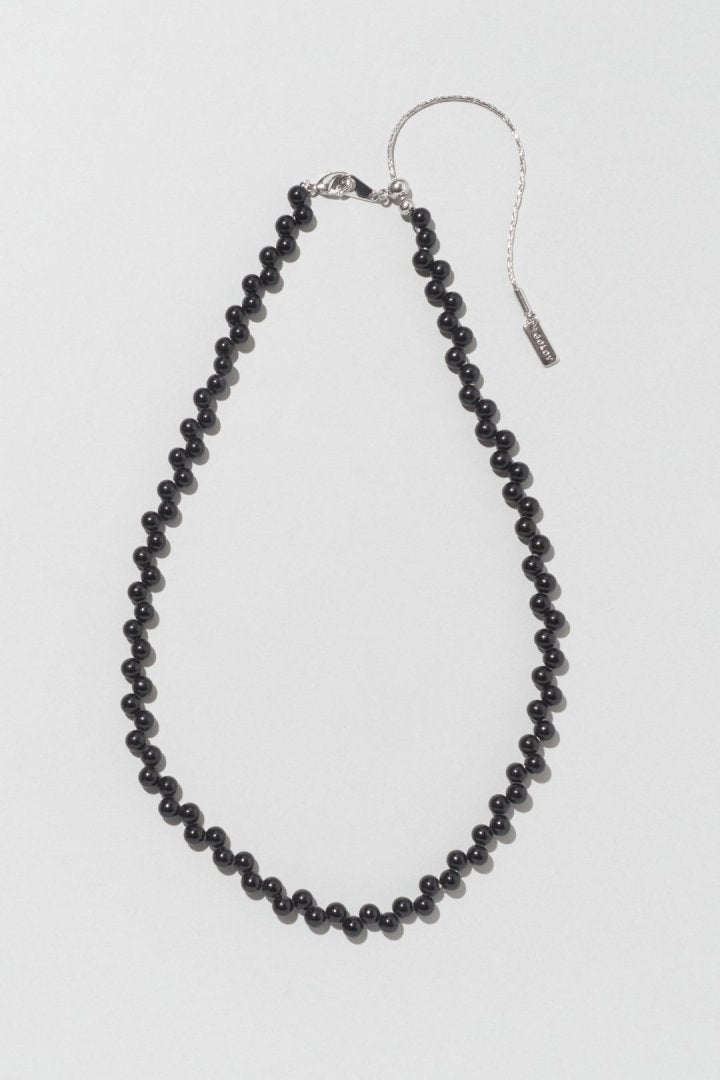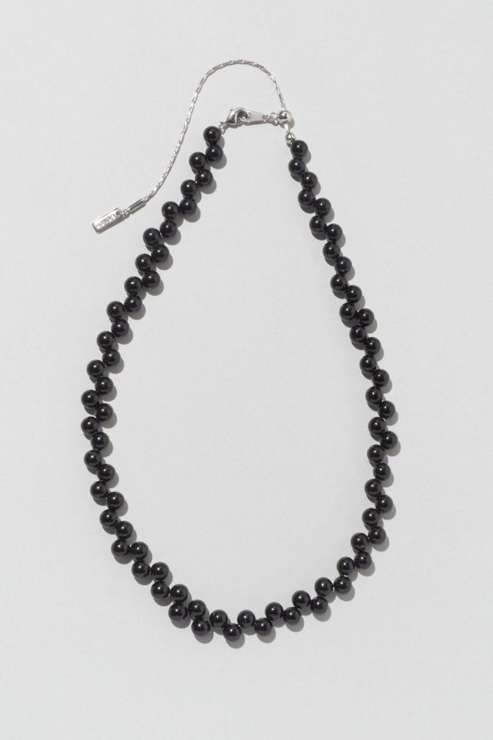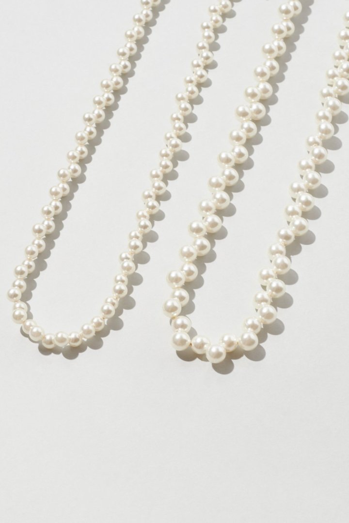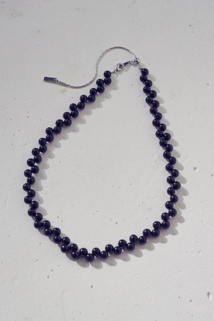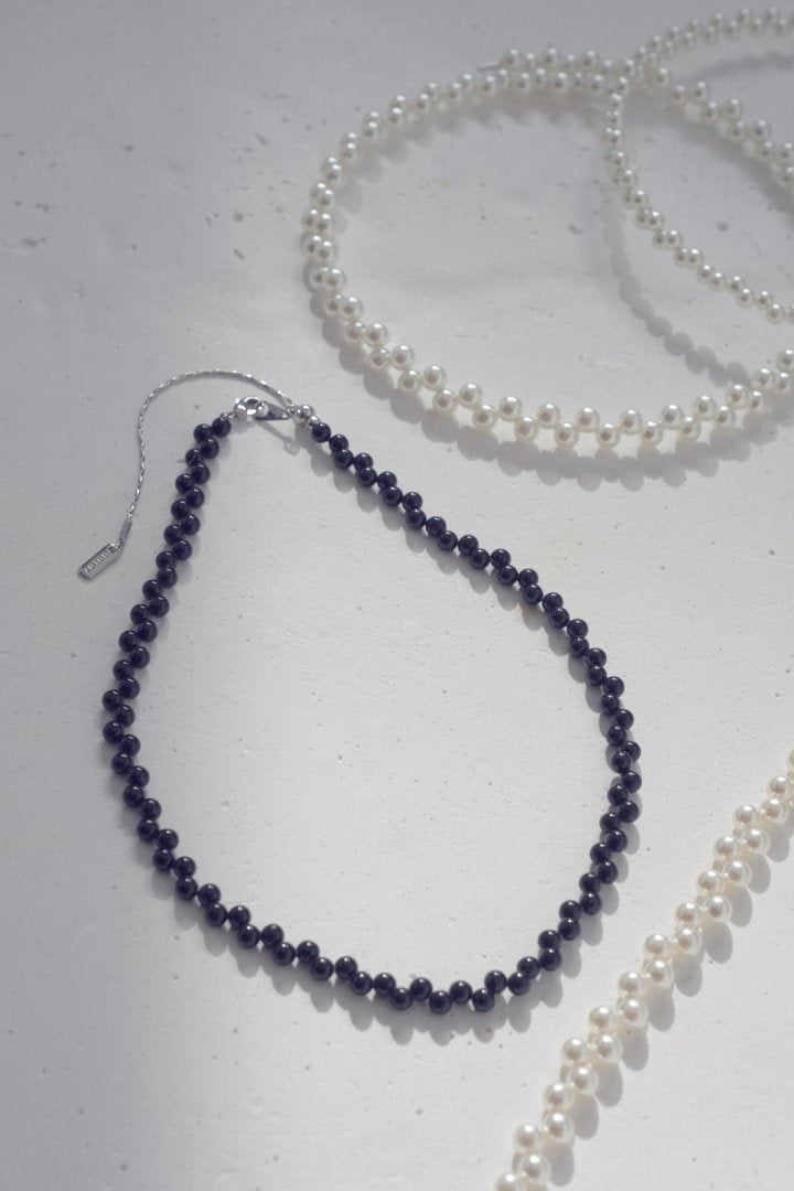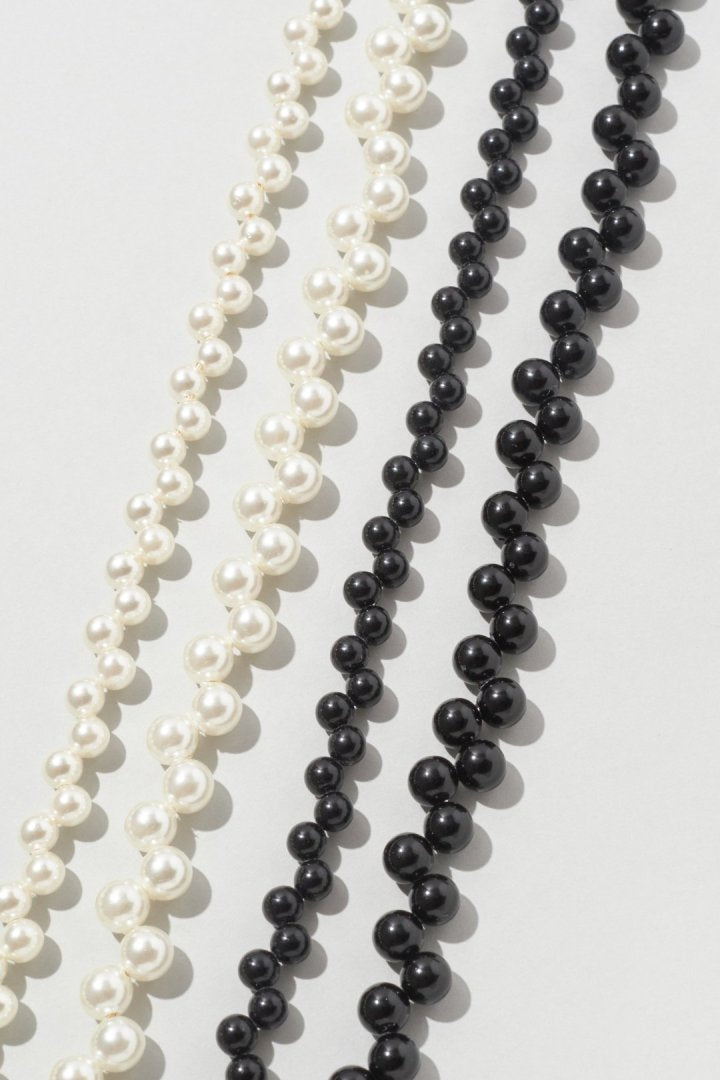 パールやブラックのビーズを交互にずらして並べた、