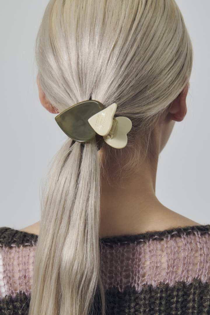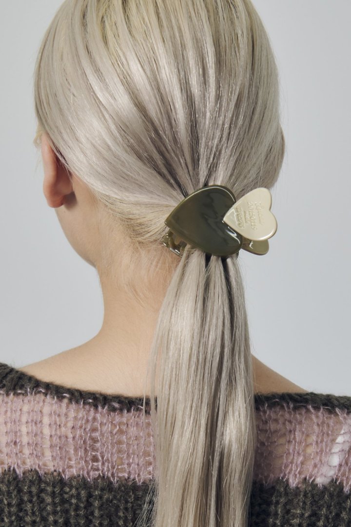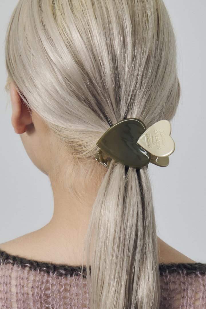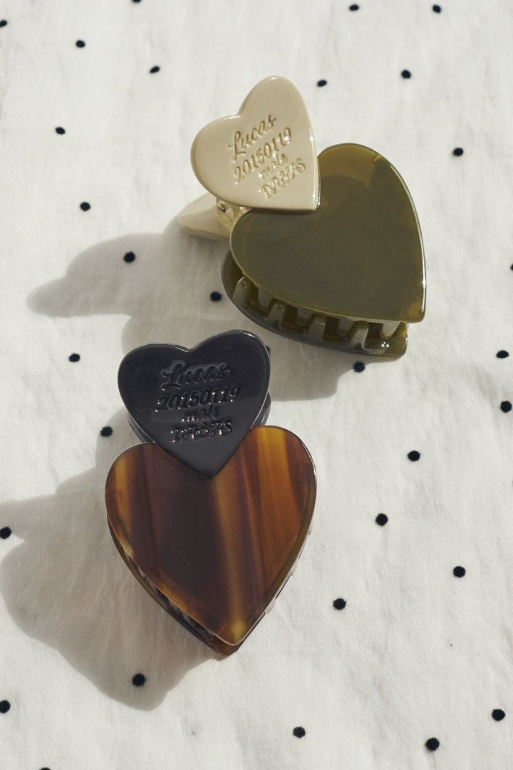 ハートが2つ並んだフォルムと、シックなカラーリングが魅力のバンスクリップ。