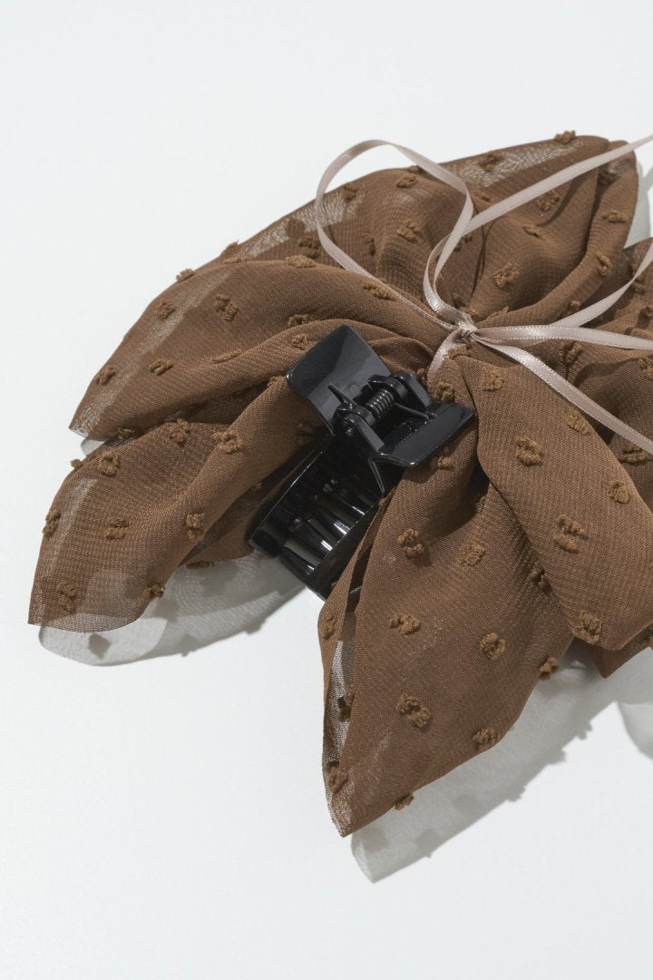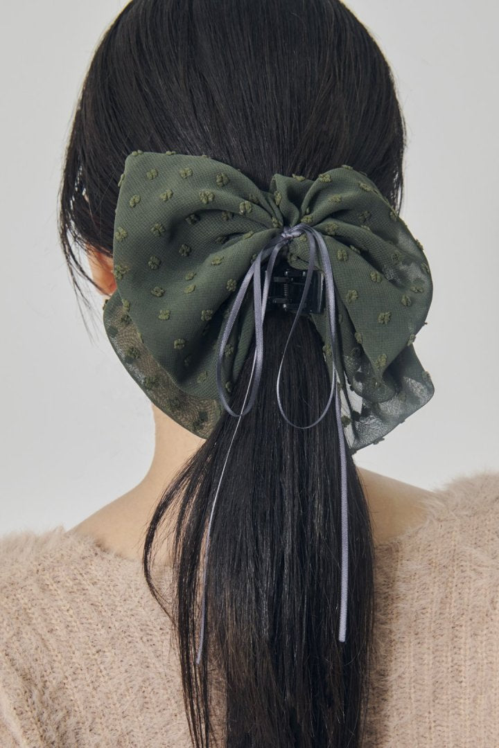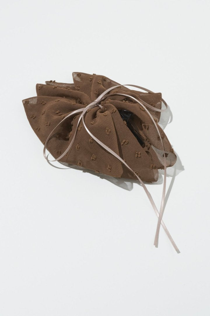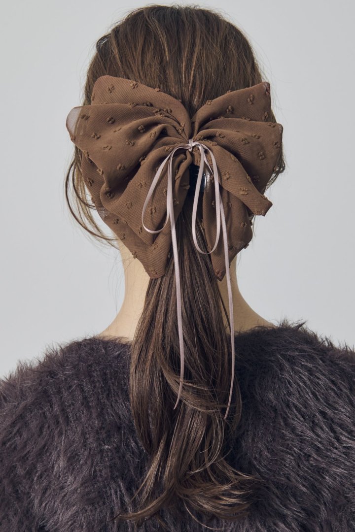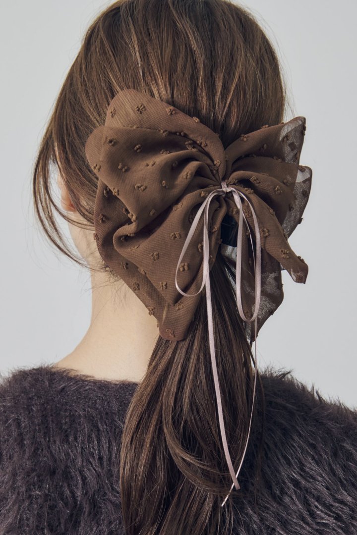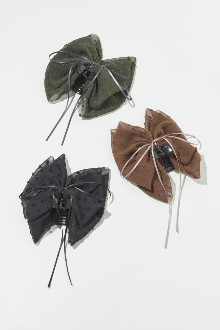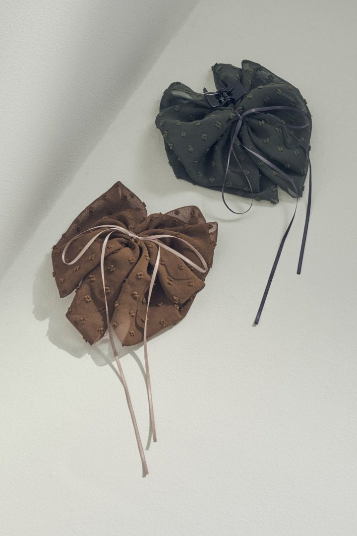 【GOLDYオリジナル】GOLDYオリジナルデザインのバンスクリップ・リボンのようなシルエットがポイント・落ち着いたカラーリング・結んだ髪やハーフアップに挟み込むだけで、簡単にヘアアレンジが完成◎リボン見えするシルエットが大人可愛いバンスクリップ。女性らしく華やかなデザインは、カジュアルな普段使いはもちろん、結婚式などオケージョンシーンやパーティーシーンにもオススメです。