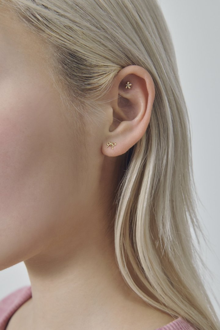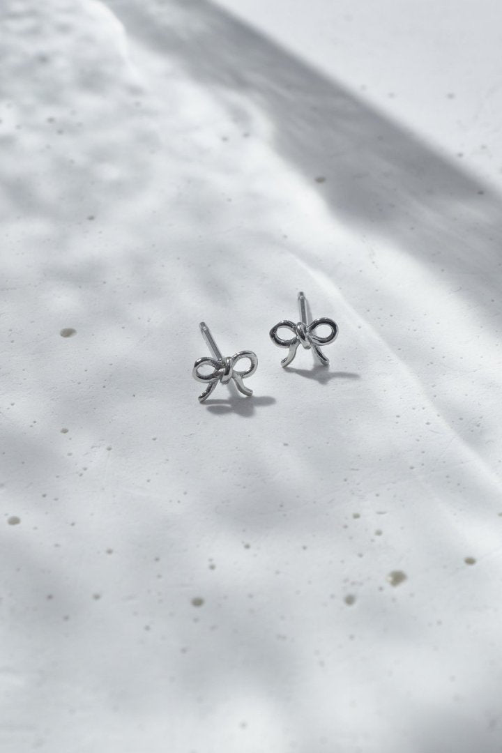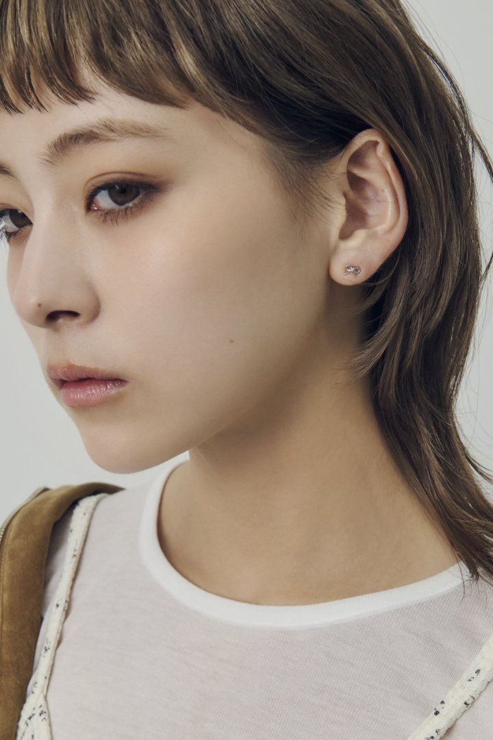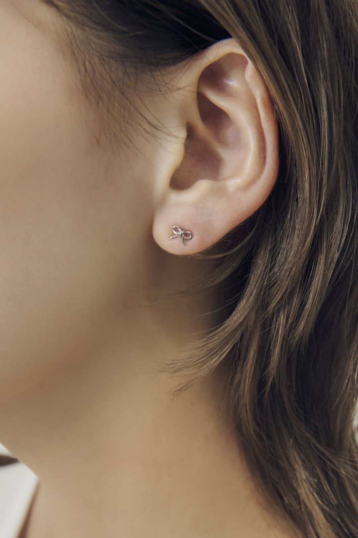 耳元になじむ、華奢なリボンモチーフのピアス。