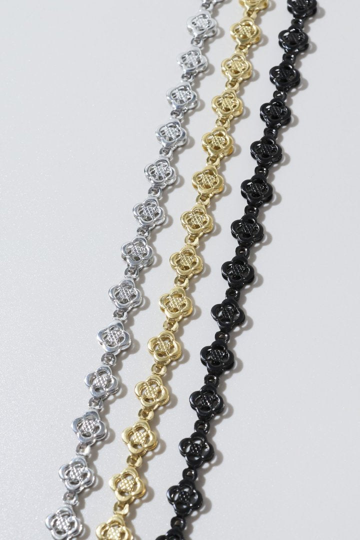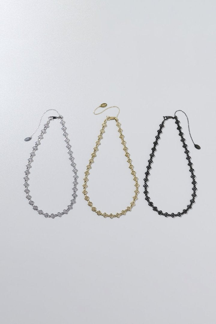 【GOLDY STAINLESS】・水や汗に強く、変色しにくいステンレス素材・耐久性に優れているので、気軽に使える◎・スライドビーズでお好みの長さに調節できます小さめのフラワーモチーフが連なった、タトゥーライクなチョーカー。お手持ちのネックレスと重ね付けするレイヤードスタイルもおすすめです。カジュアルな普段使いはもちろん、結婚式や卒業式・入学式などのオケージョンシーンやパーティーシーンにもお使いいただけます。〇 同シリーズ ハートモチーフ:3260414--- ステンレス素材について ---◯ 水や汗に強いので錆びにくく、変色しにくい◯ キズがつきにくい◯ 金属アレルギーが比較的起きにくいといった特徴があるステンレス素材は、様々な方にオススメです。■シルバーカラーメッキ加工を施していない、素材そのままの色味となります。■ゴールドカラー, ブラックカラーステンレスに、イオンプレーティング加工によって着色をした商品です。通常のメッキ加工と比べて、密着性・耐食性・磨耗耐久性に優れています。※長期間の使用による劣化や個人の体質などによっては、金属アレルギーを引き起こすこともございます。予めご了承ください。※お使いのモニター環境により、実際の色味と異なって見える場合がございます。
