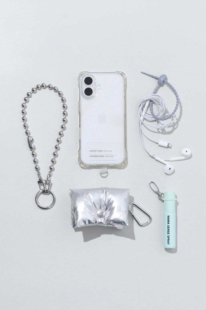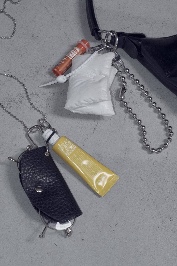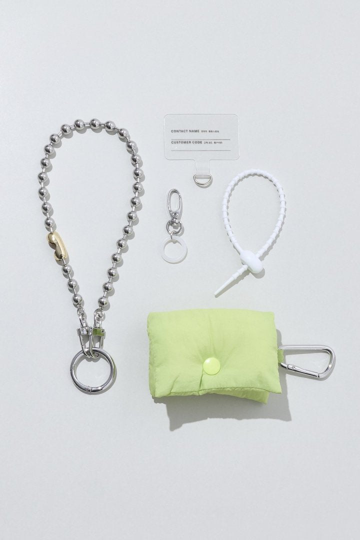 手首にかけてリストストラップとしても使えるボールチェーンなど、さまざまなチャームがセットになったマルチ機能アイテム。