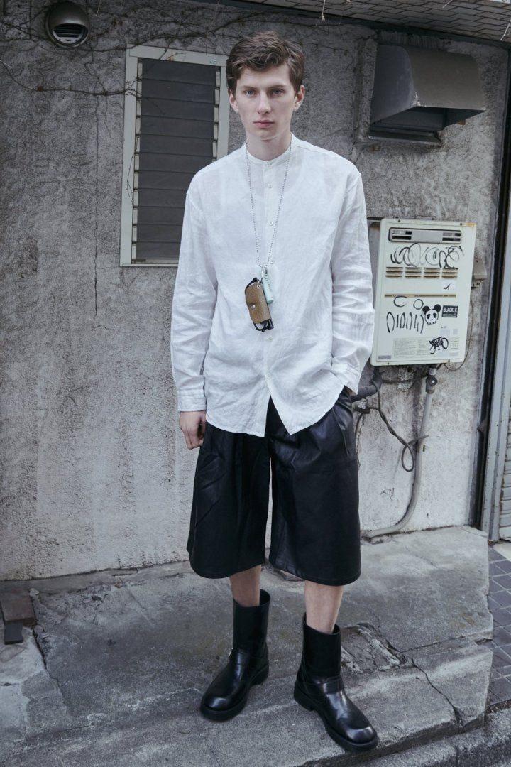 ・フェイクレザー×メタルがこなれた雰囲気