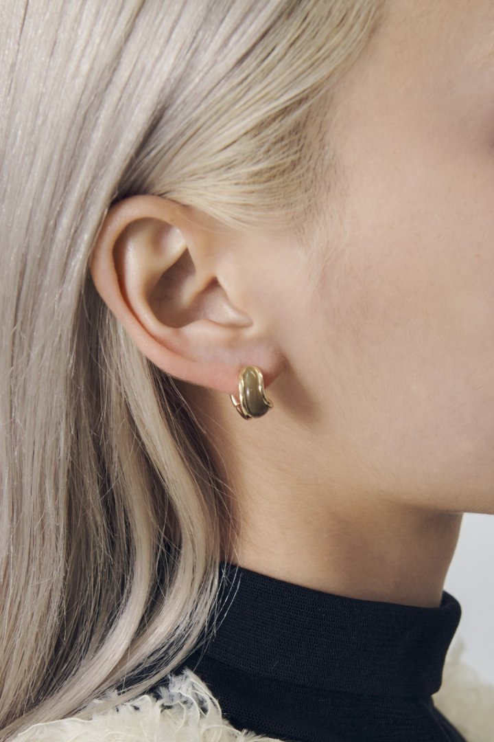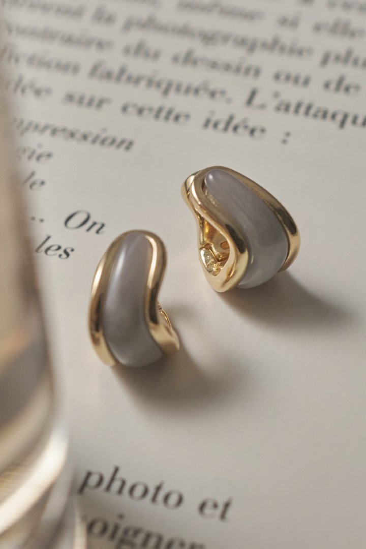 落ち着いたカラーリングとメタルが魅力的なデザインはファッションを選ばず着けられ、耳元を明るく華やかな印象に。
