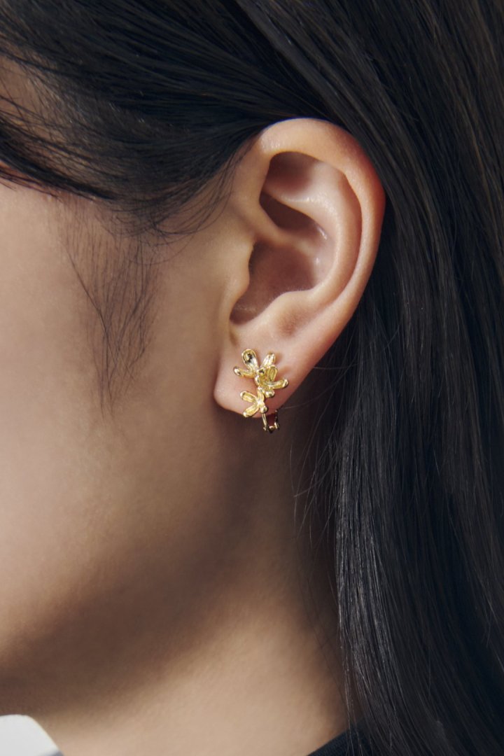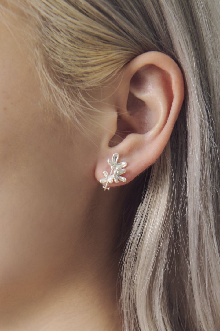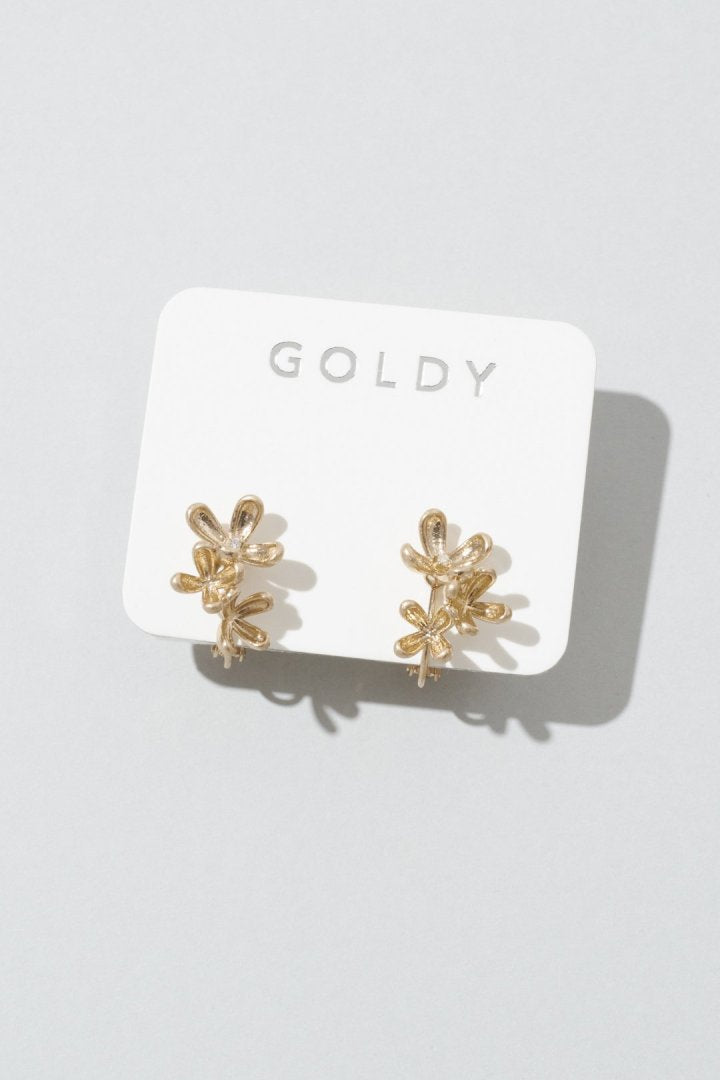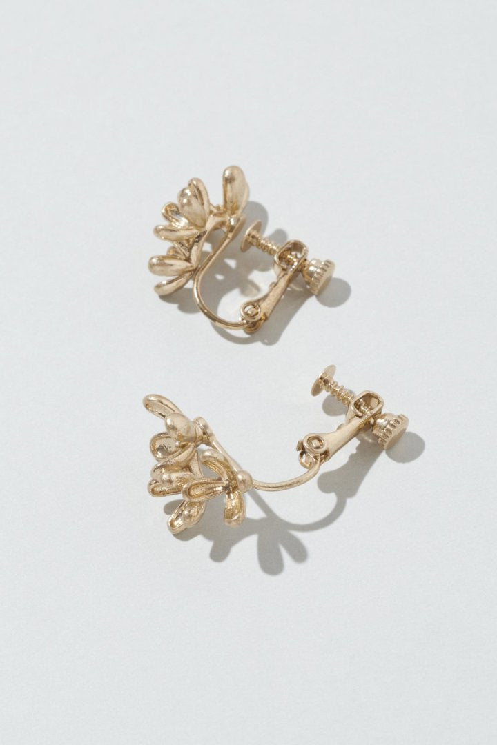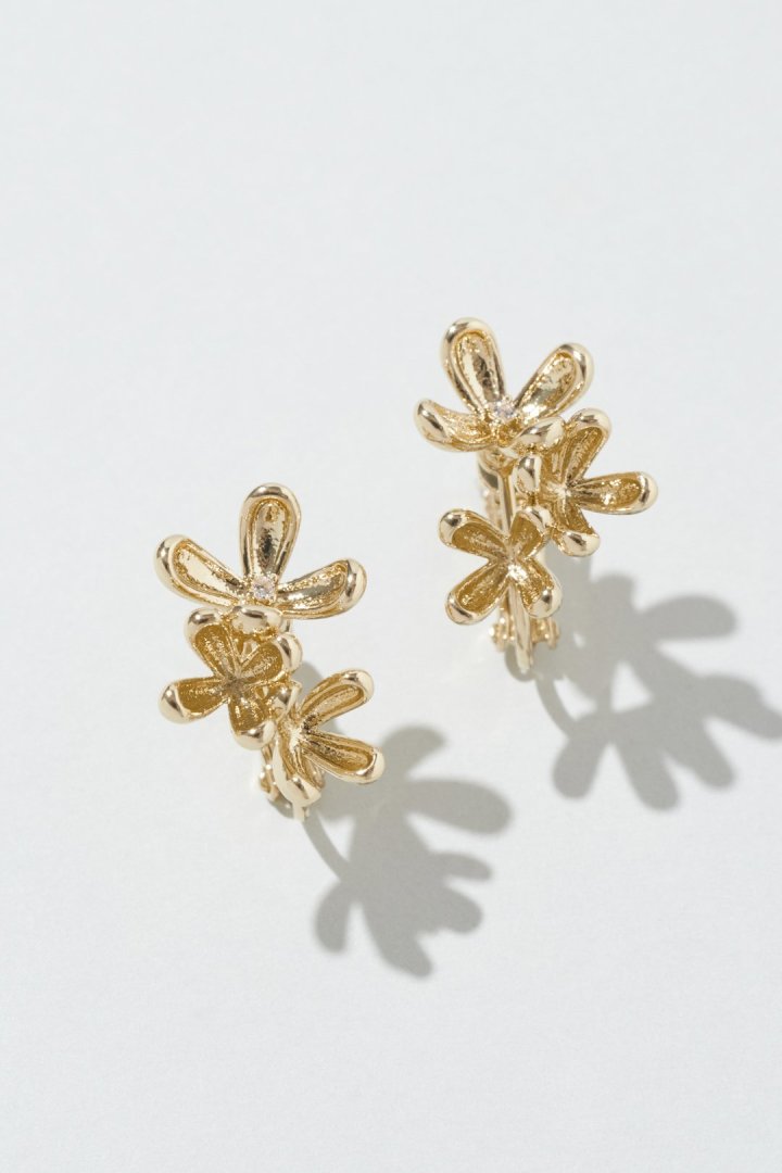 華奢なフラワーモチーフが3つ並んだ、女性らしく上品なイヤリング。