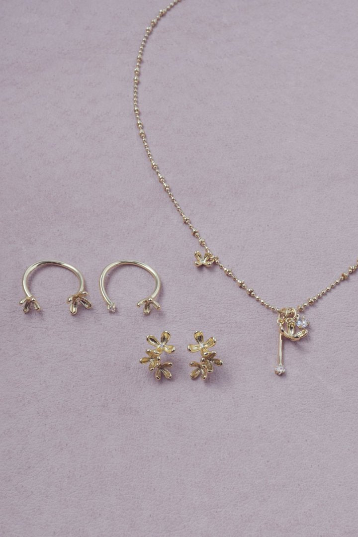 モチーフにあしらわれたキュービックジルコニアがさりげないアクセントに。
