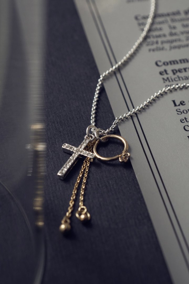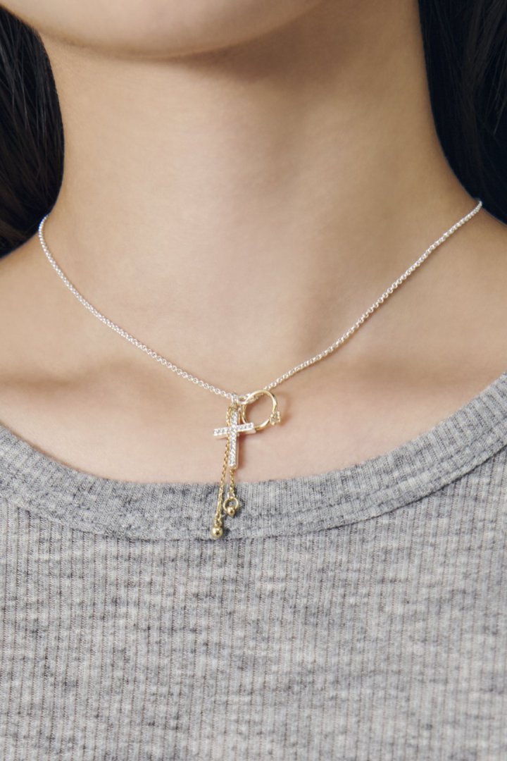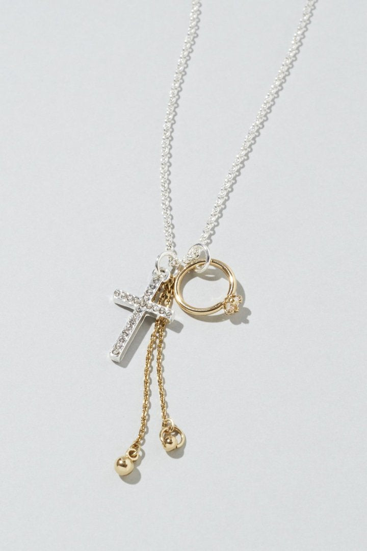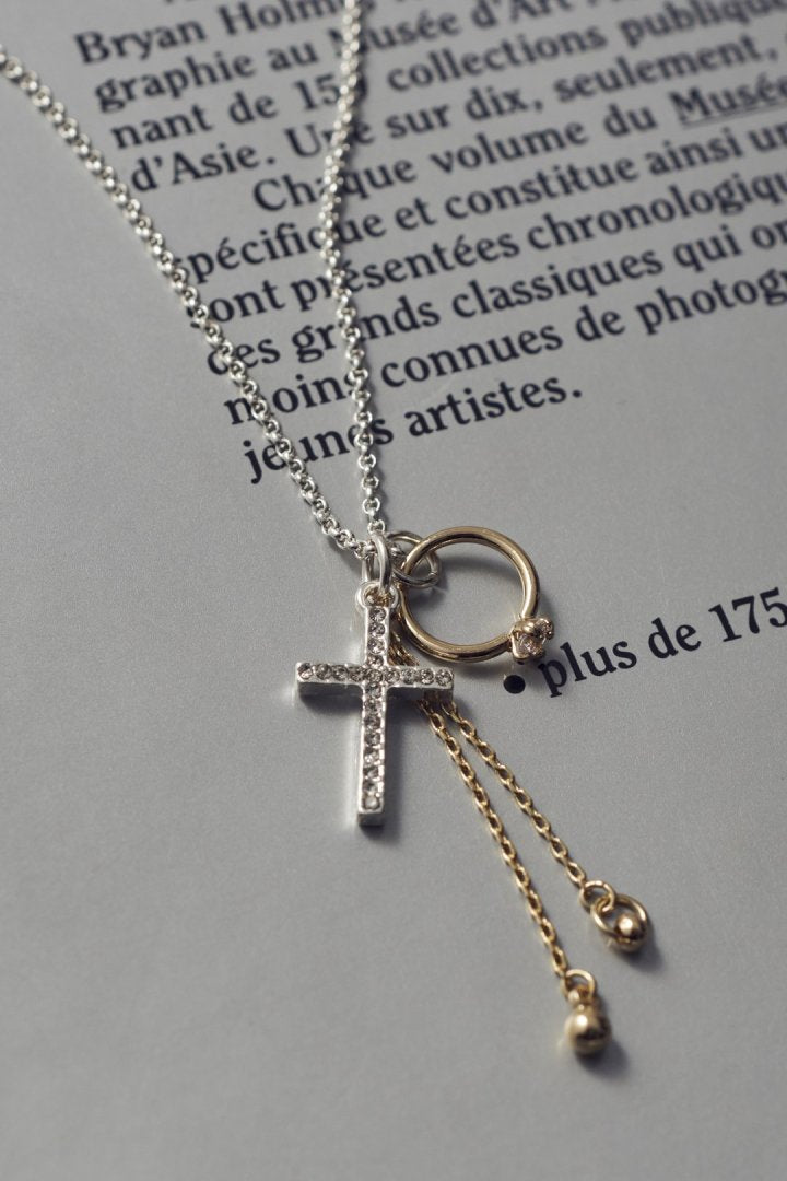 ・小さく揺れるクロスモチーフのチャームが目を惹くネックレス