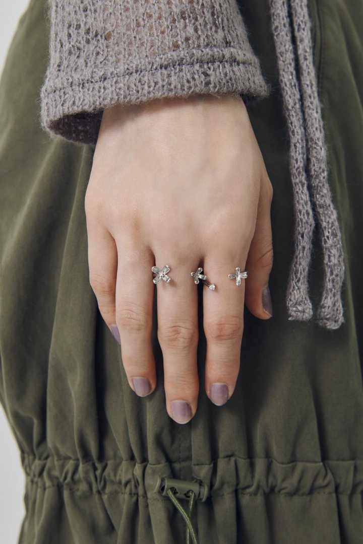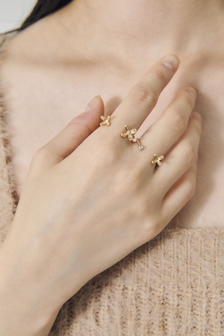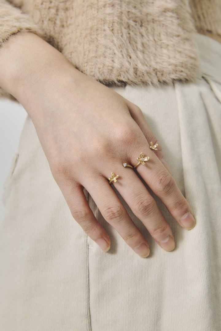 立体的な花びらが印象的な、上品なセットリング