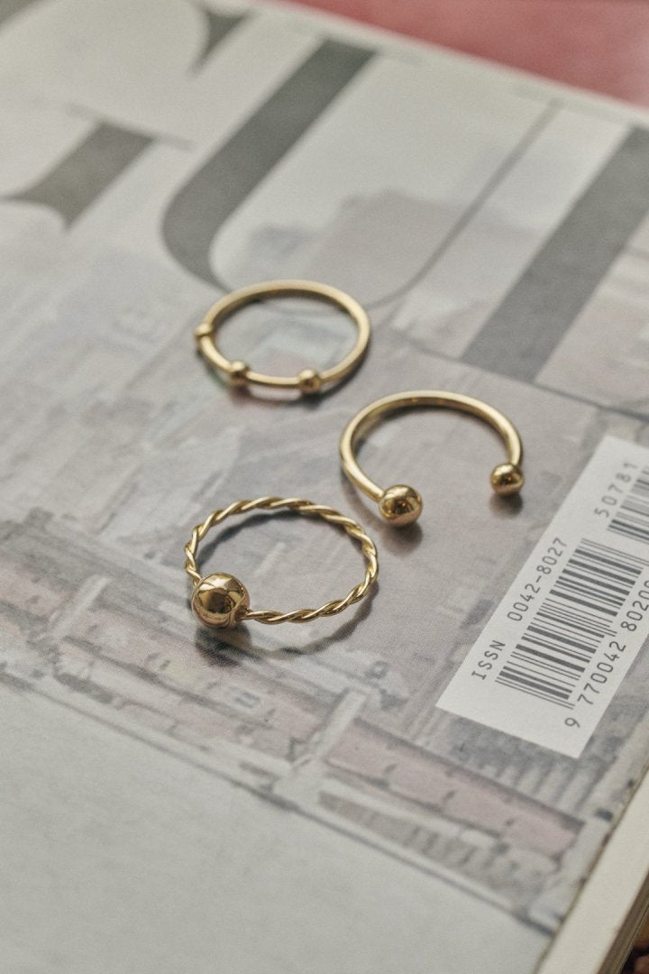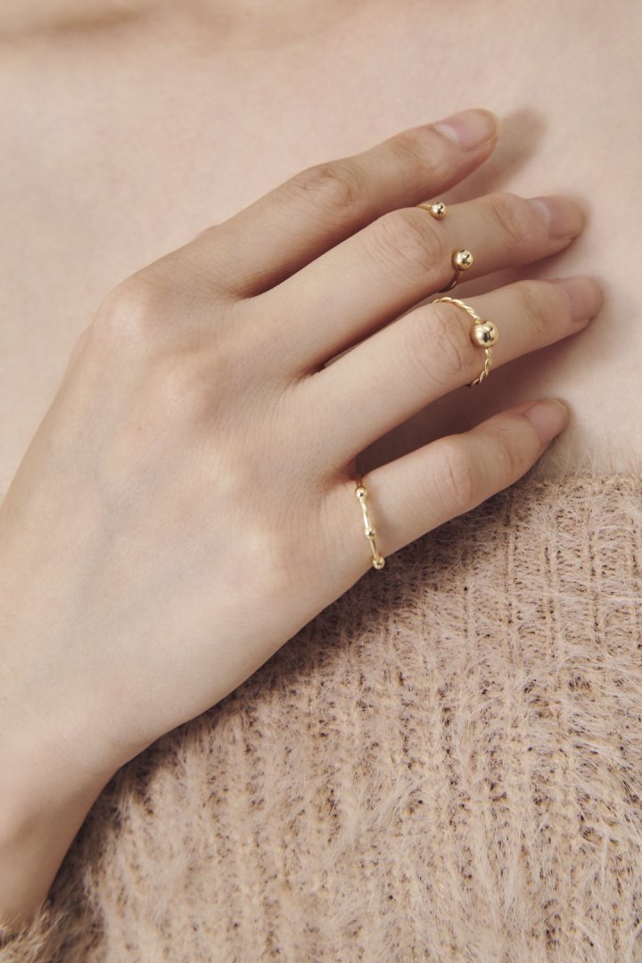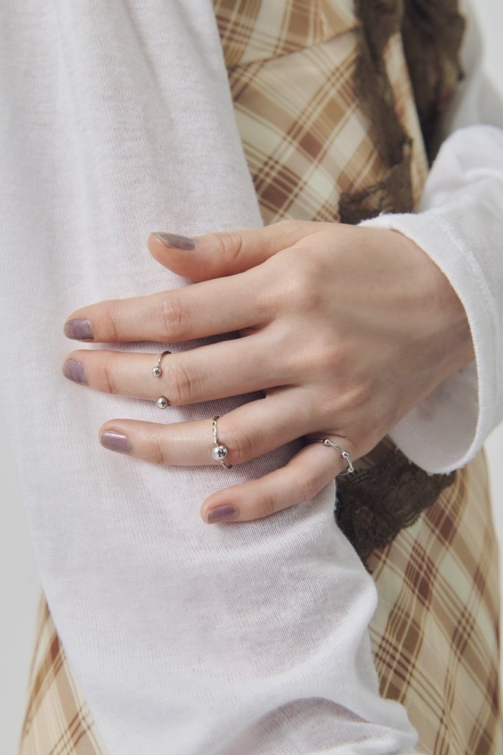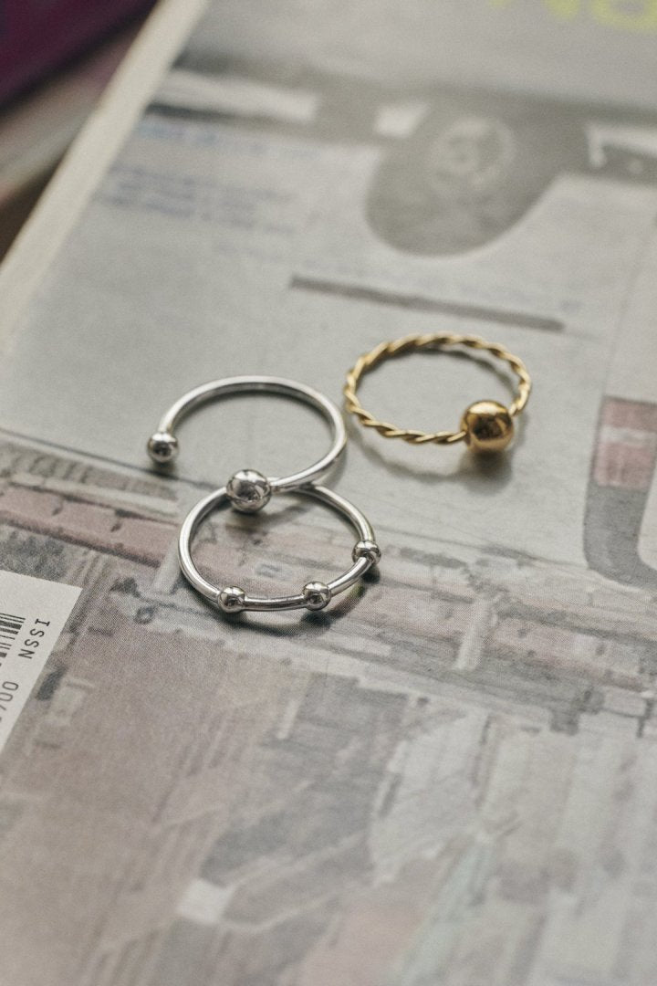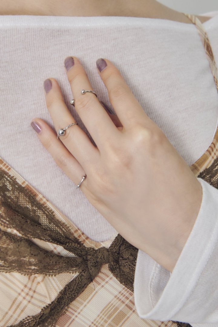 メタルボールがあしらわれたピンキーリングが3本セットに。