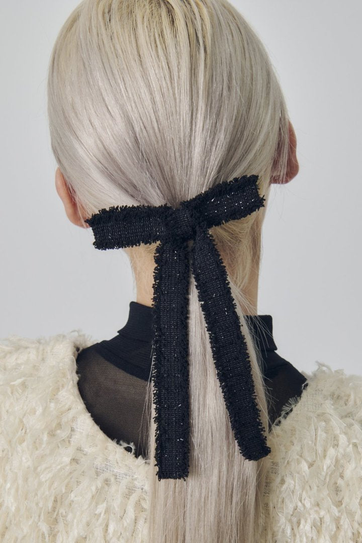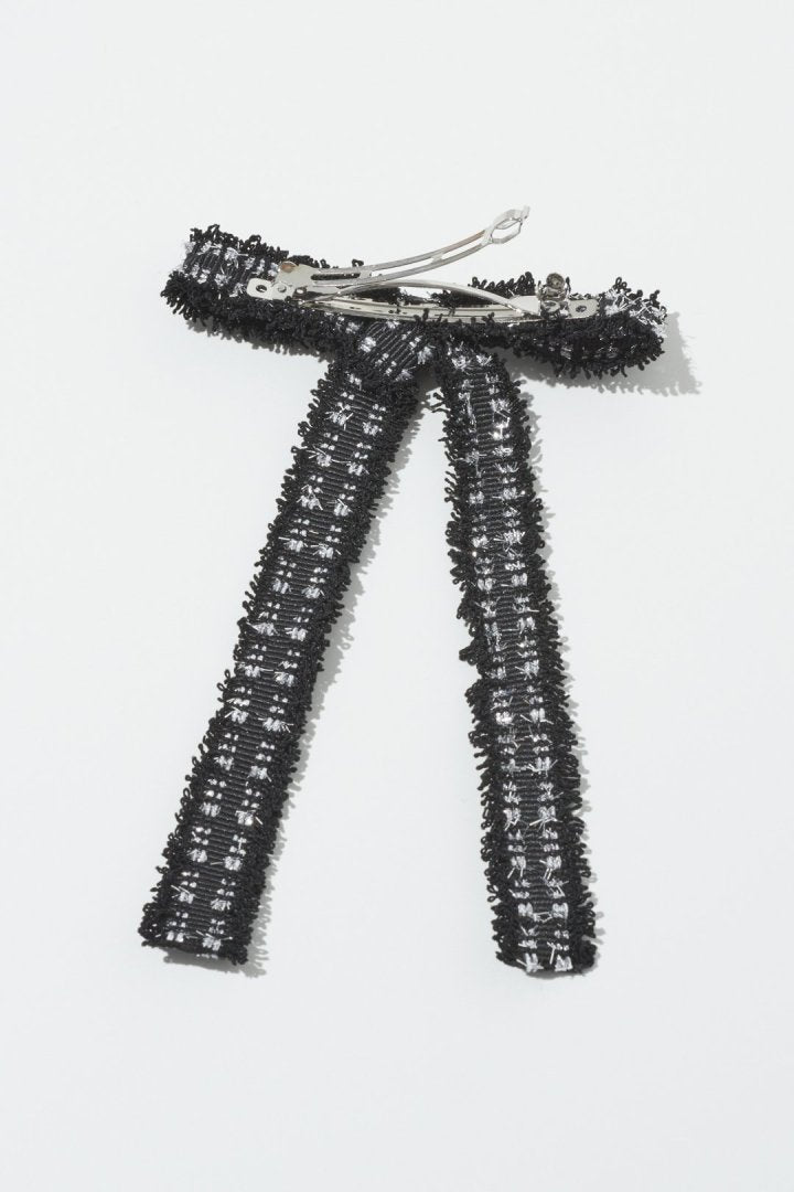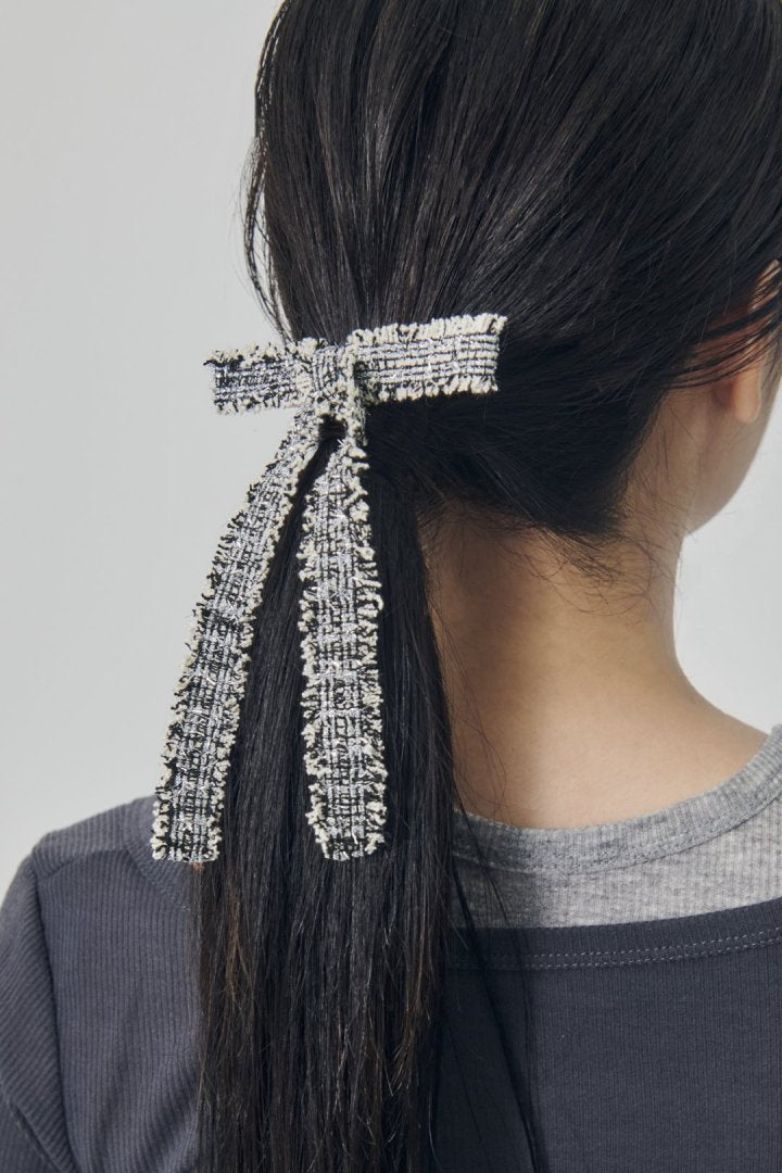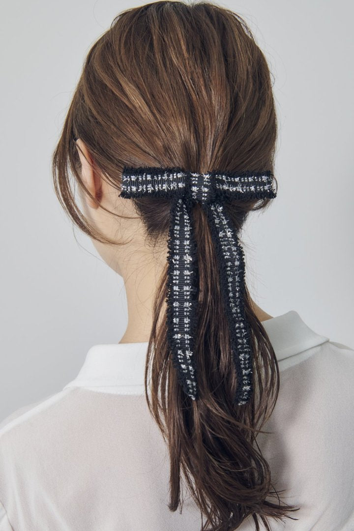 ツイード生地のリボンをバレッタに仕上げたデザイン。