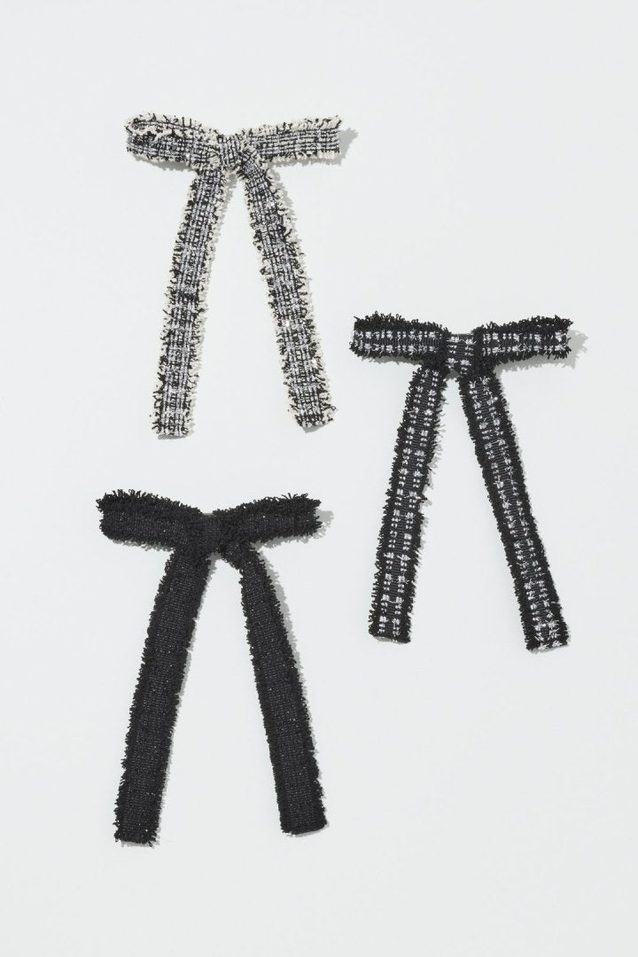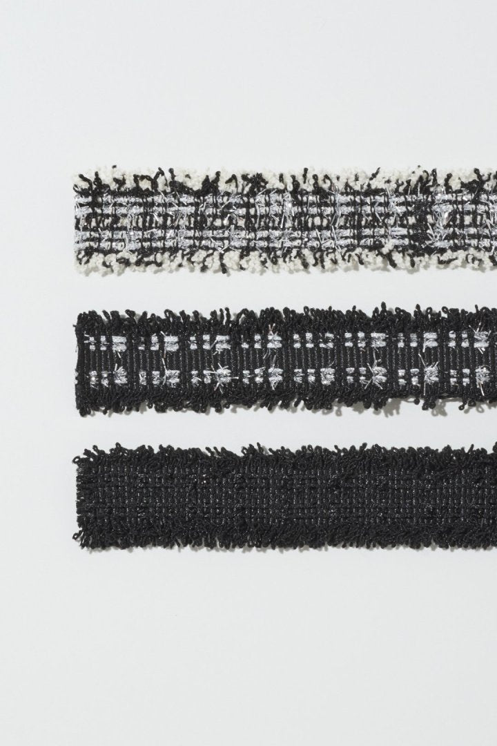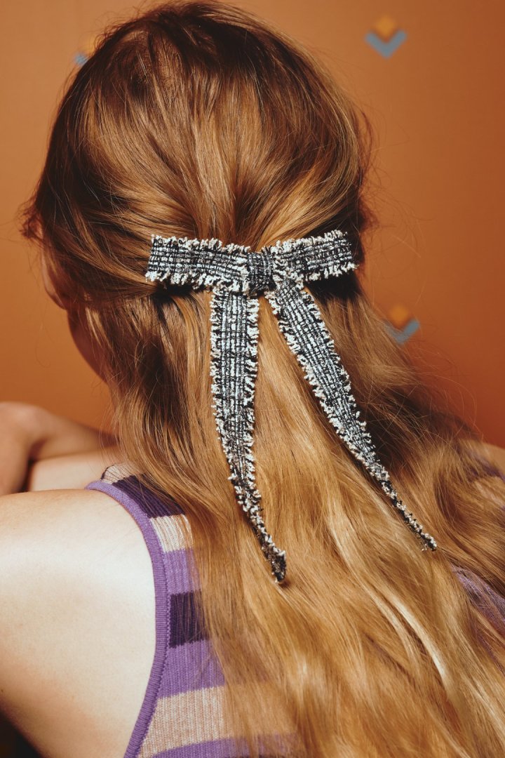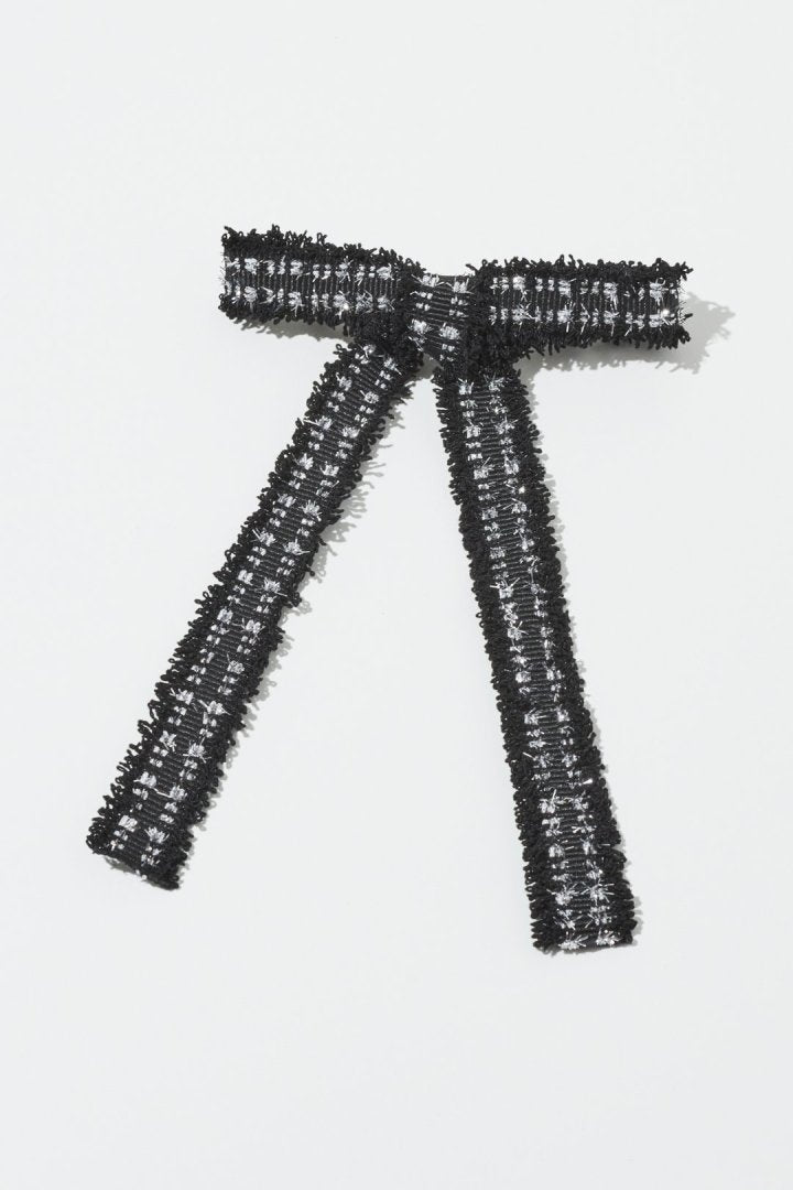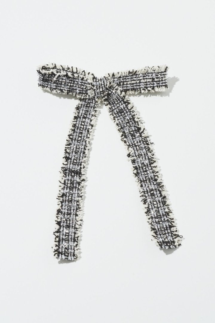 ツイード生地のリボンをバレッタに仕上げたデザイン。