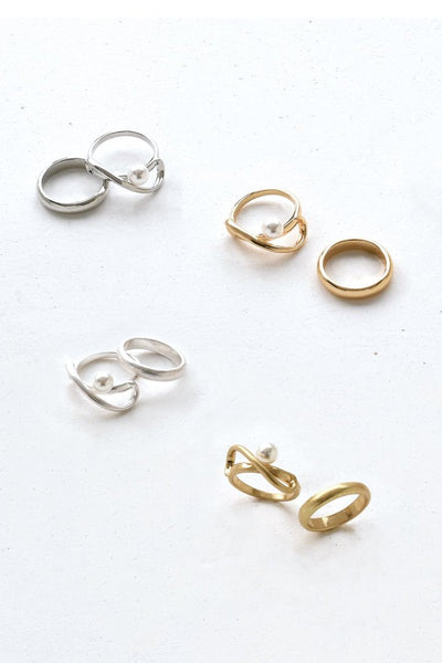 キュービックジルコニア × メタル パール 3PCS セット イヤーカフ