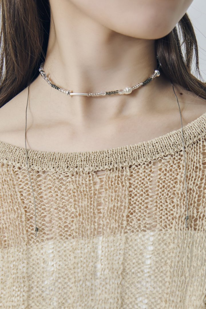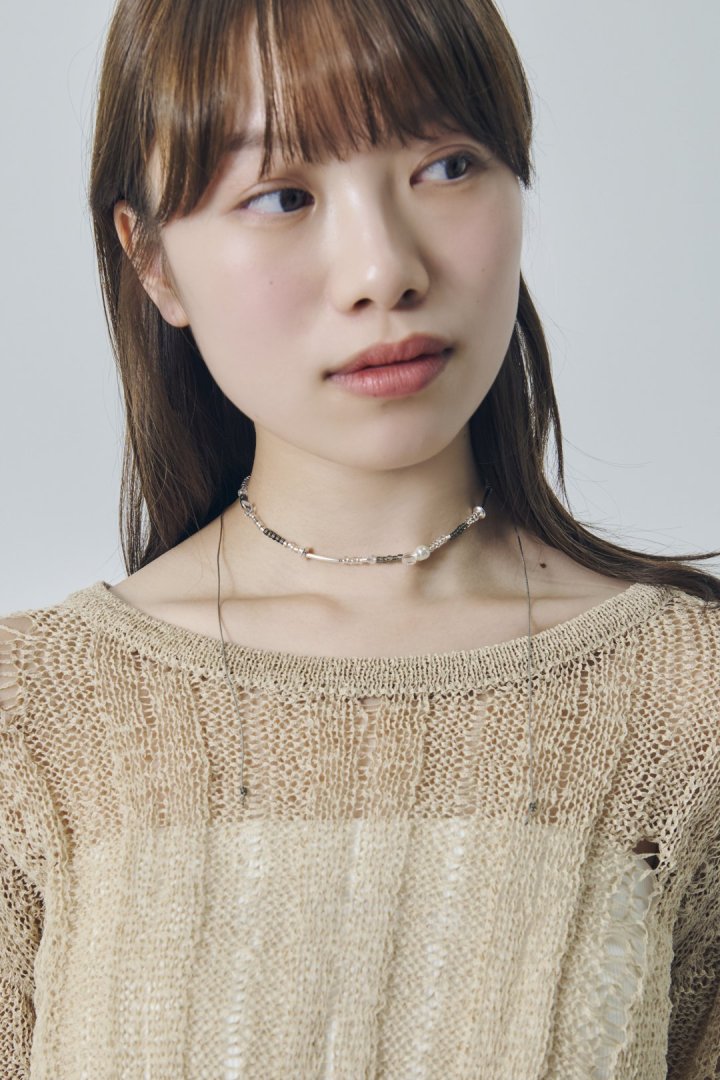 細めのコードを組み合わせたネックレス。