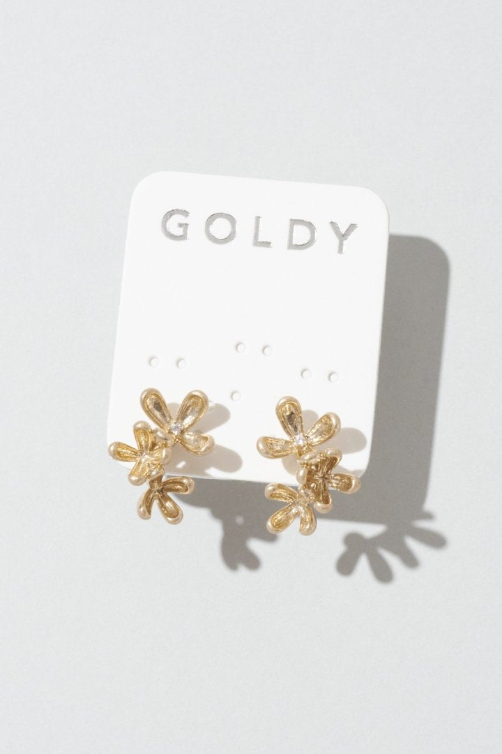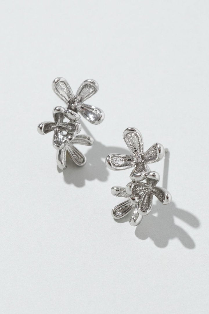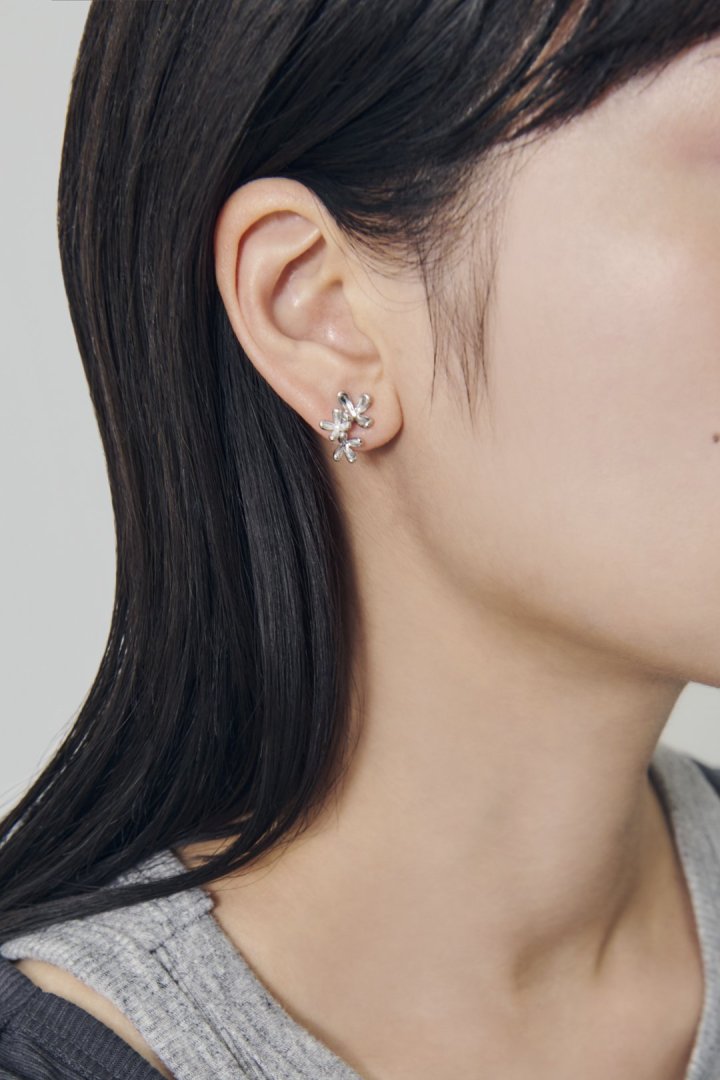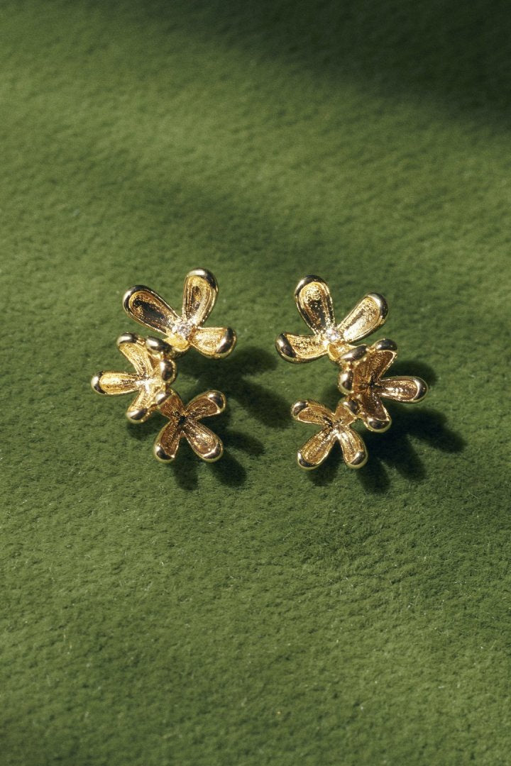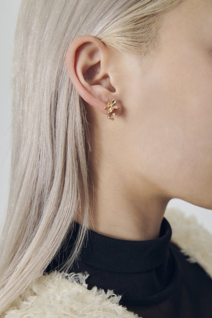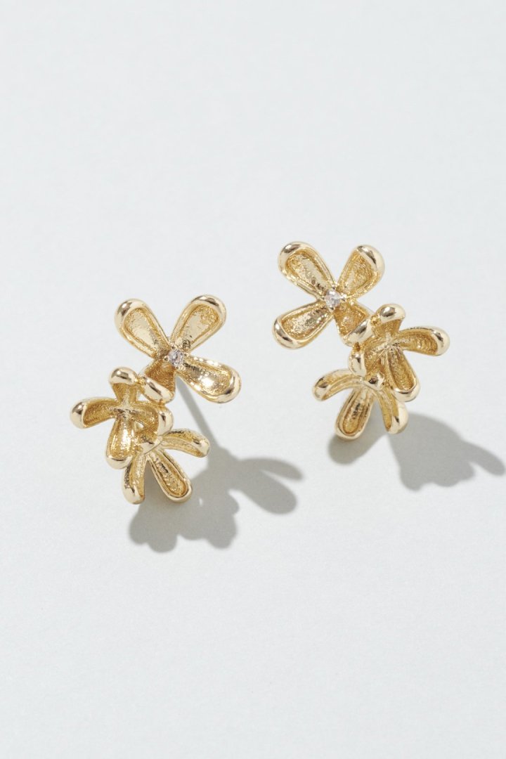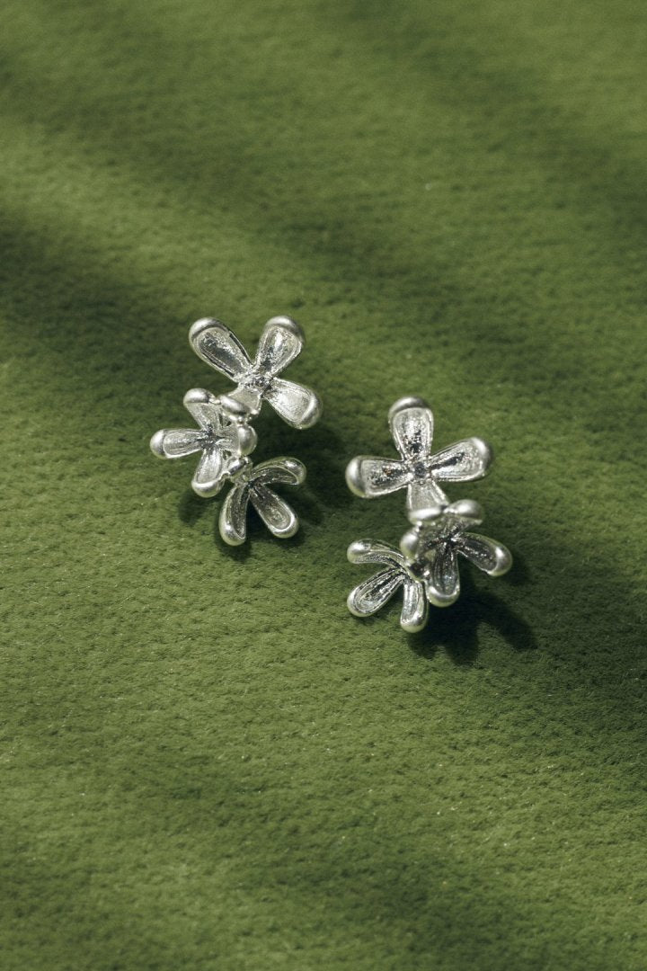 華奢なフラワーモチーフが3つ並んだ、女性らしく上品なピアス。