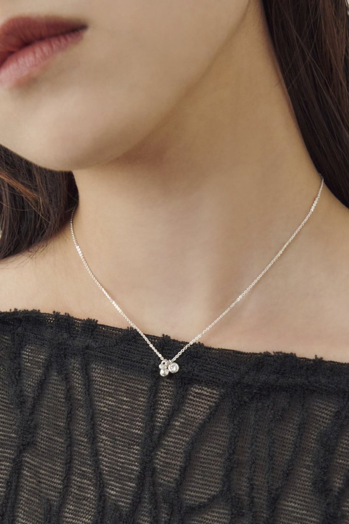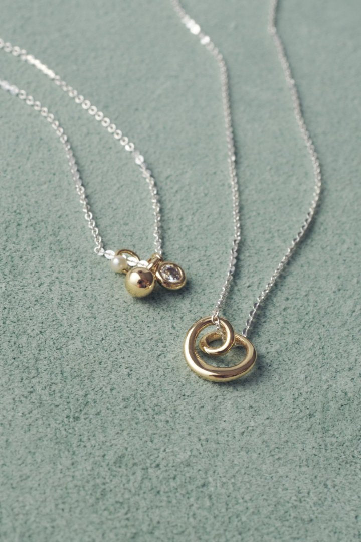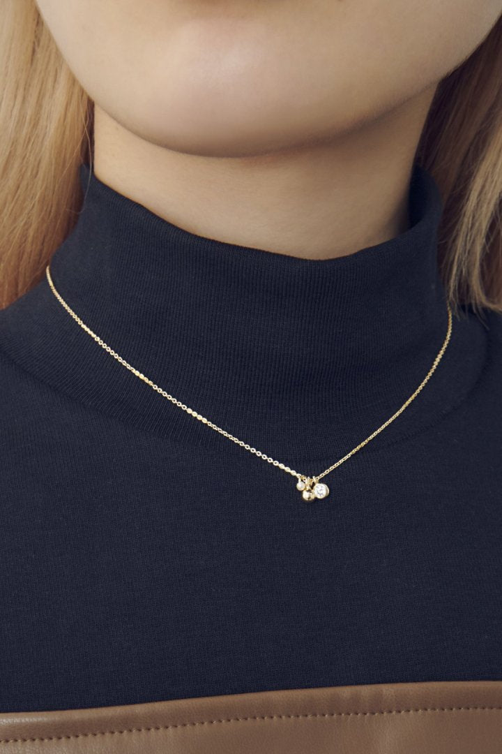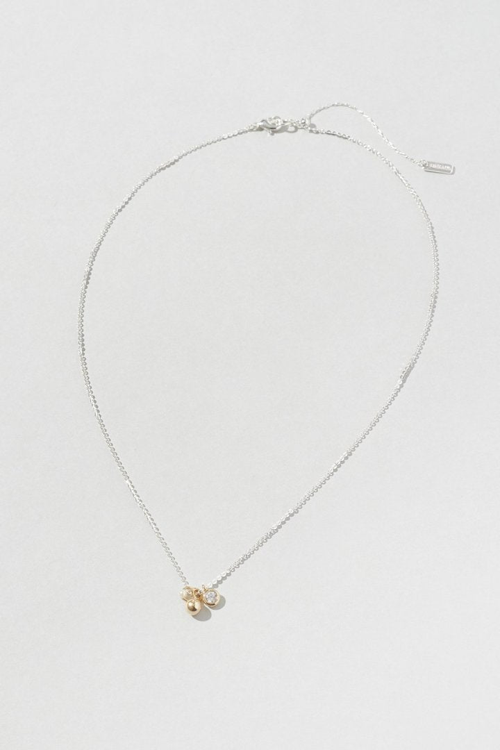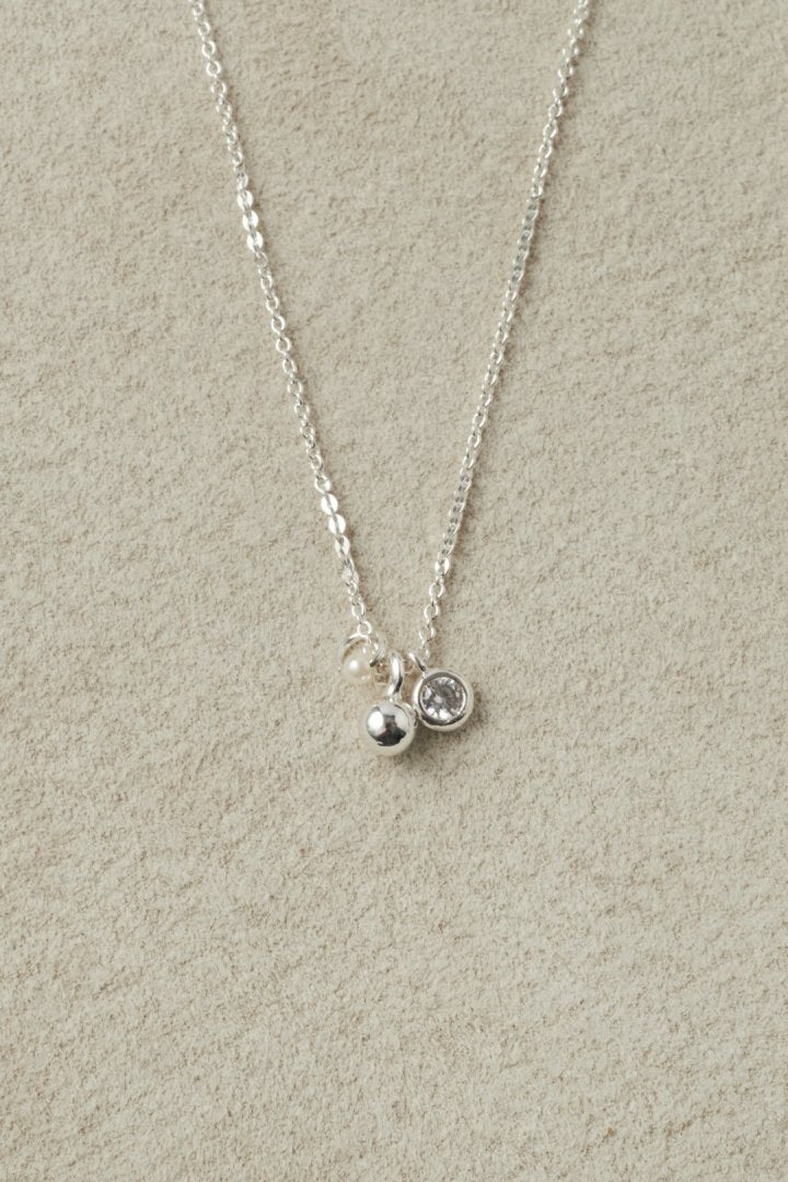 パールやビジュー、メタルボールを華奢なチェーンに通して組み合わせたネックレス。