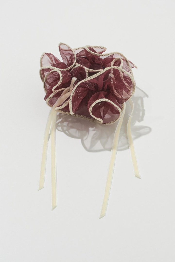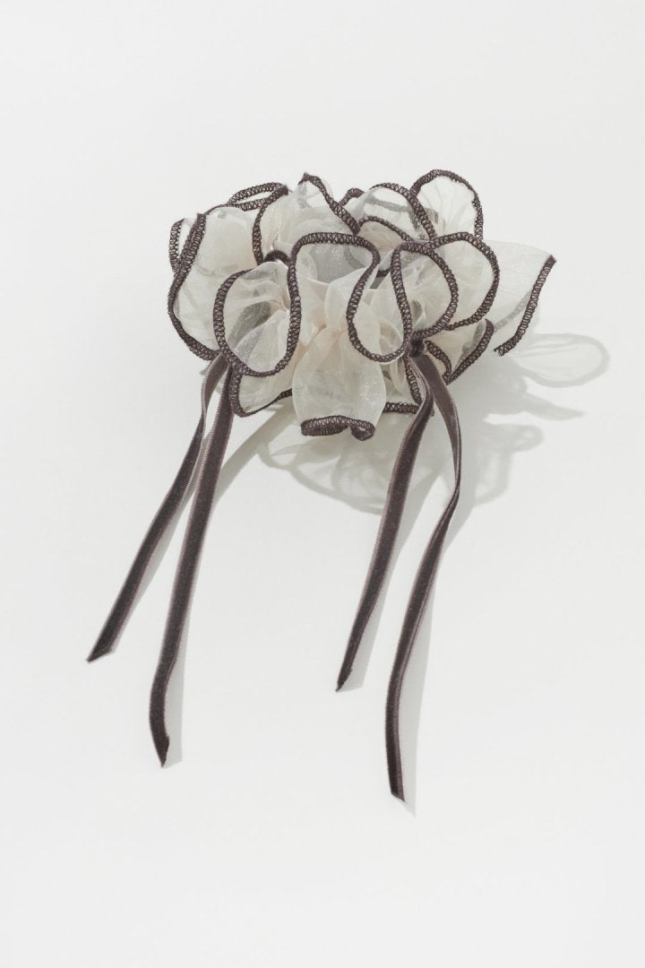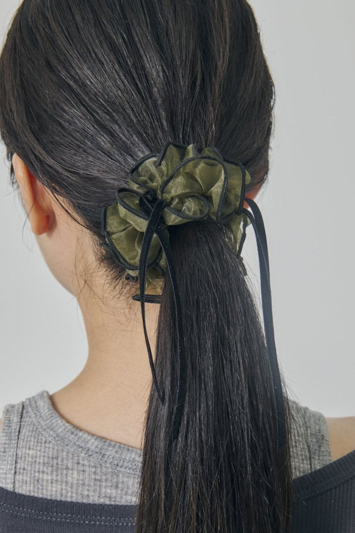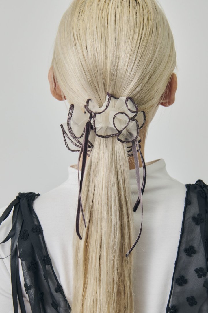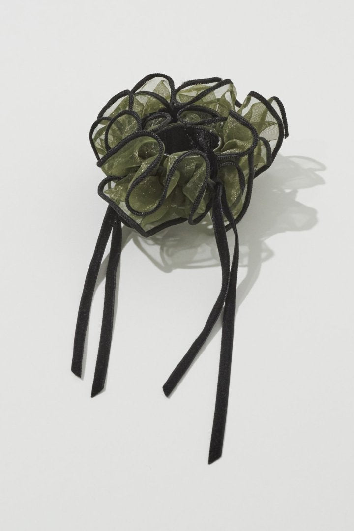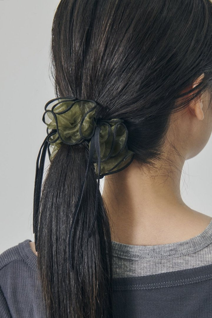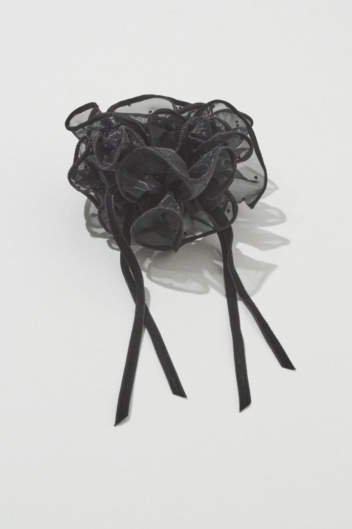 【GOLDYオリジナル】GOLDYオリジナルデザインのポニーフック・結び目を隠せるワンタッチ式ヘアカフ・シアー×華奢なリボンが大人可愛い・普段使いはもちろん、結婚式などオケージョンシーンや、パーティーシーンのヘアアレンジにも◎カチッとなるまで広げて伸ばし、まとめ髪のヘアゴムにフックを掛けるだけで簡単に着用できるポニーフック。