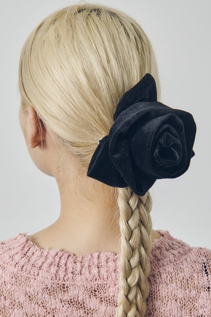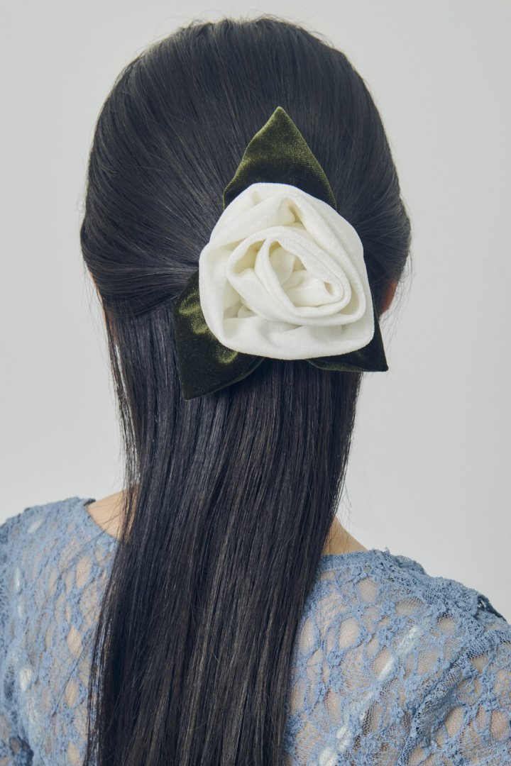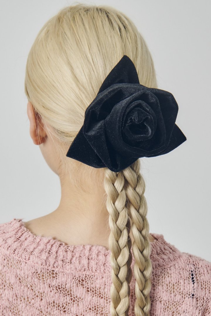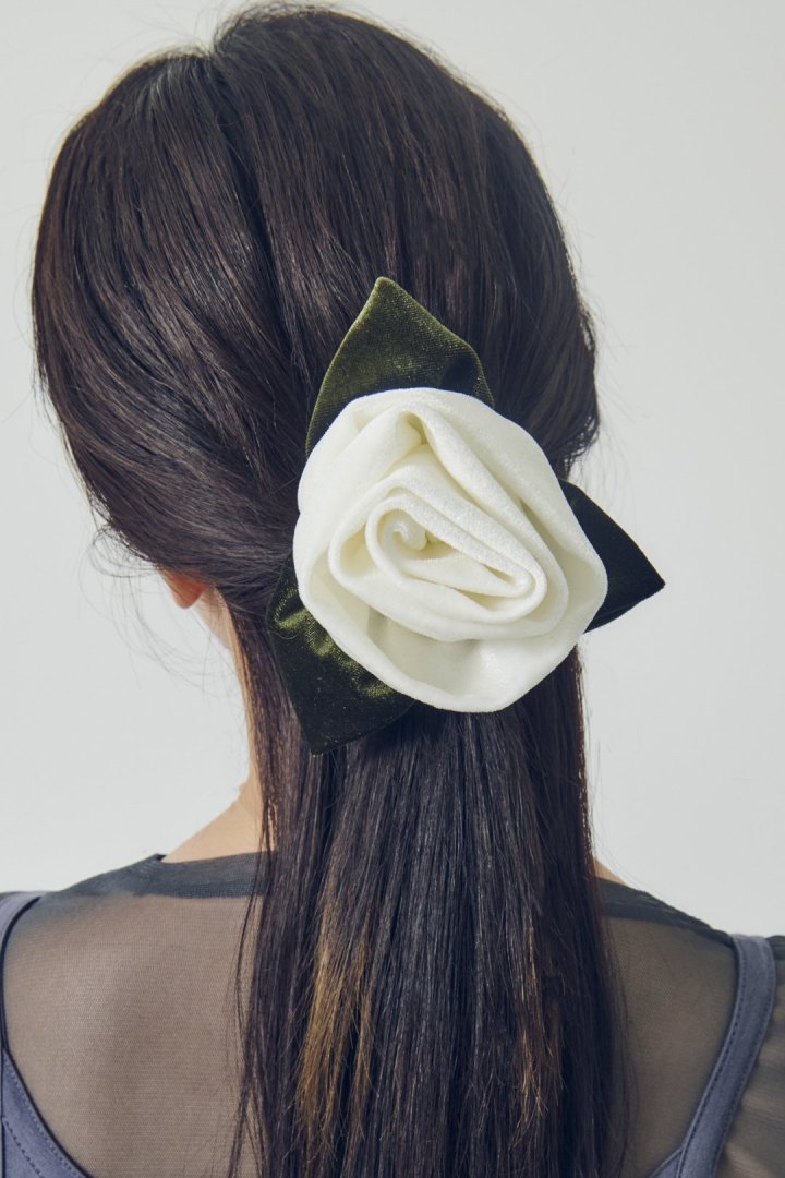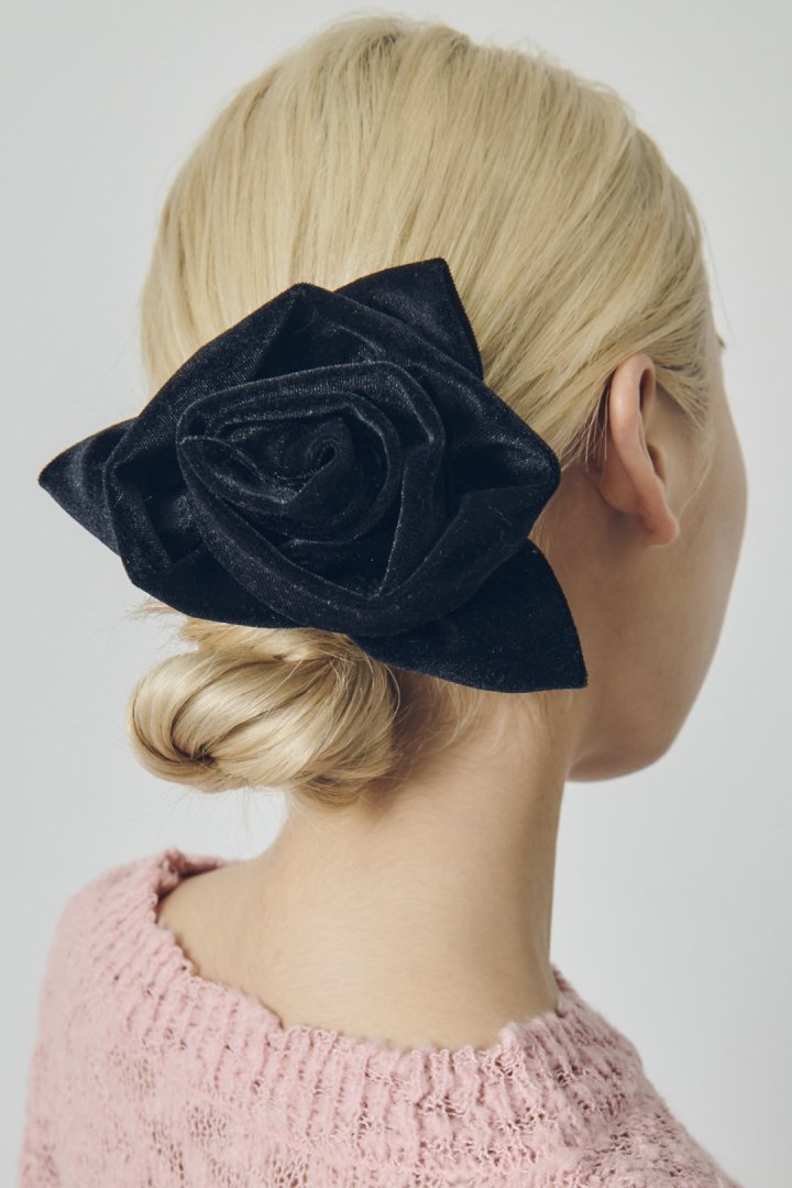 ベロア生地でボリューミーに仕上げた、ローズモチーフのバレッタ。