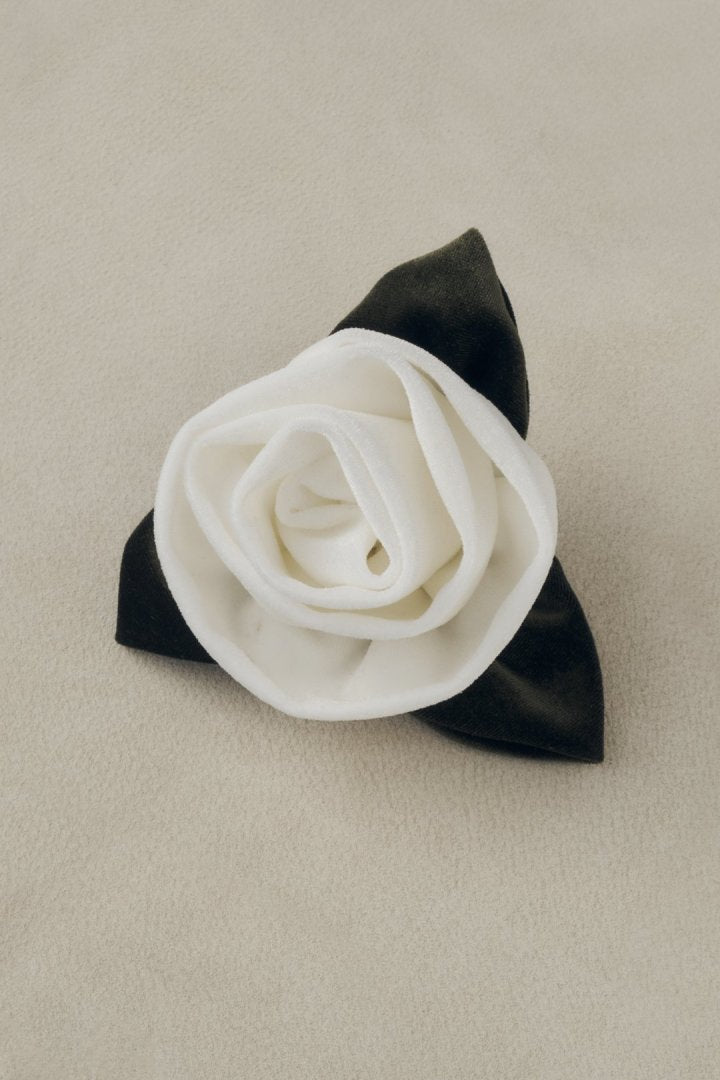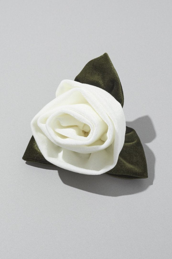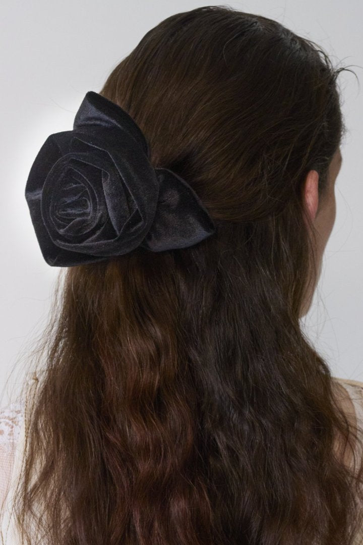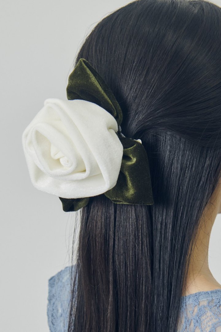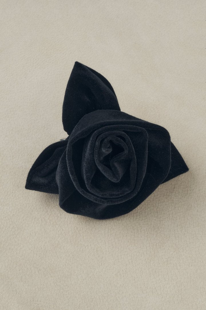 ベロア生地でボリューミーに仕上げた、ローズモチーフのバレッタ。