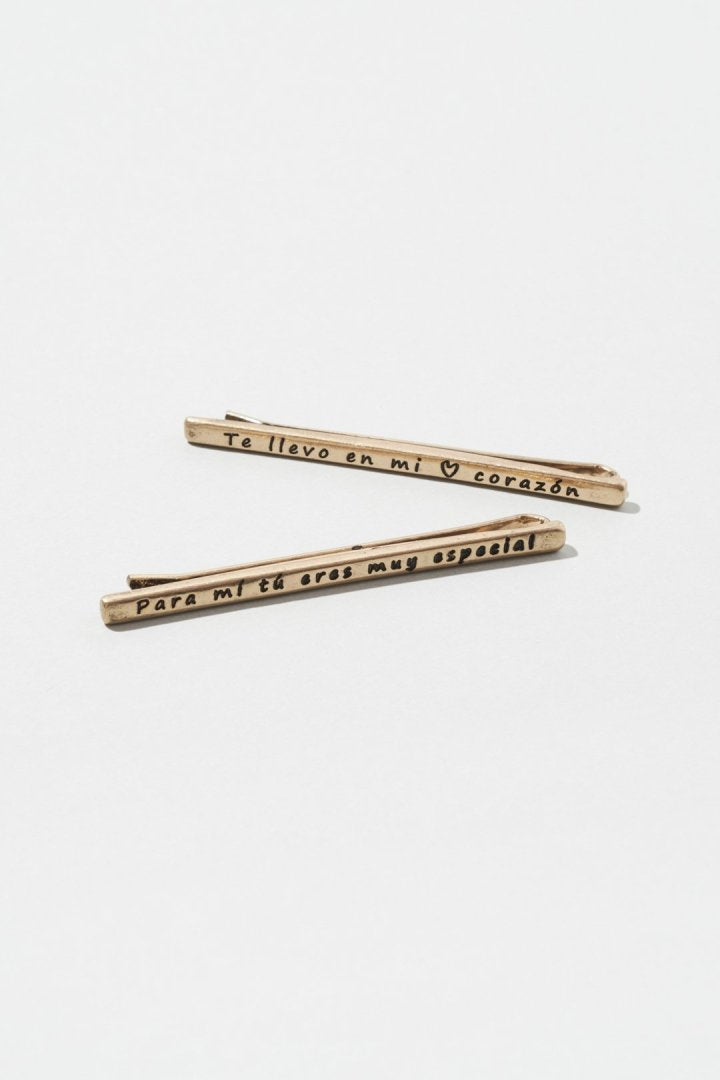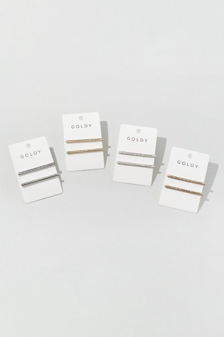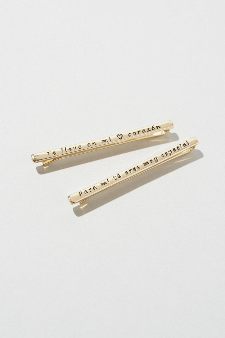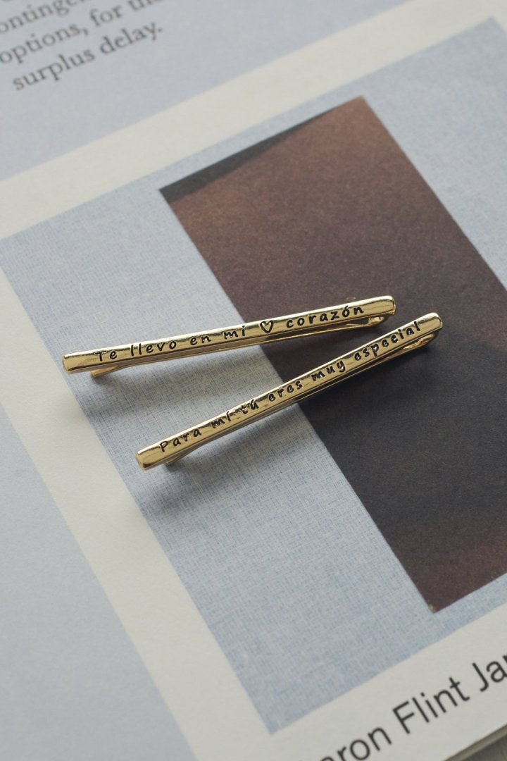 シンプルでトレンド感のある、刻印入りのヘアピン。