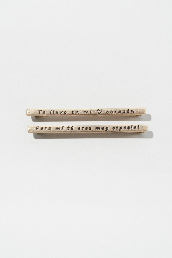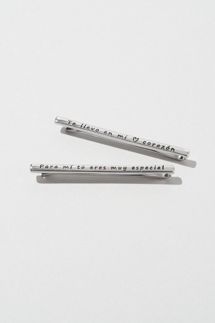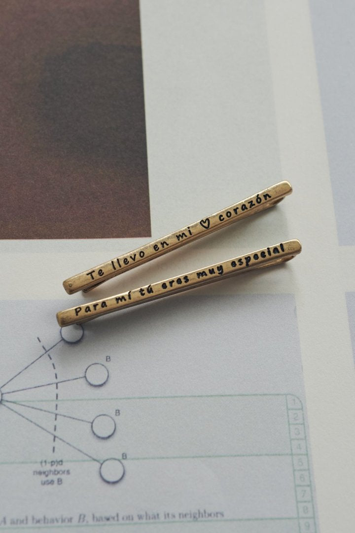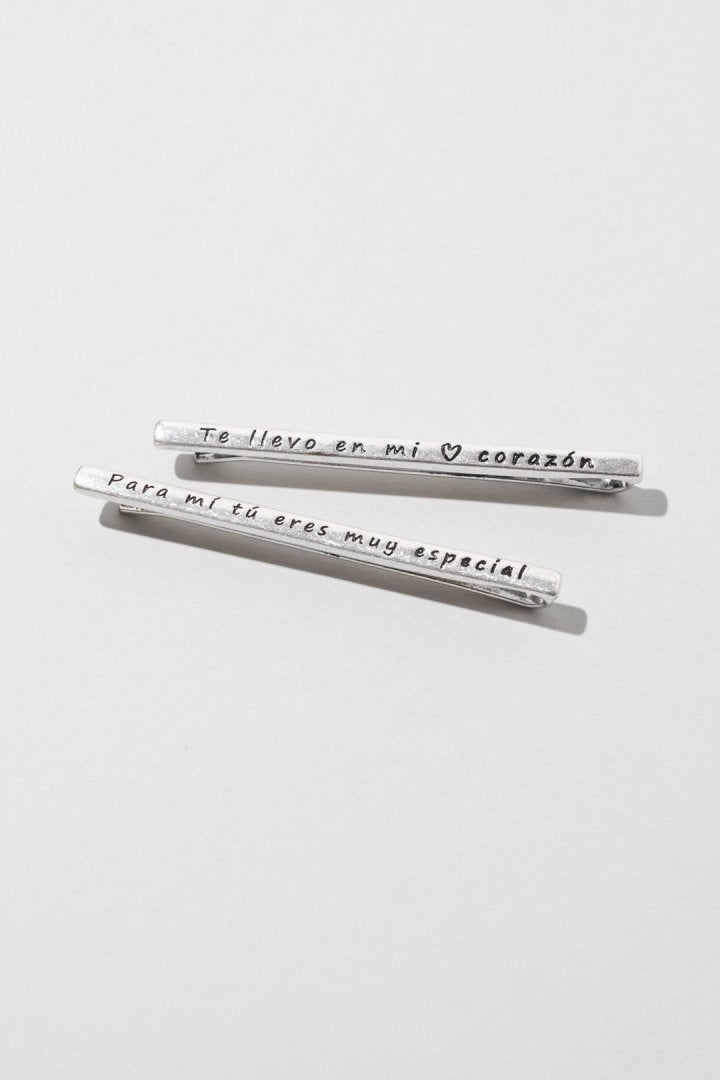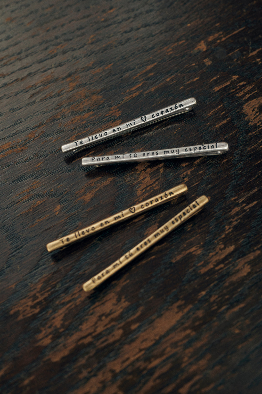 シンプルでトレンド感のある、刻印入りのヘアピン。