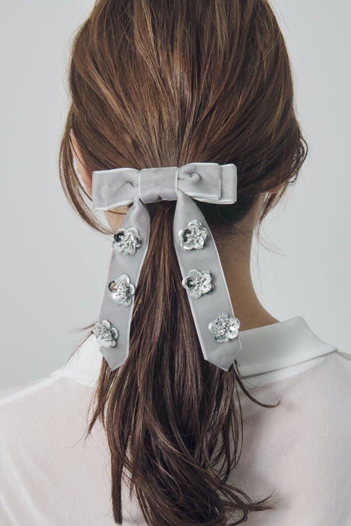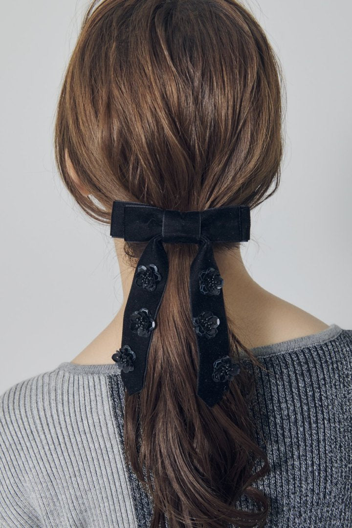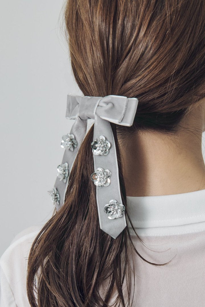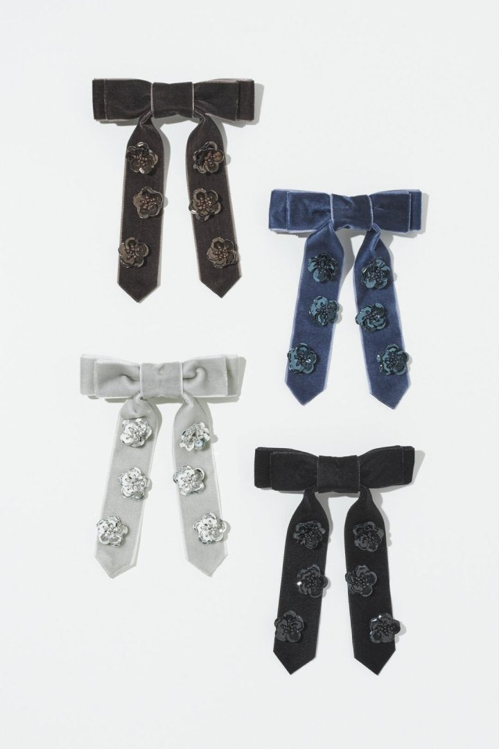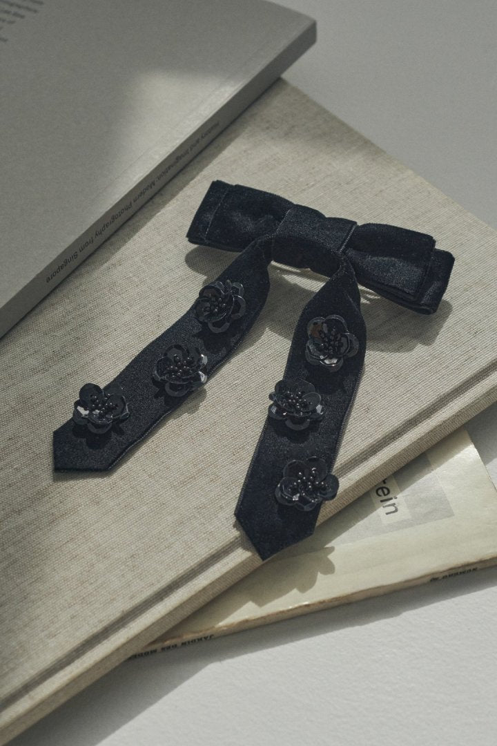 【GOLDYオリジナル】GOLDYオリジナルデザインのバレッタ・スパンコールをあしらったフラワーモチーフ・女性らしく華やかな後ろ姿に・普段使いはもちろん、結婚式などオケージョンシーンやパーティーシーンのヘアアレンジにも◎ベロアのリボンにフラワーモチーフが散りばめられた存在感のあるデザイン。つけるだけでトレンド感があり、大人可愛く今らしいヘアアレンジをお楽しみいただけます。※お使いのモニター環境により、実際の色味と異なって見える場合がございます。※生産時期により色味が多少異なる場合がございます。※モチーフはハンドメイドの為1つ1つの形が多少異なる場合がございます。