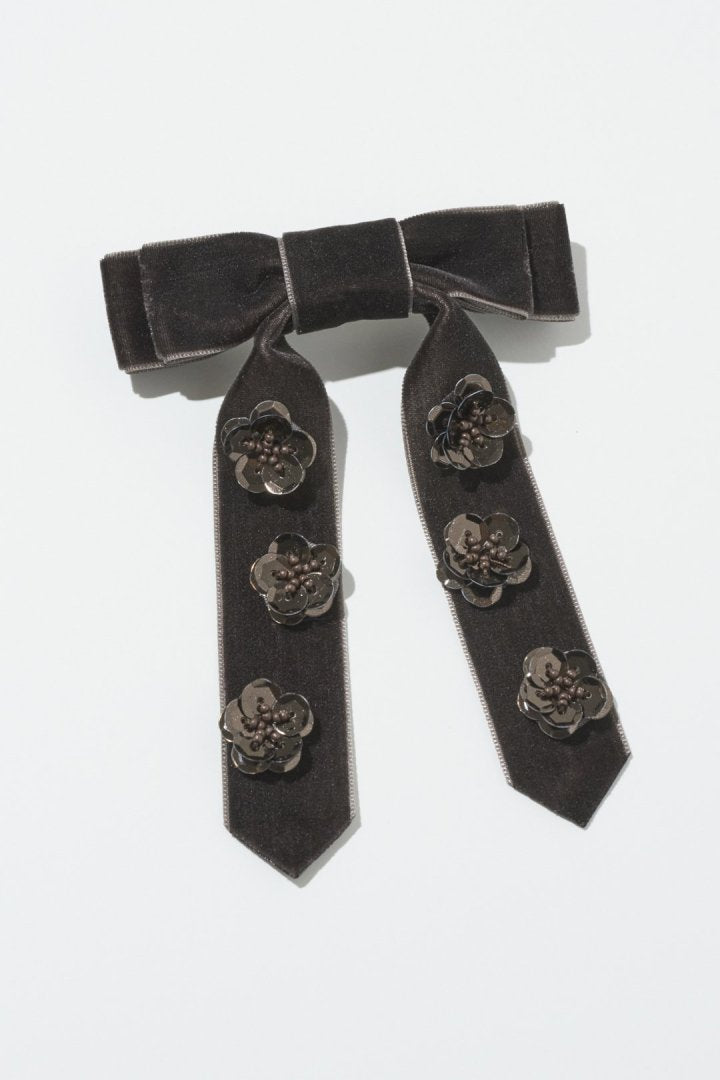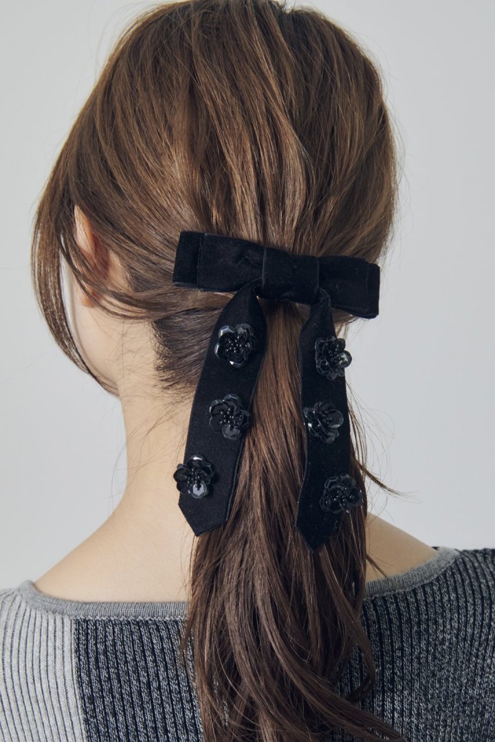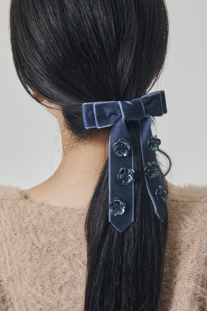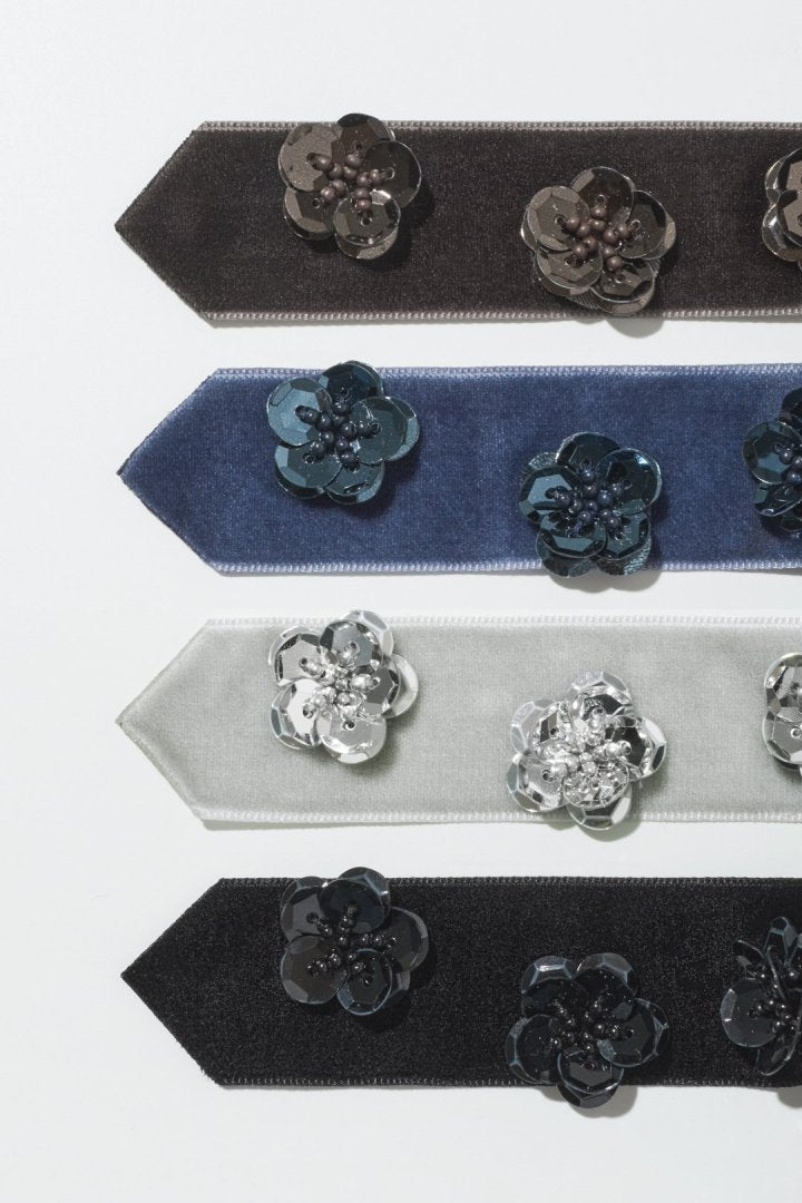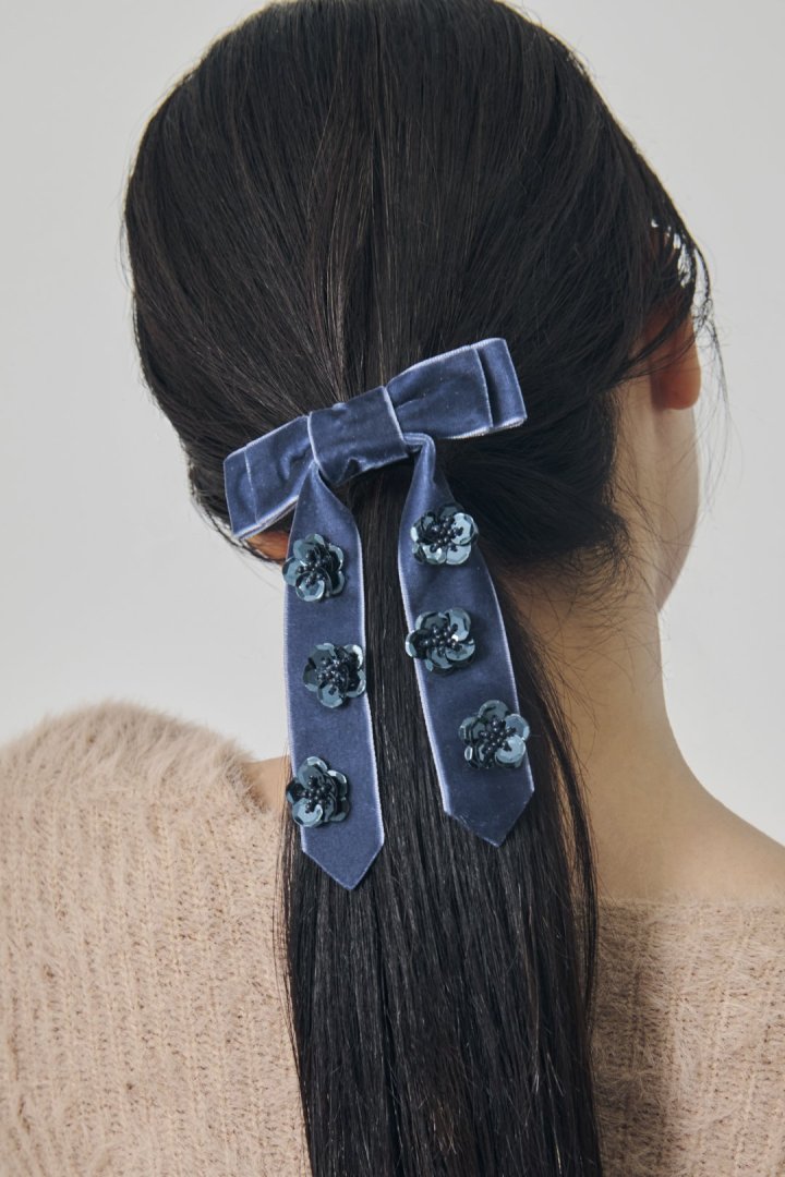 【GOLDYオリジナル】GOLDYオリジナルデザインのバレッタ・スパンコールをあしらったフラワーモチーフ・女性らしく華やかな後ろ姿に・普段使いはもちろん、結婚式などオケージョンシーンやパーティーシーンのヘアアレンジにも◎ベロアのリボンにフラワーモチーフが散りばめられた存在感のあるデザイン。つけるだけでトレンド感があり、大人可愛く今らしいヘアアレンジをお楽しみいただけます。※お使いのモニター環境により、実際の色味と異なって見える場合がございます。※生産時期により色味が多少異なる場合がございます。※モチーフはハンドメイドの為1つ1つの形が多少異なる場合がございます。