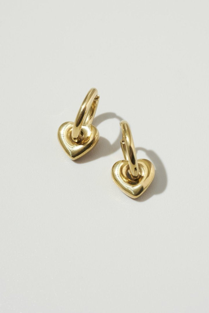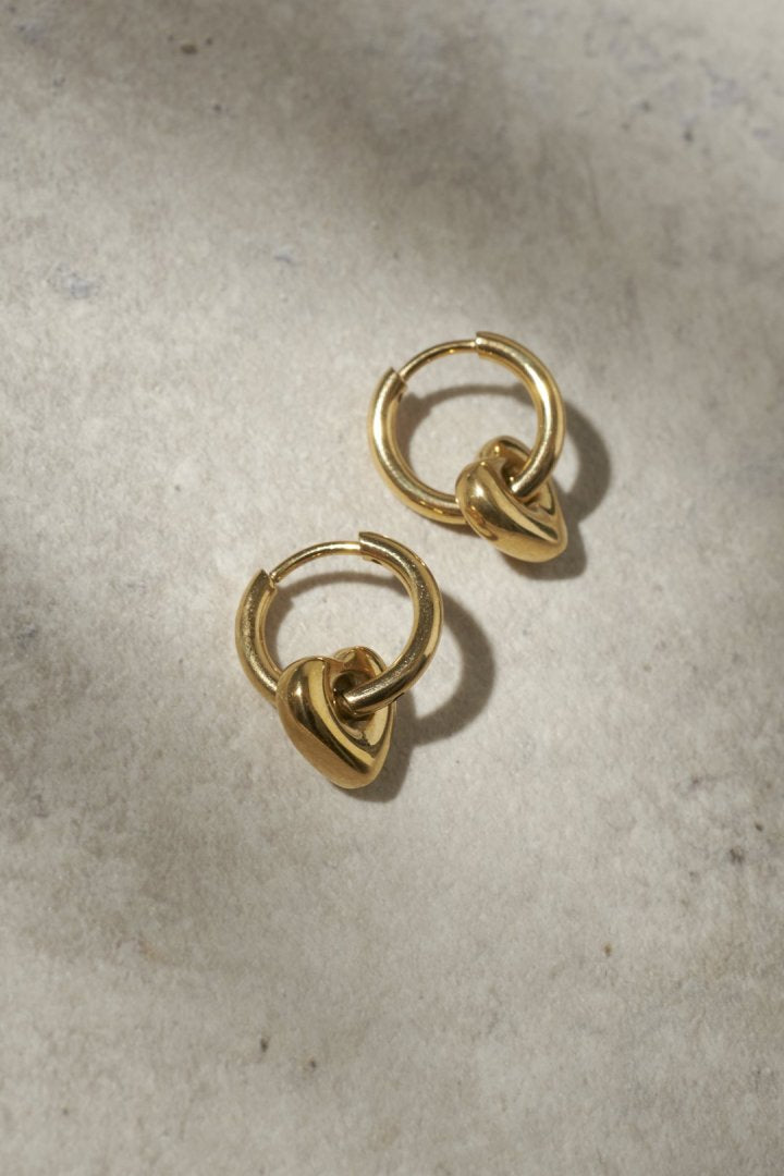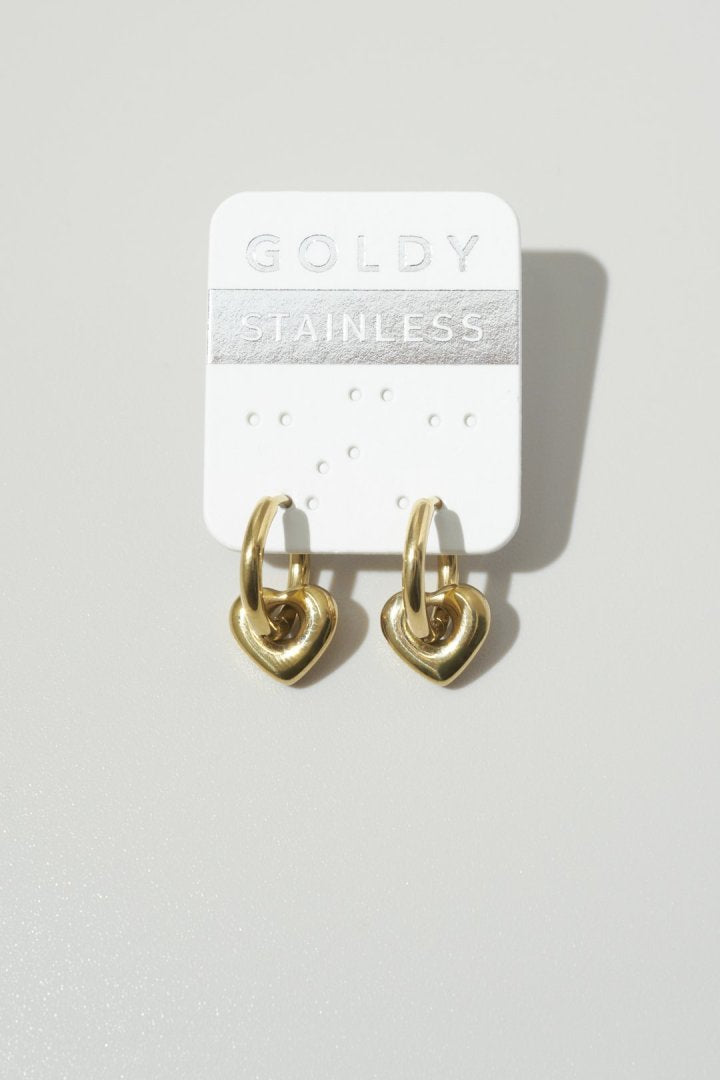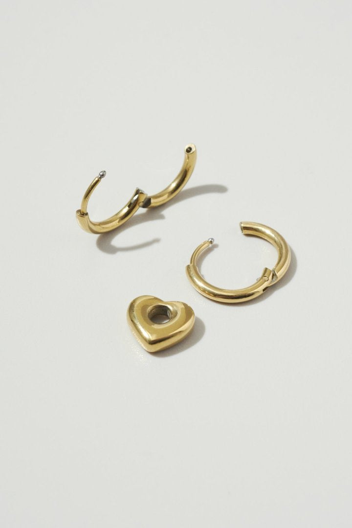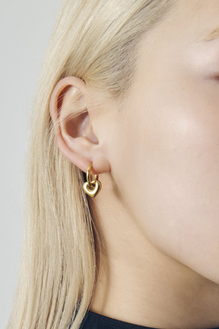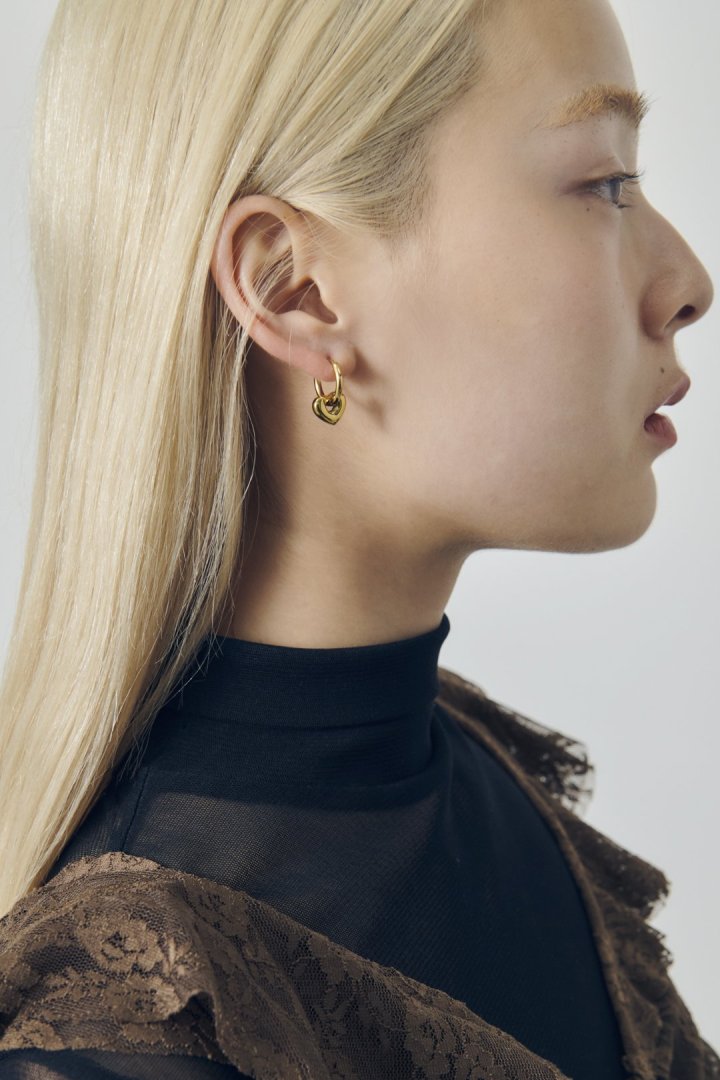 人気のハートモチーフを、フープに通して組み合わせたピアス。