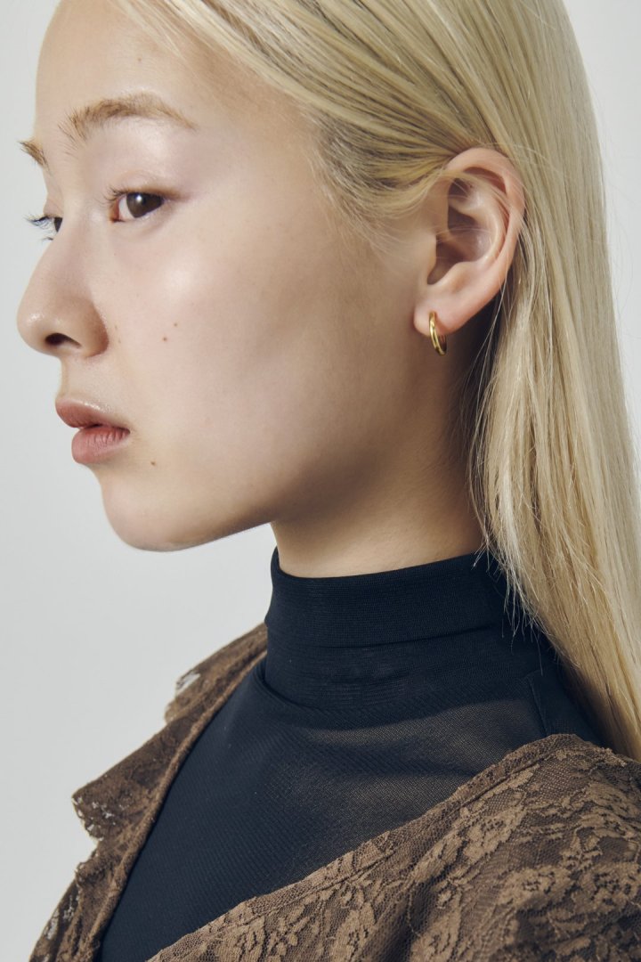 キャッチが無く、耳元を包み込むように装着するワンタッチピアスは、