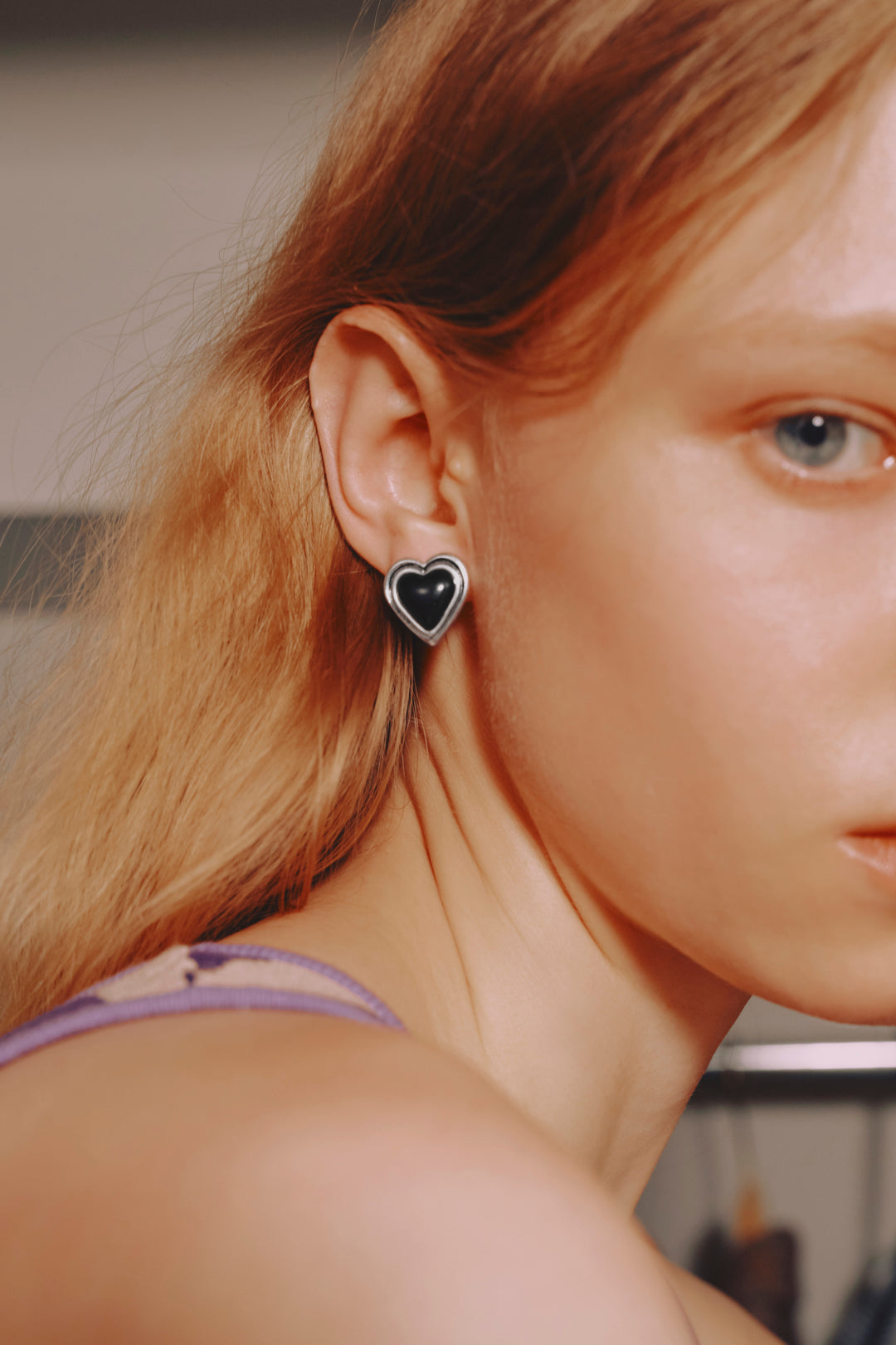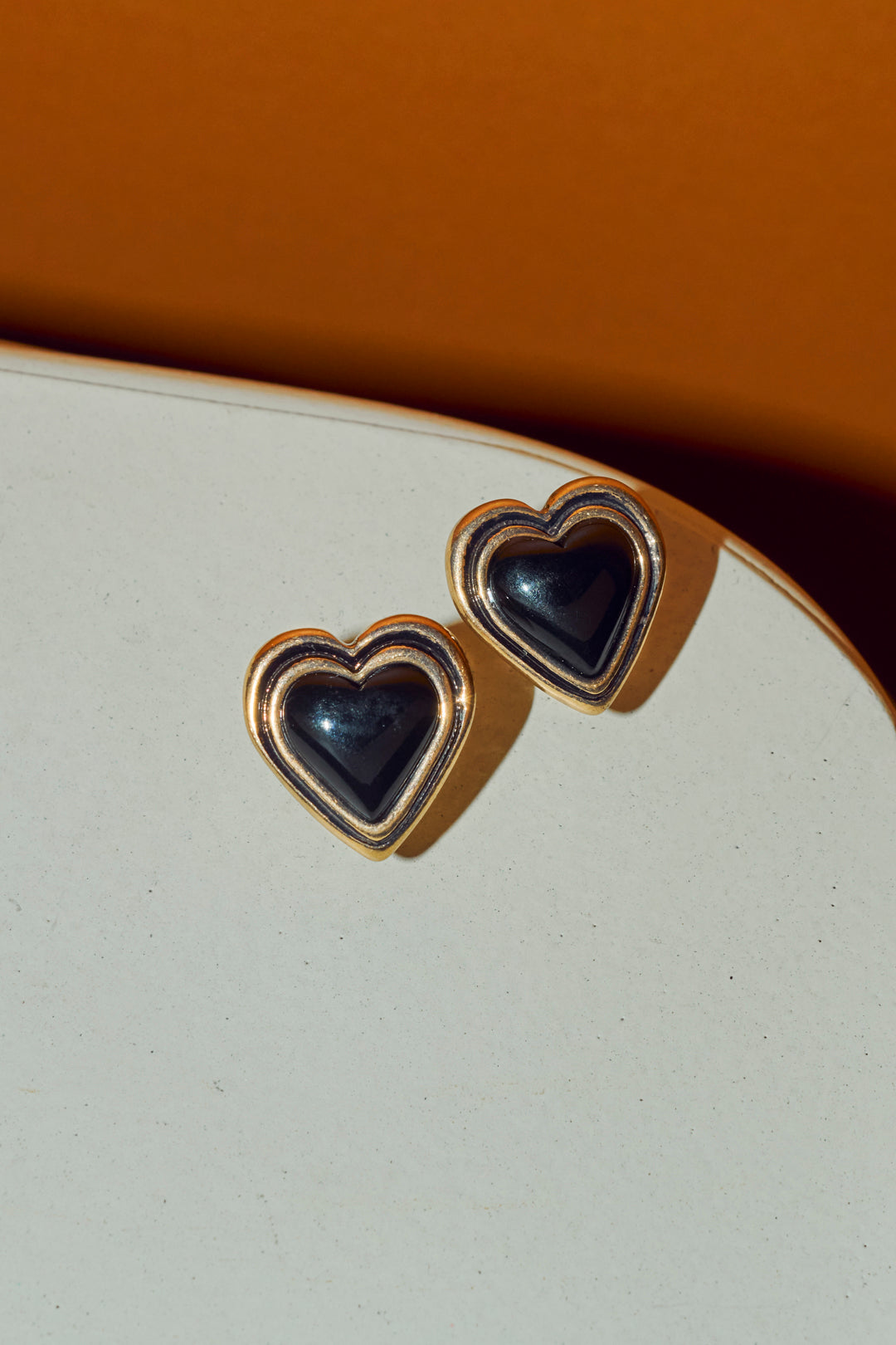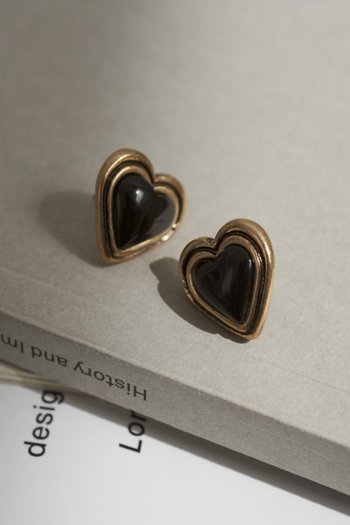 人気のハートモチーフをヴィンテージ風に仕上げたピアス。