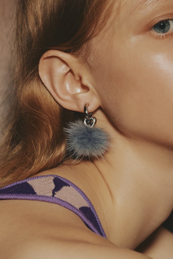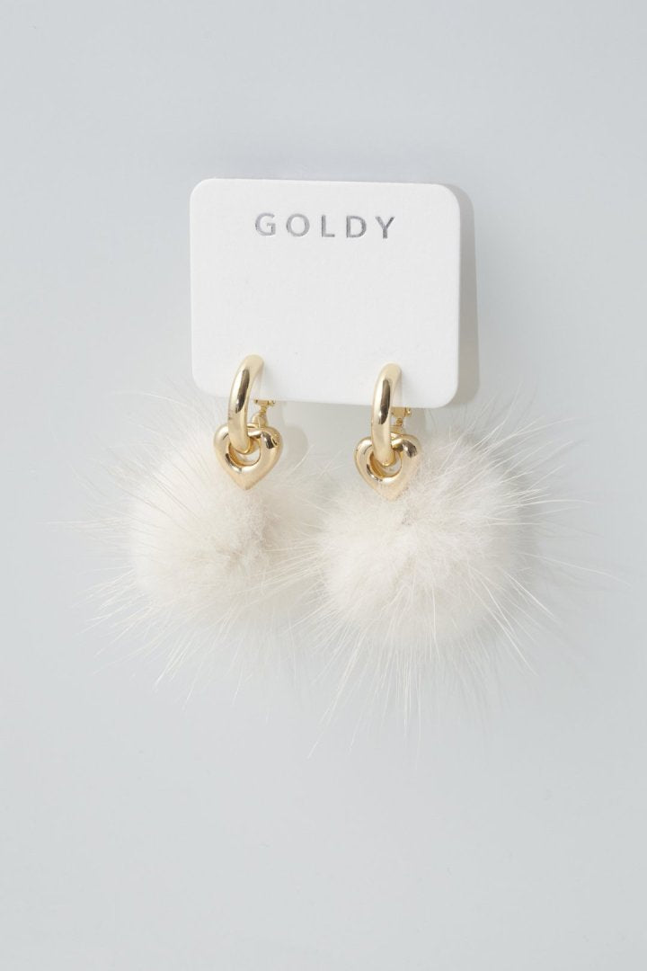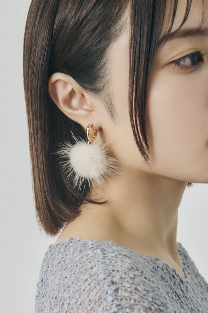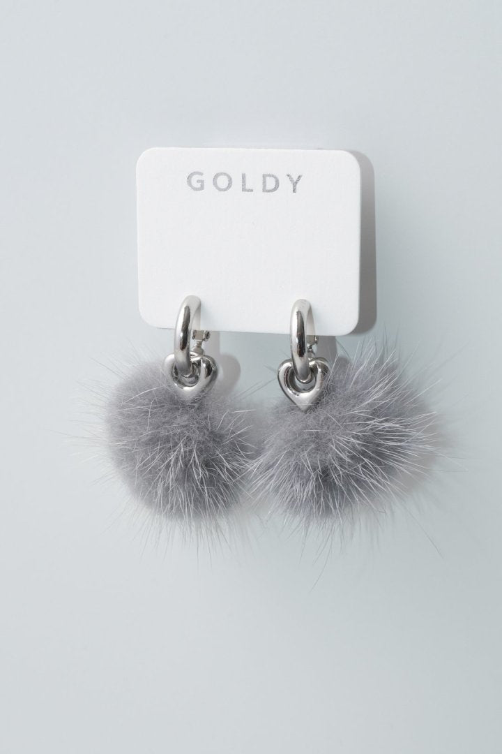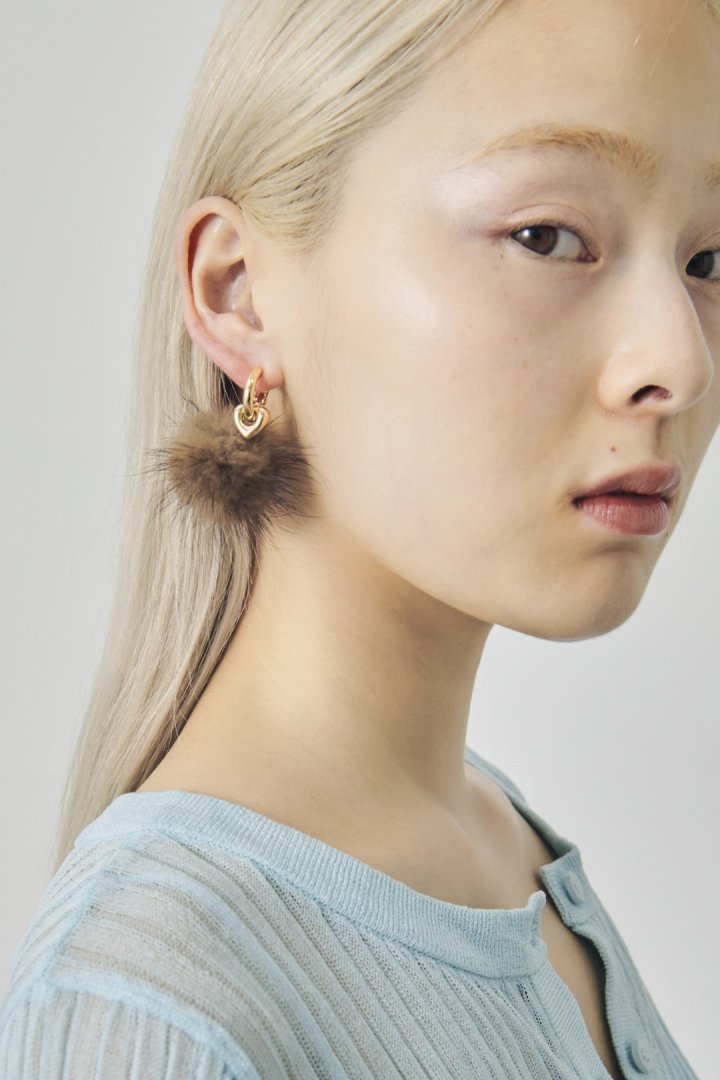 高級感漂うミンクファーと、メタル素材のハートモチーフをフープに通して組み合わせたデザイン。