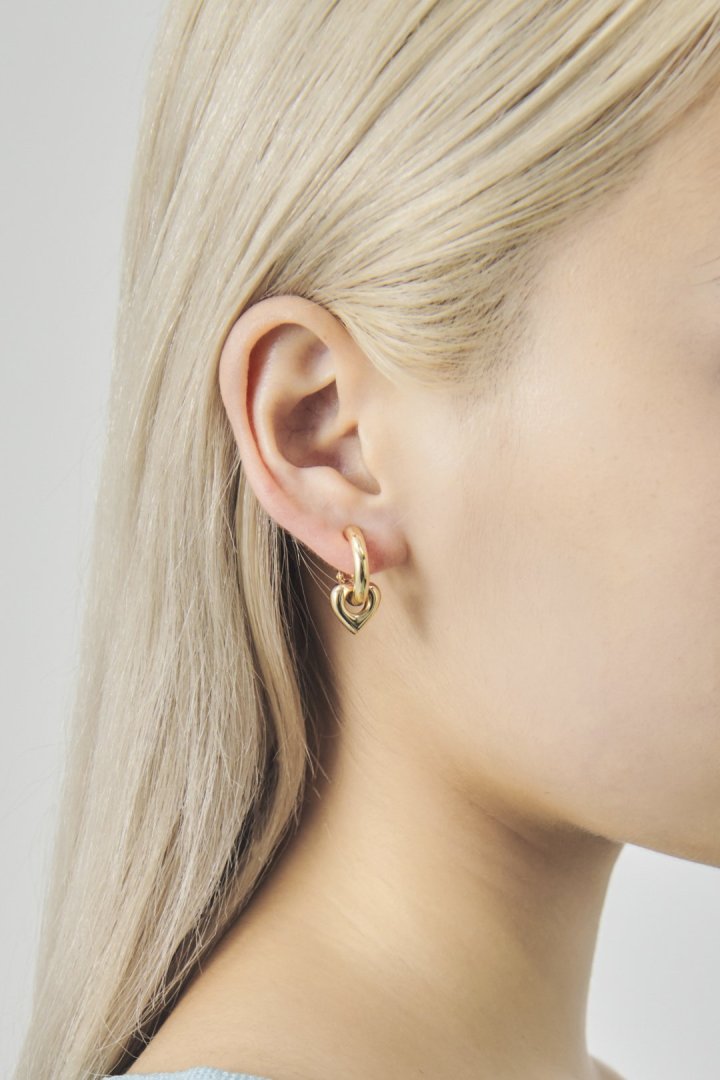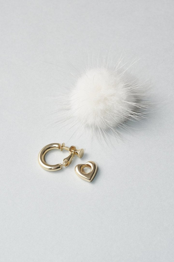 それぞれ取り外してシンプルなフープイヤリングにしたり、ファー、ハートのみにデザインを変えることもできる2WAY仕様です。