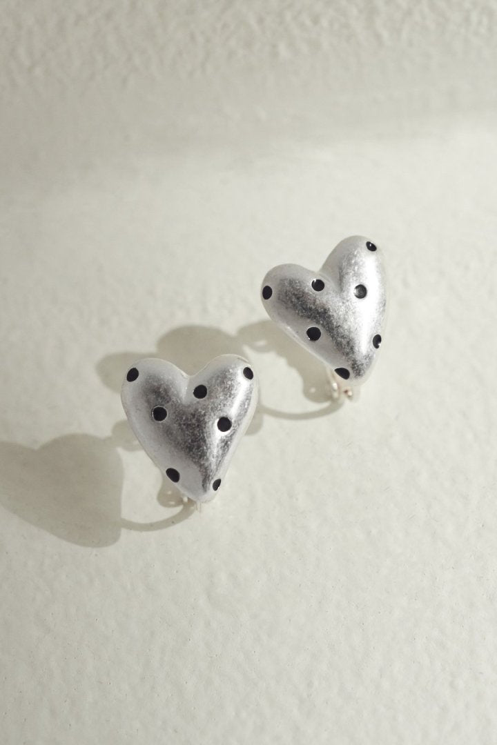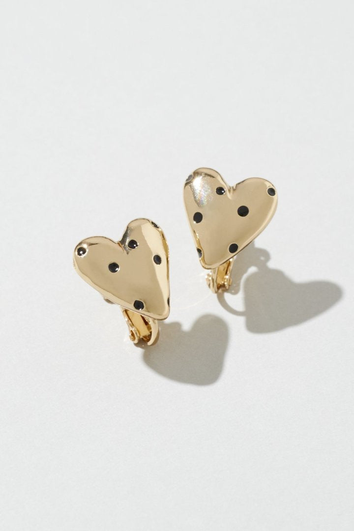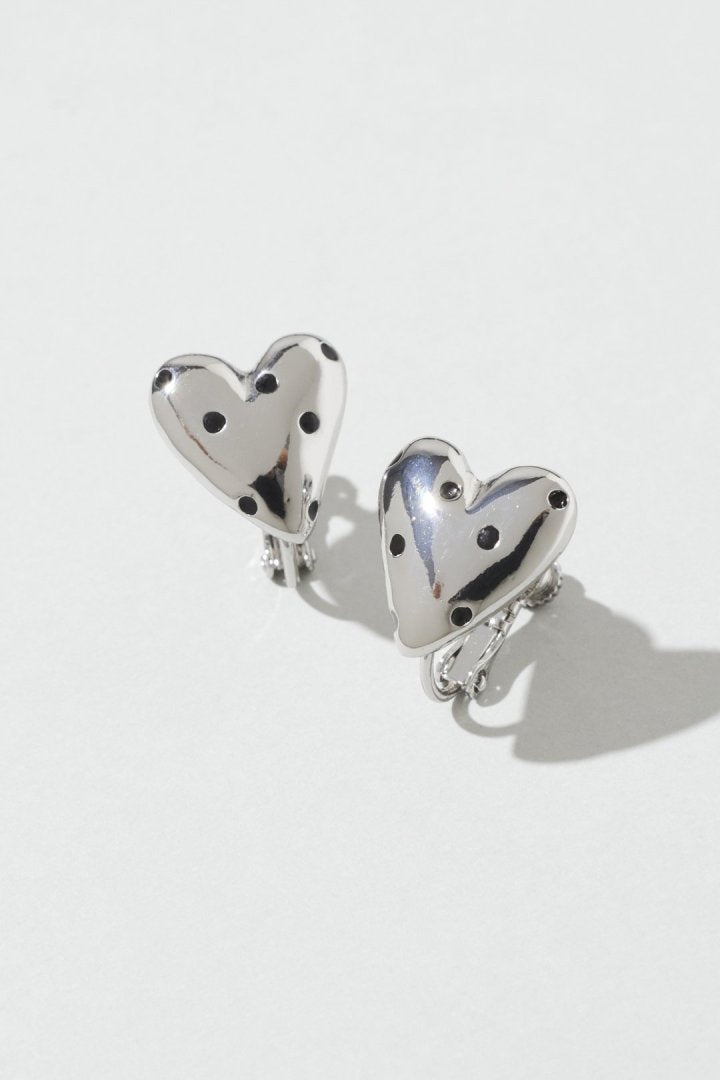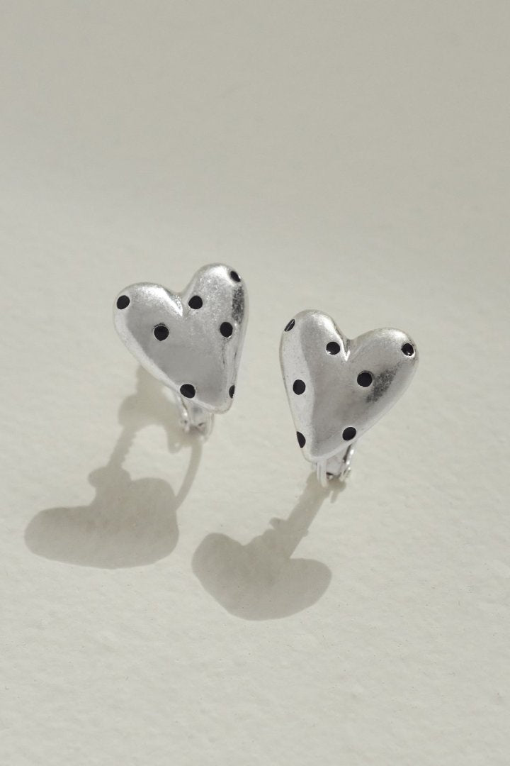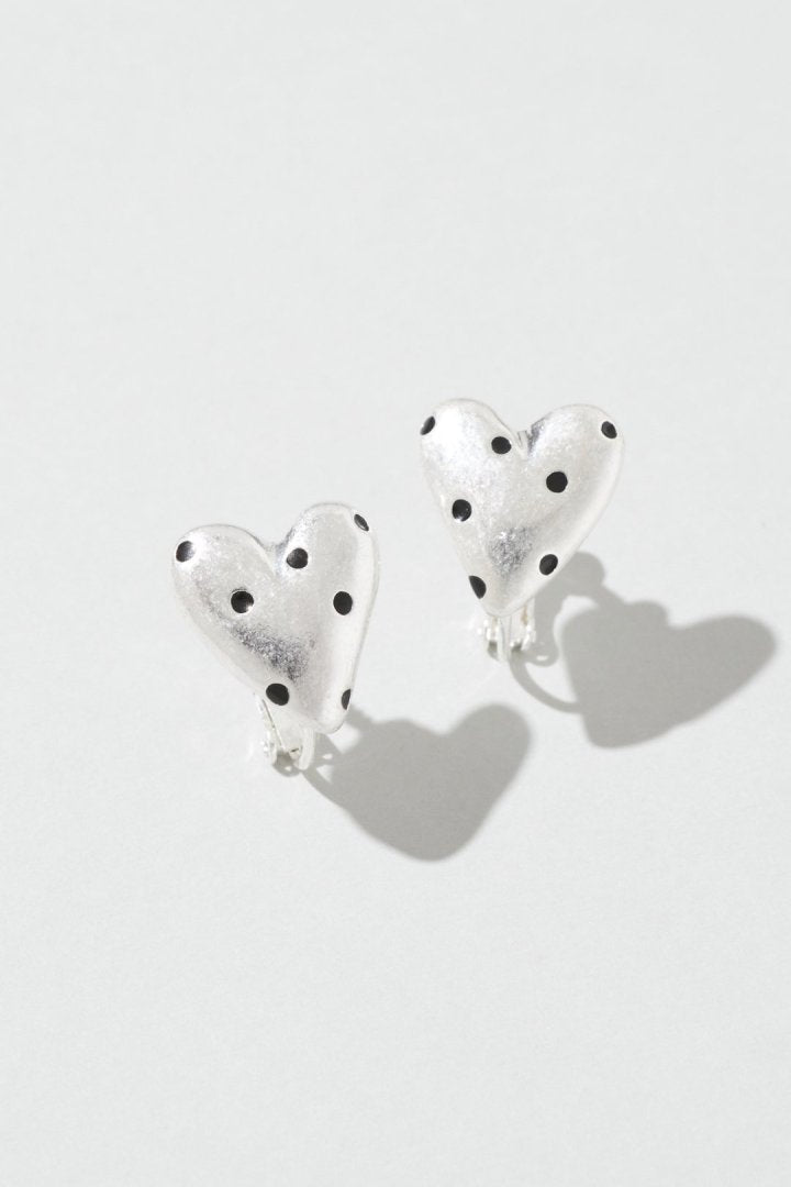 人気のハートモチーフに、ドット柄が施されたイヤリング。