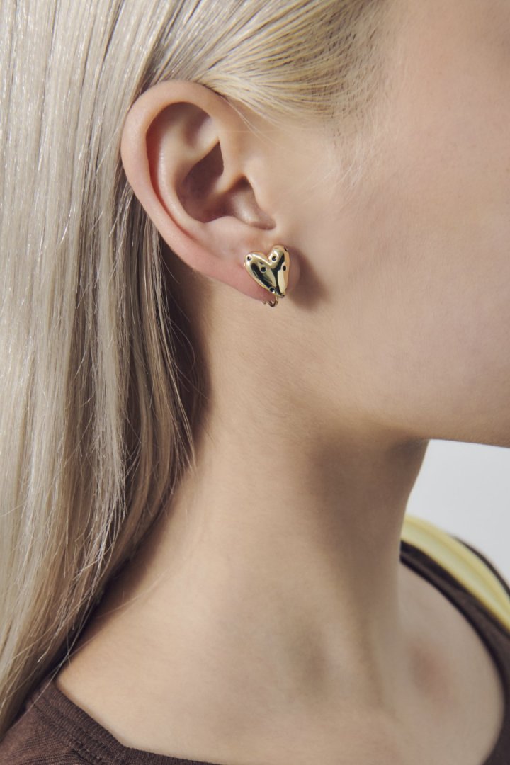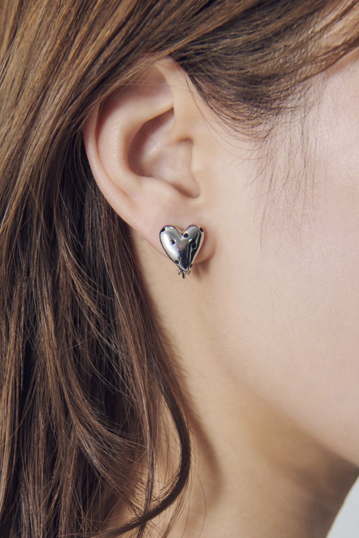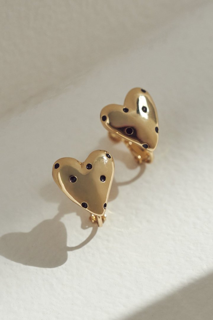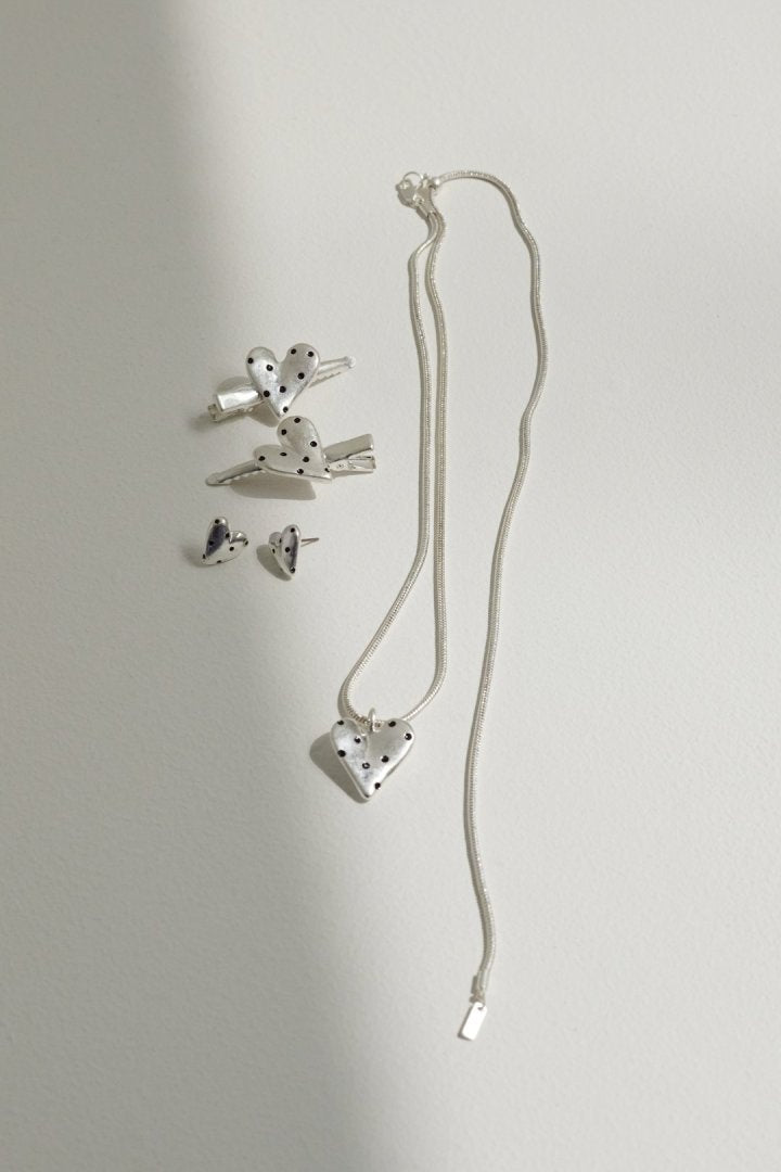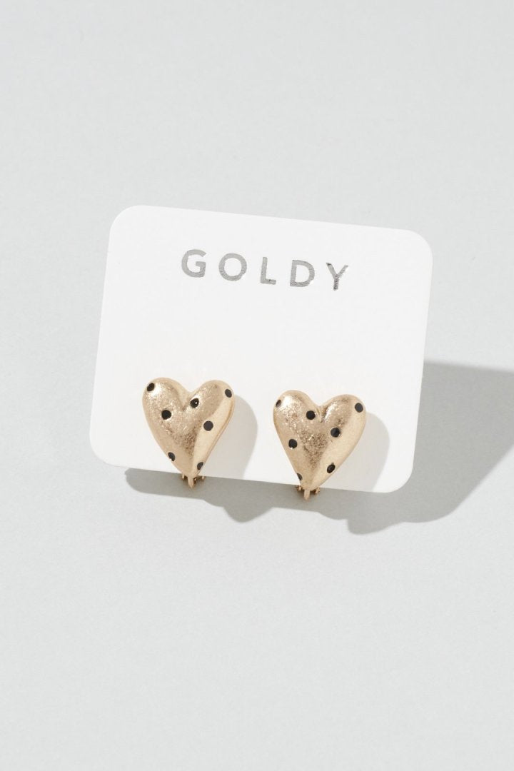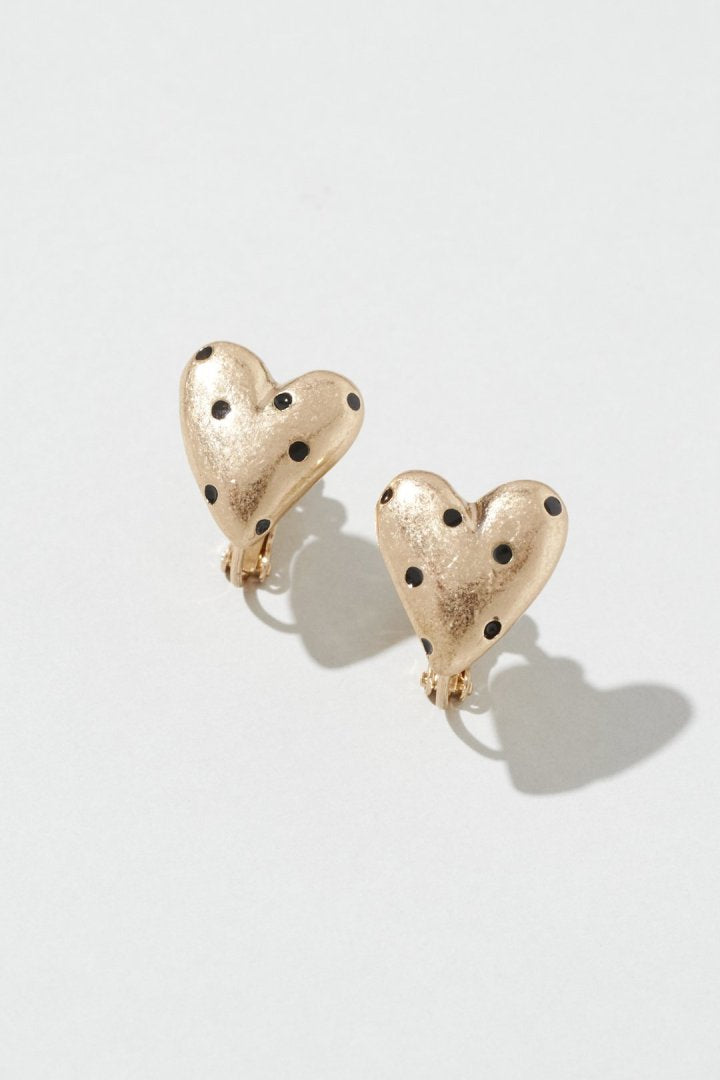 人気のハートモチーフに、ドット柄が施されたイヤリング。