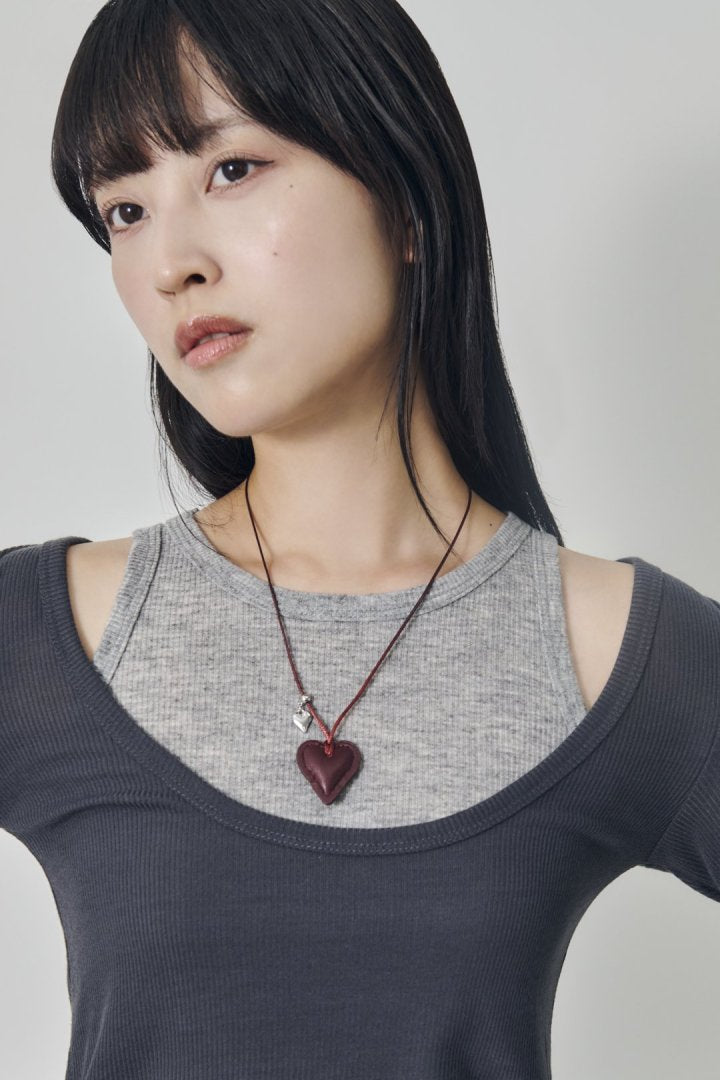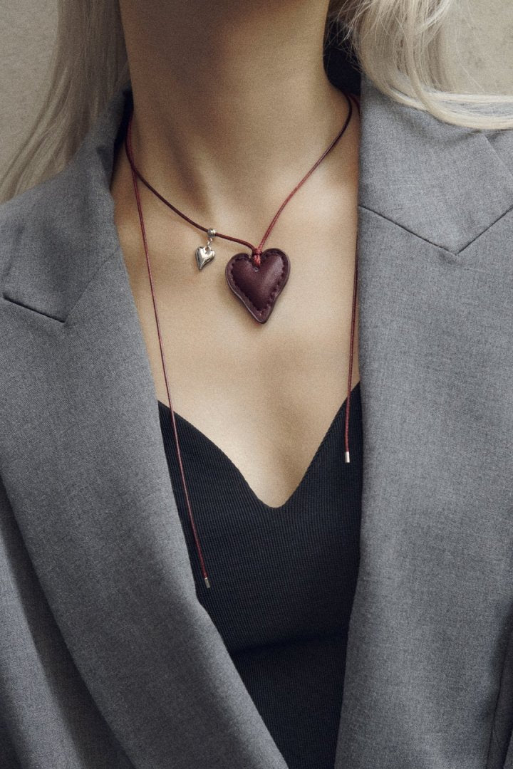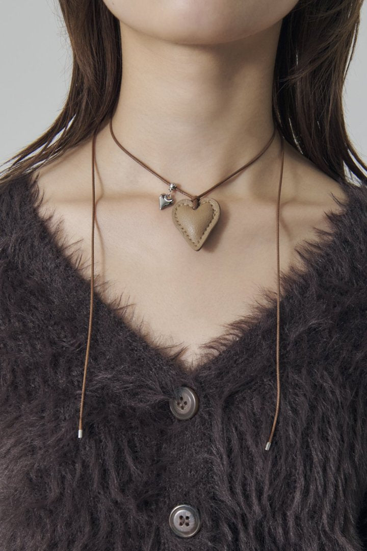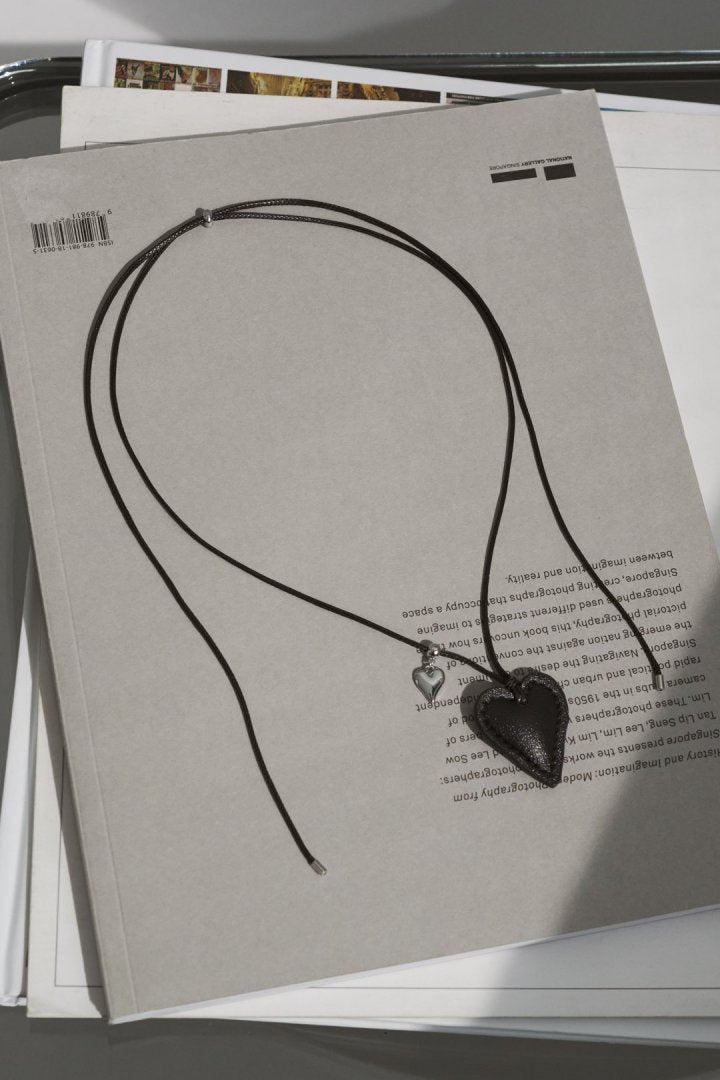 レザー調のハートモチーフが大人可愛いコードネックレス。