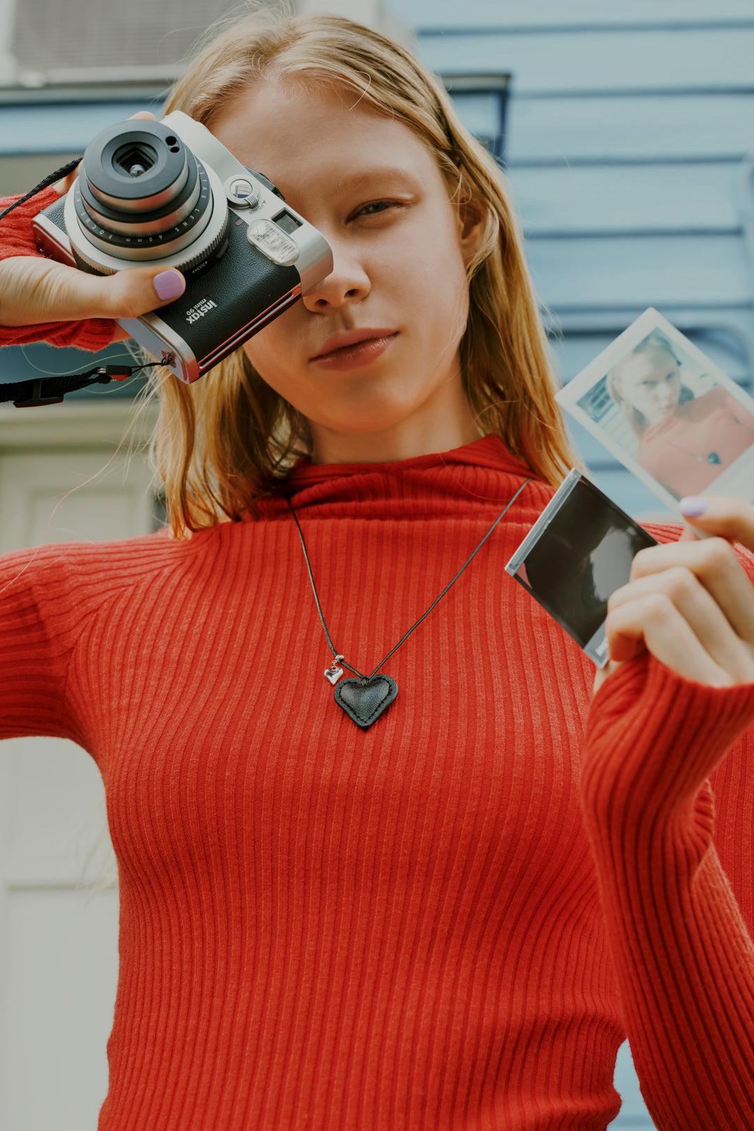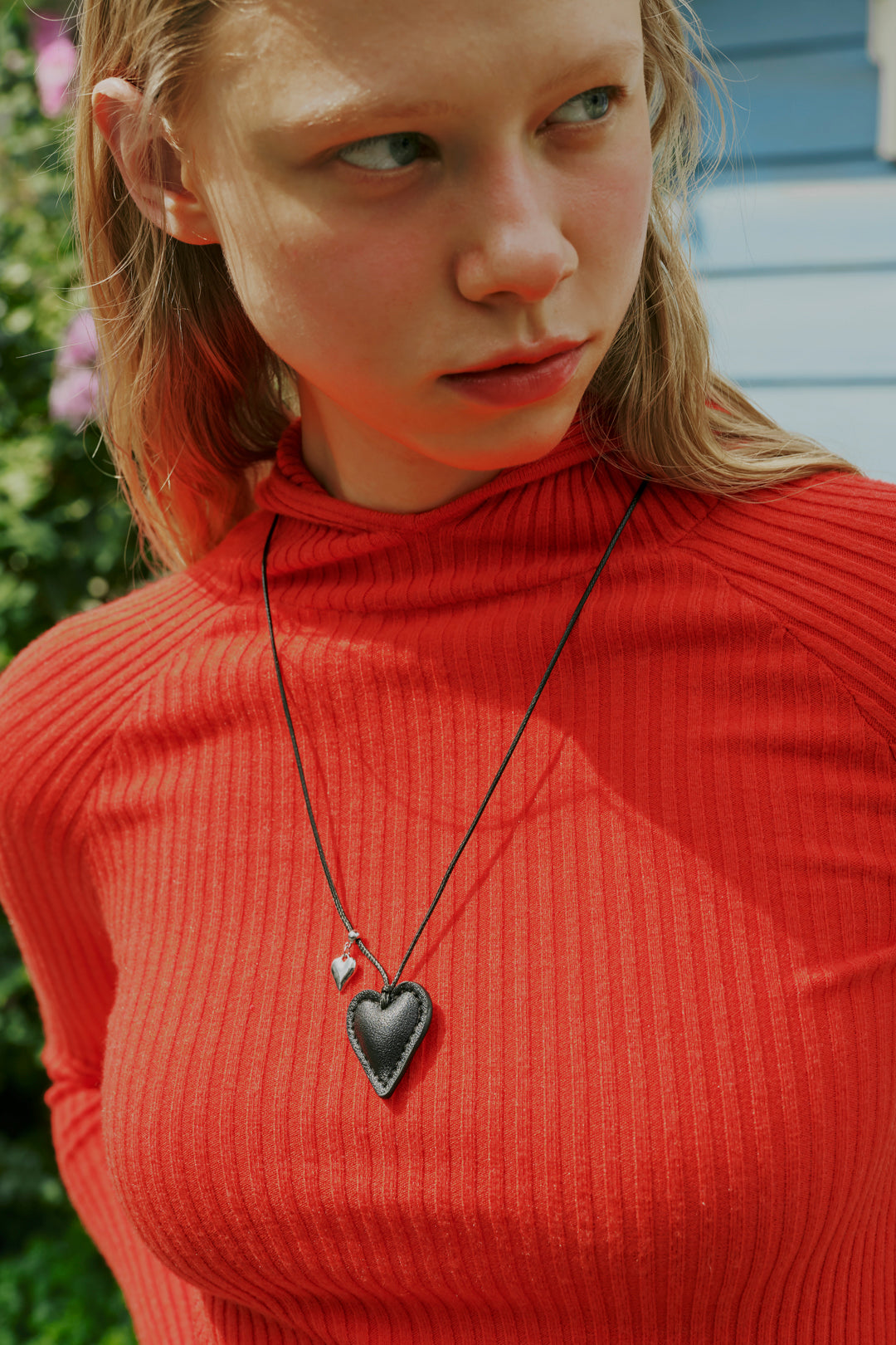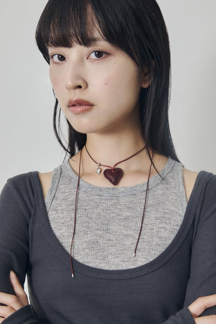 レザー調のハートモチーフが大人可愛いコードネックレス。